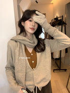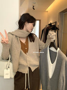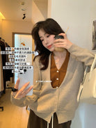 【C7650】小衆設計感撞色假兩件V領顯瘦針織開衫(含6%羊毛)