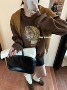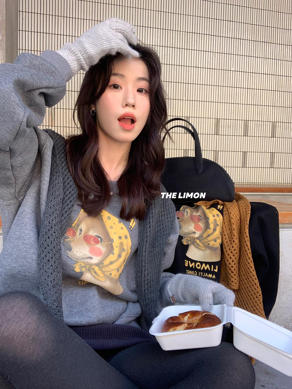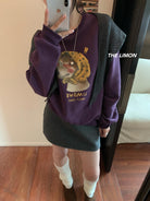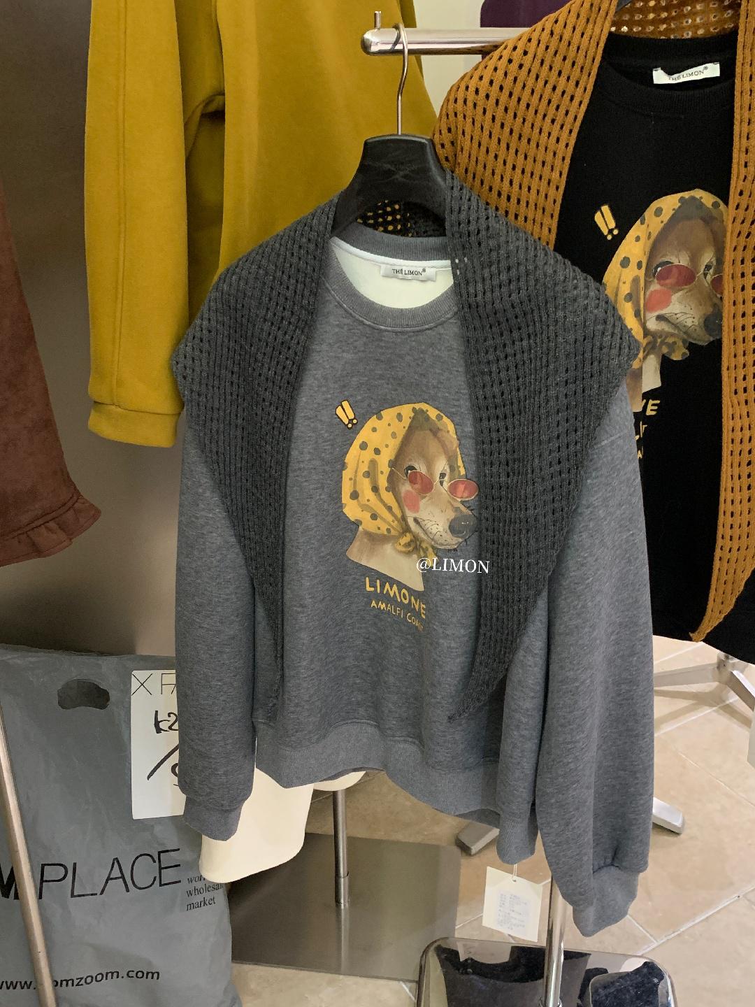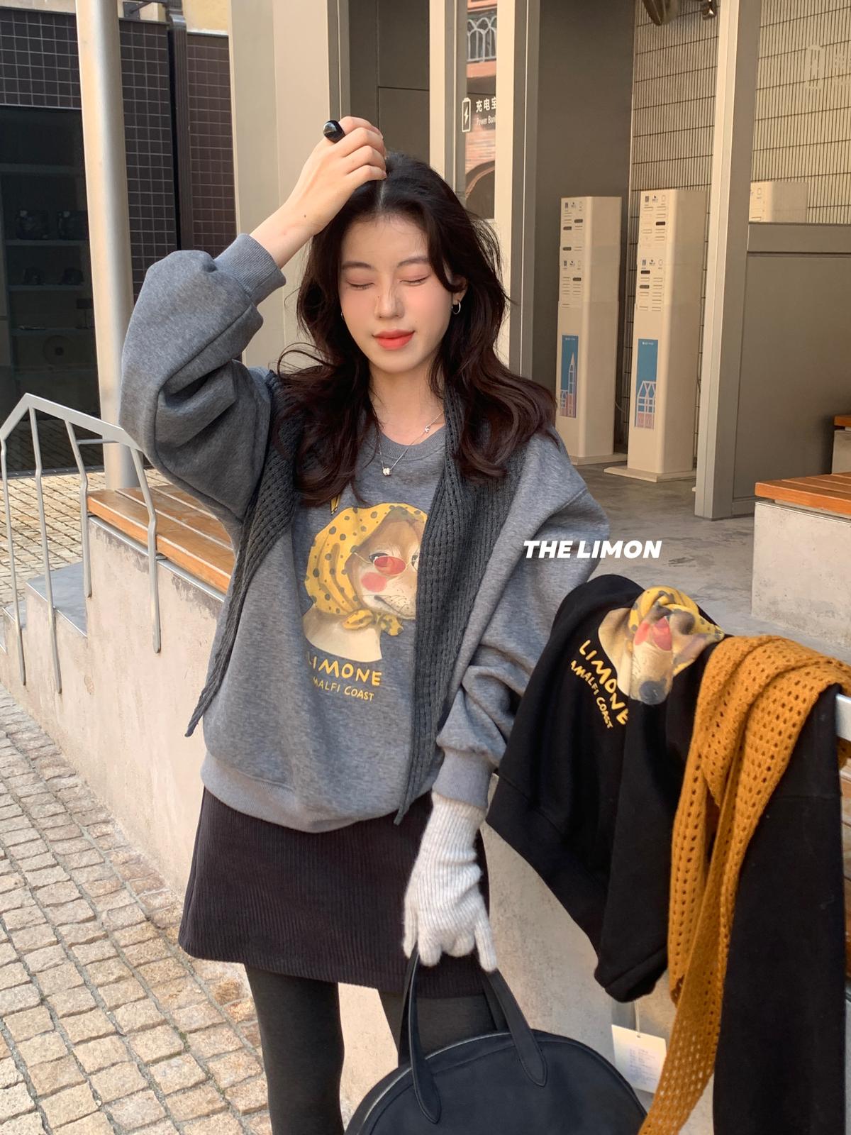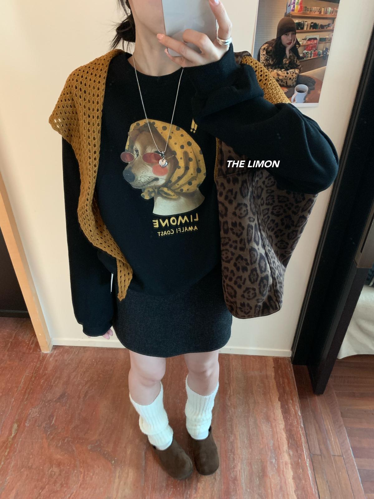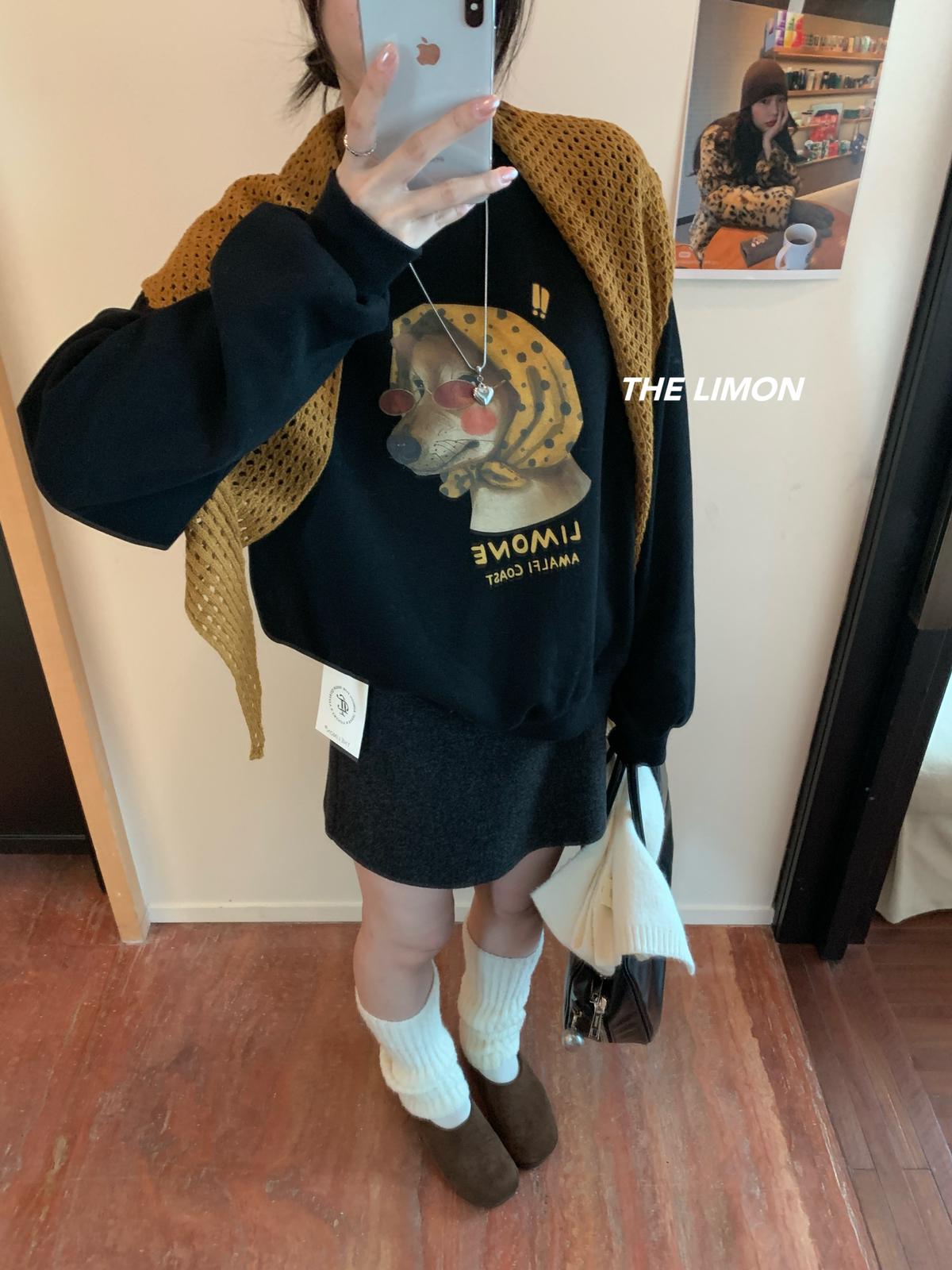 【C7652】美式復古減齡臘波點狗狗印花加絨衛衣(配披肩)