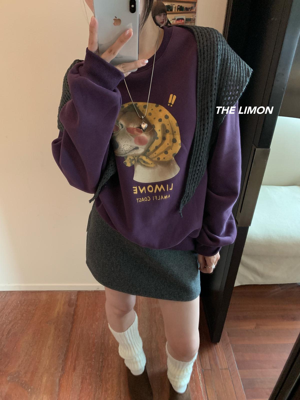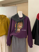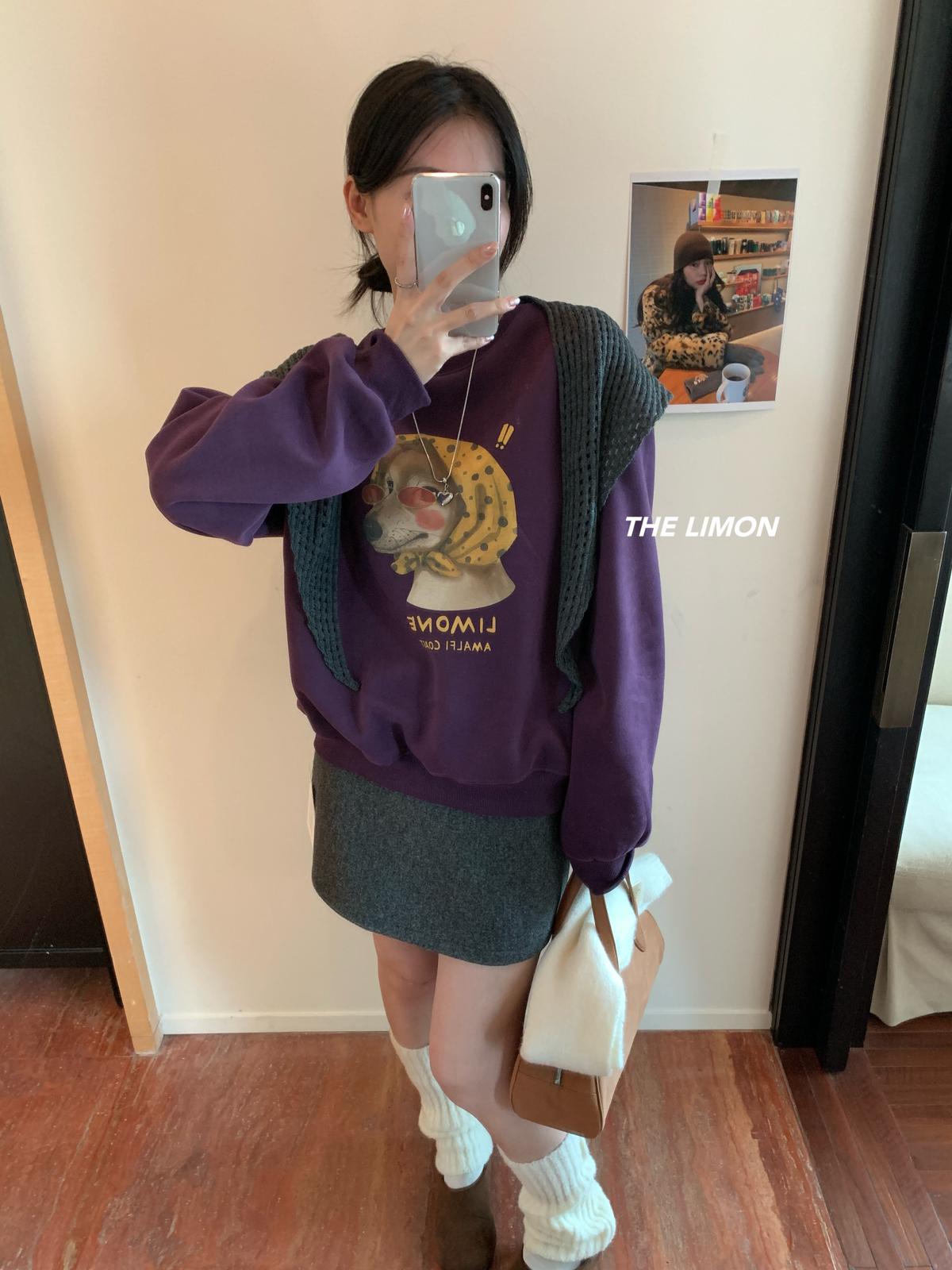 3. 【C7652】美式復古減齡臘波點狗狗印花加絨衛衣(配披肩)