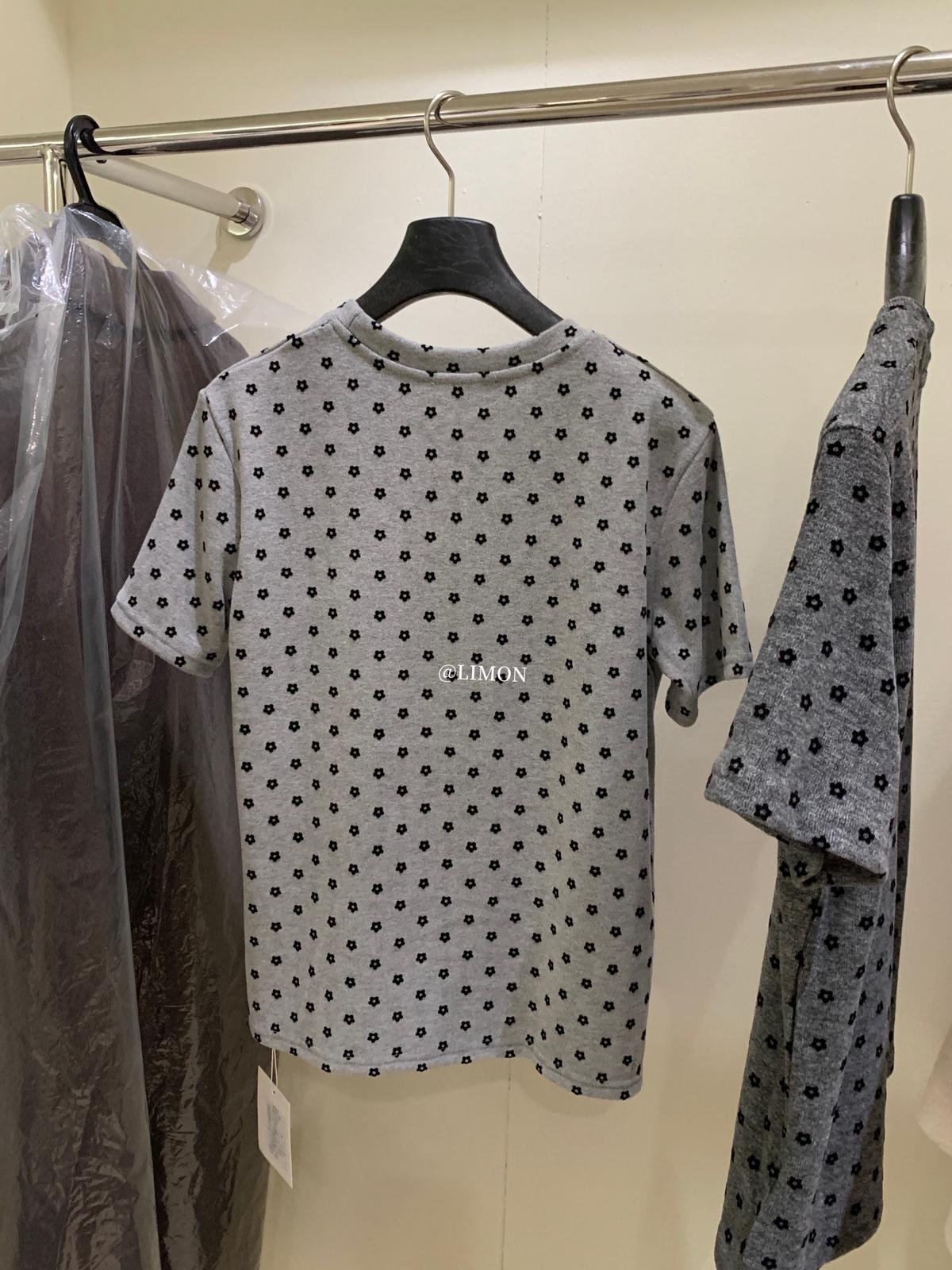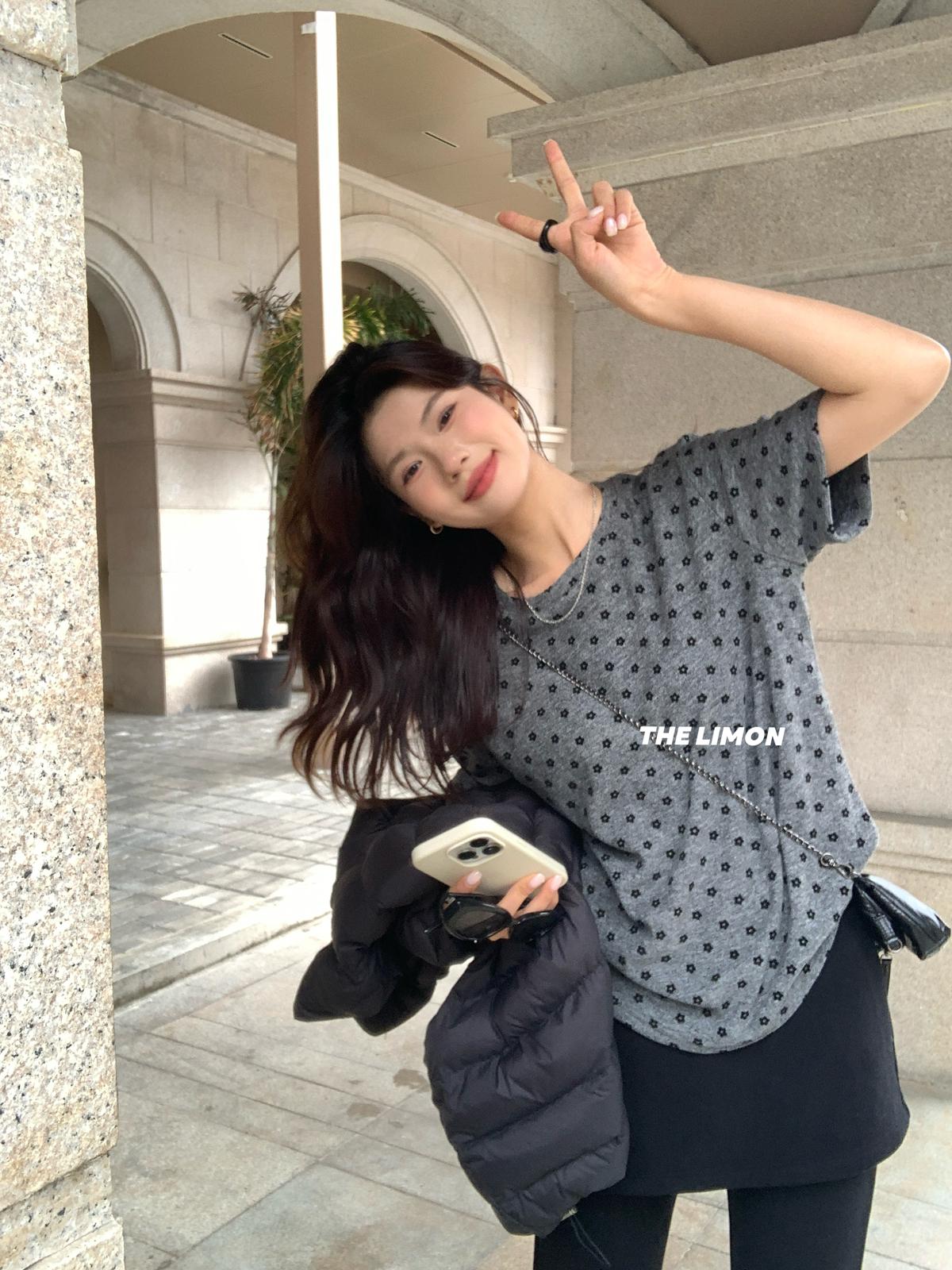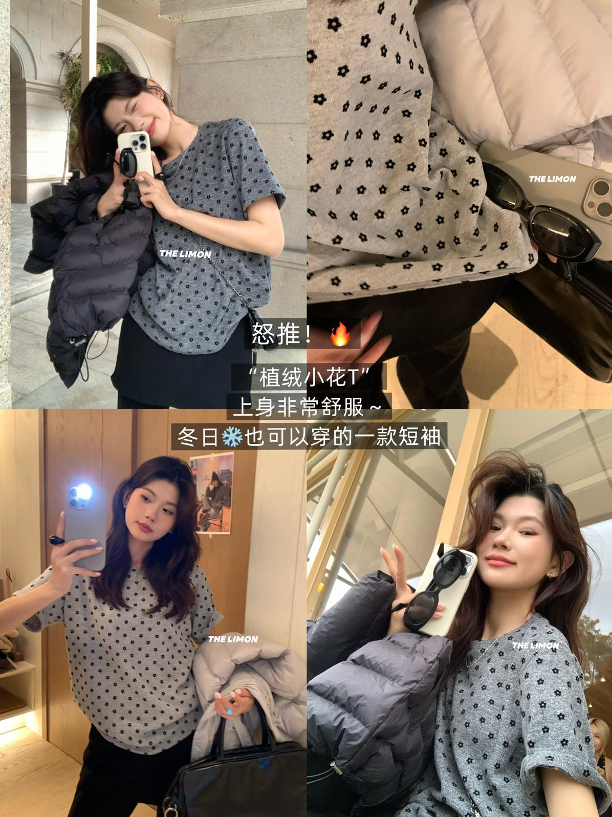 3. 【C7679】高質感正肩植絨小花寬鬆磨毛短袖T恤