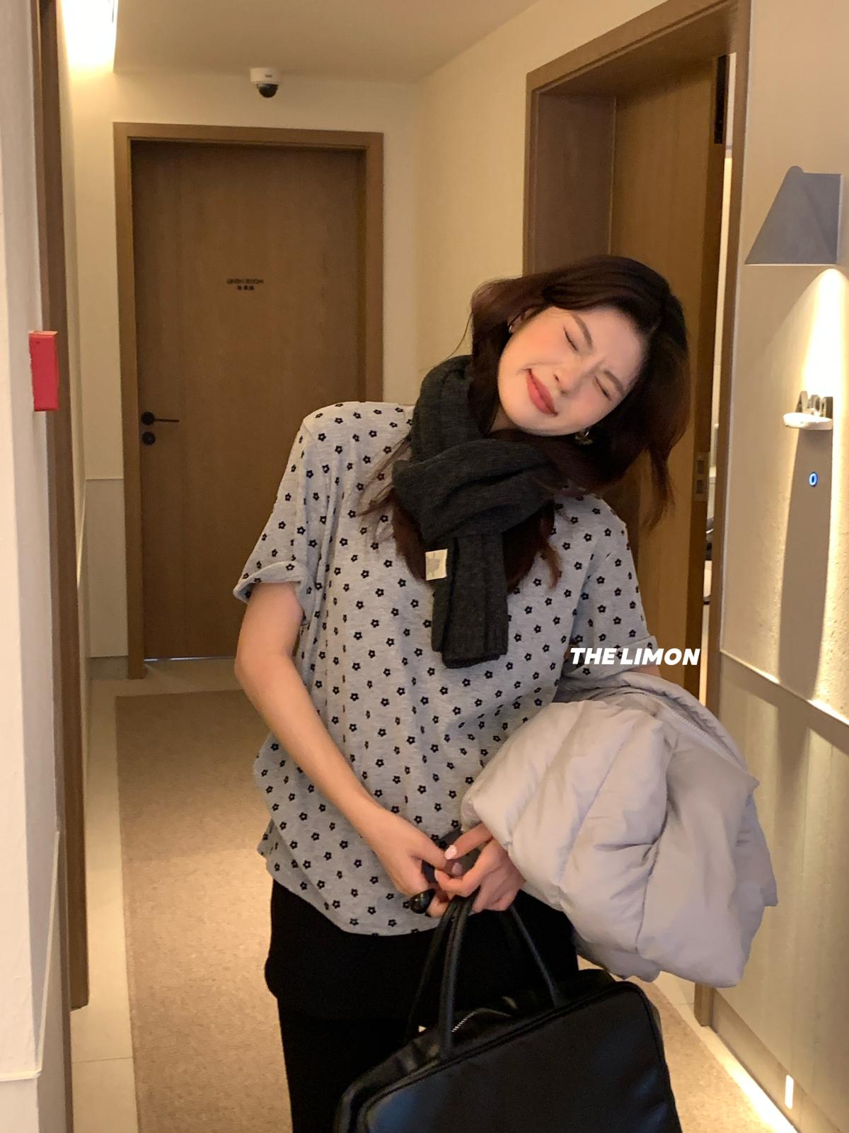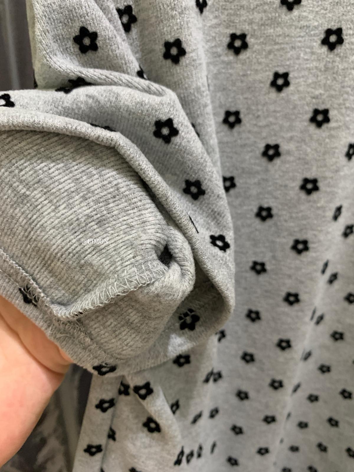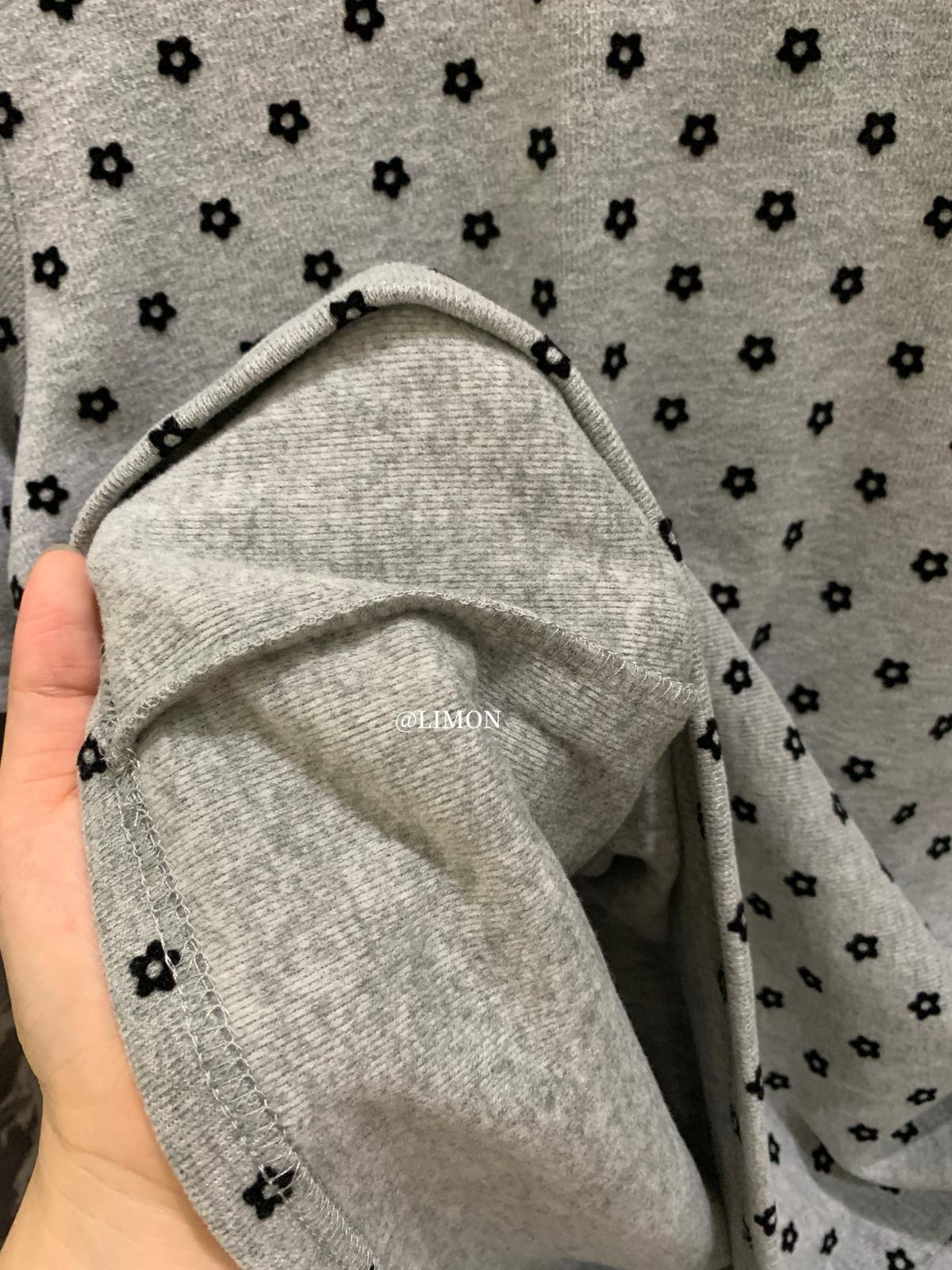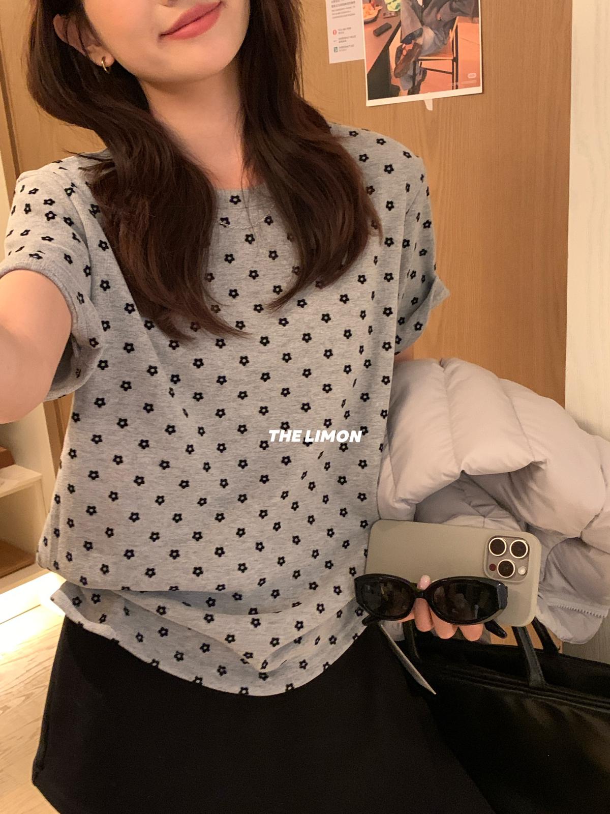 3. 【C7679】高質感正肩植絨小花寬鬆磨毛短袖T恤