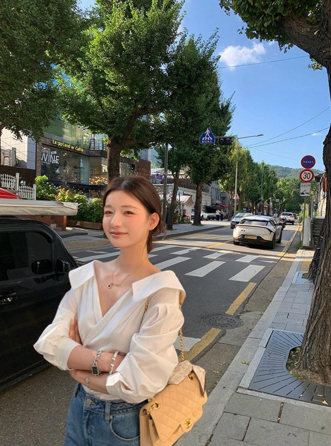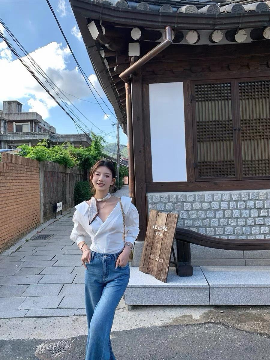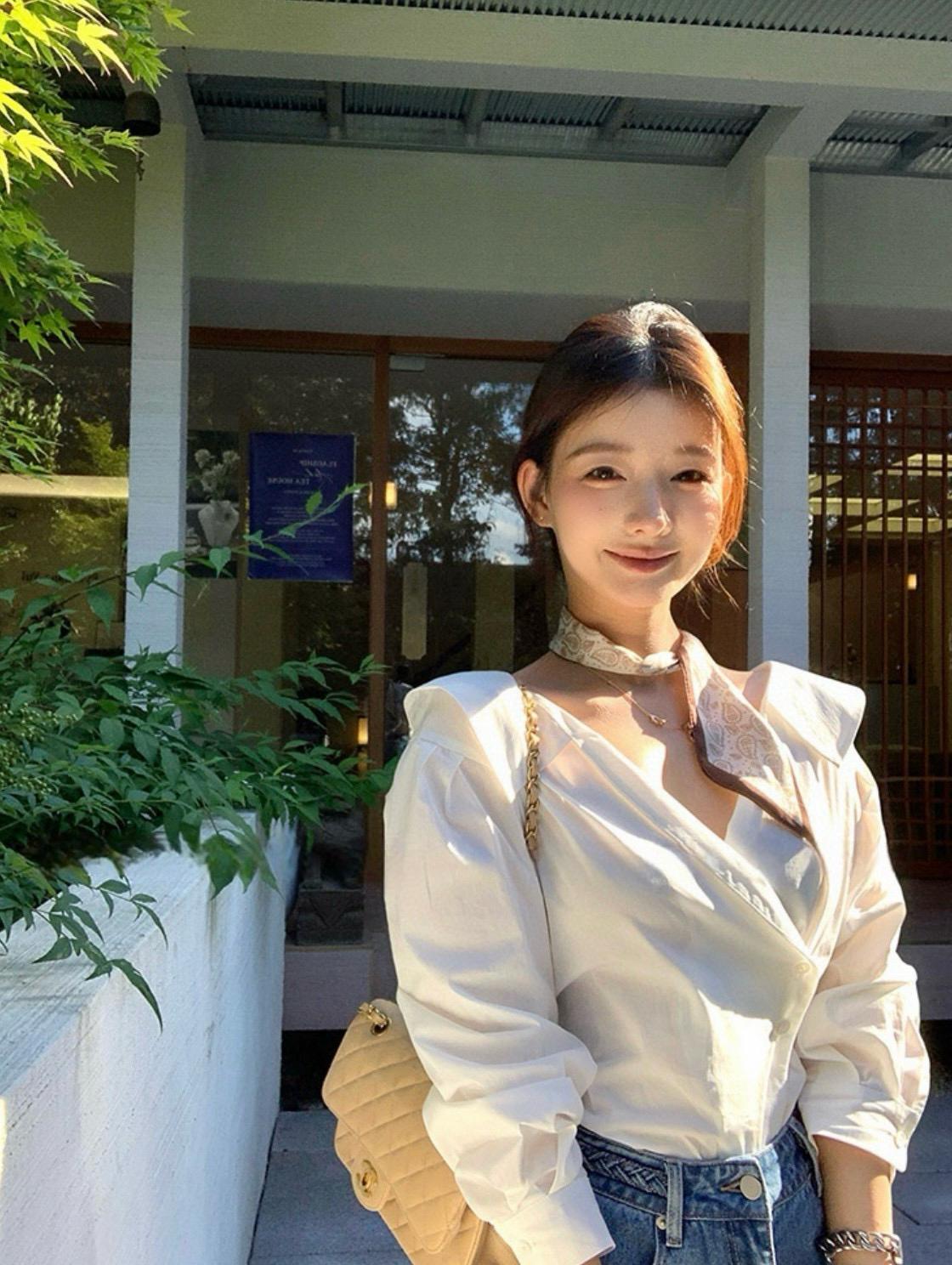 3. 【C7700】韓女襯衫時髦韓系長袖襯衫設計感時尚收腰上衣襯衫