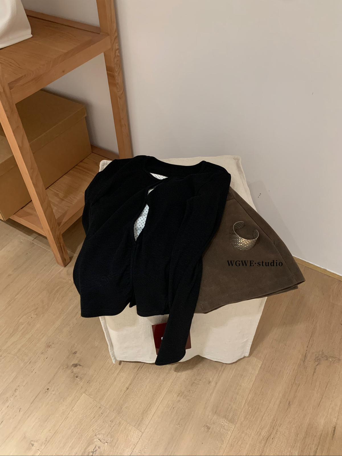 【C7709】假兩件鏤空波點修身針織上衣長袖T恤