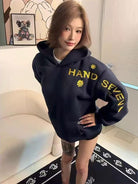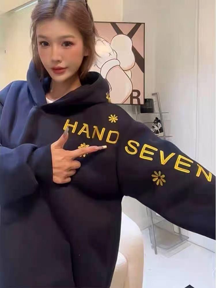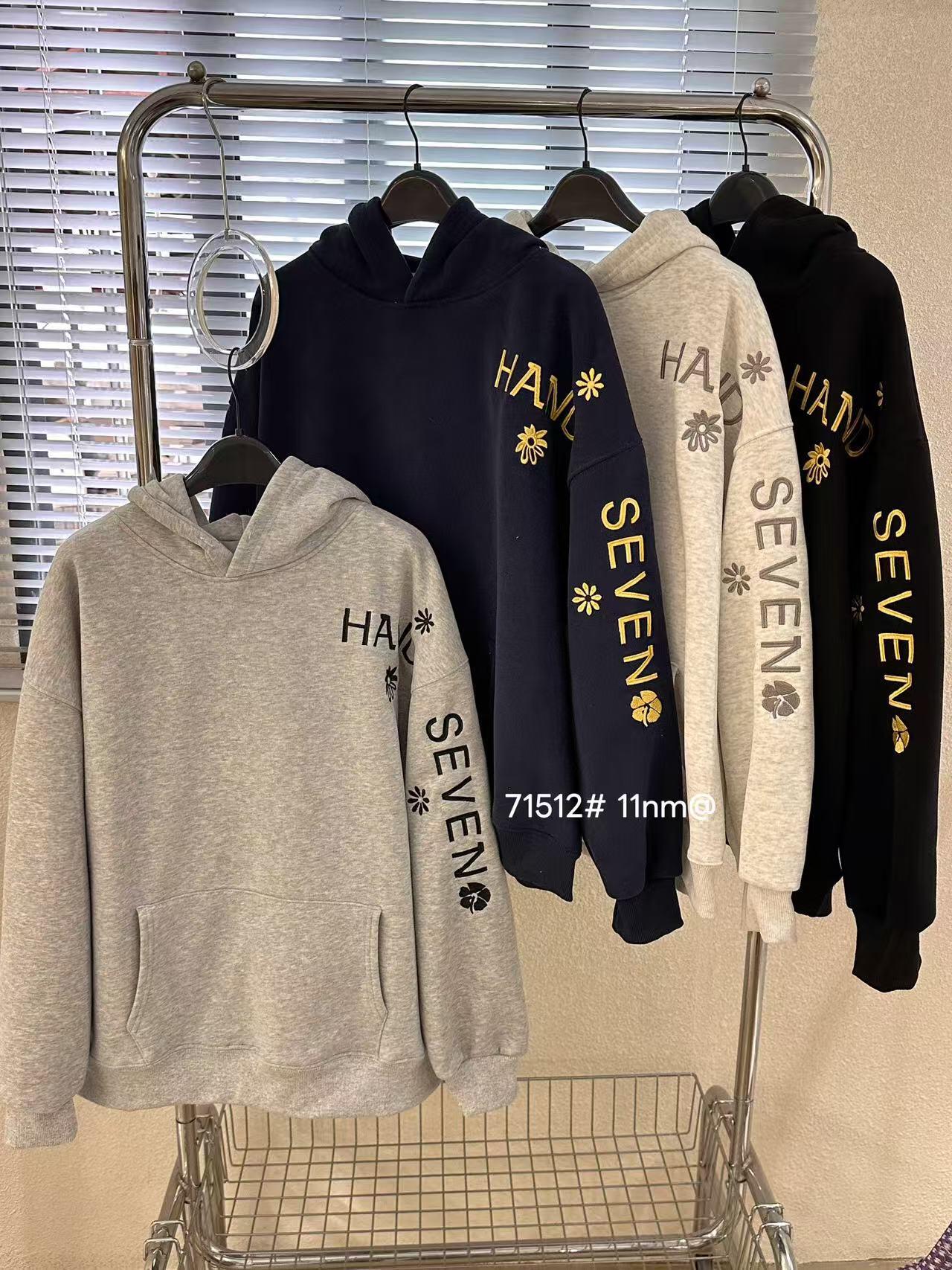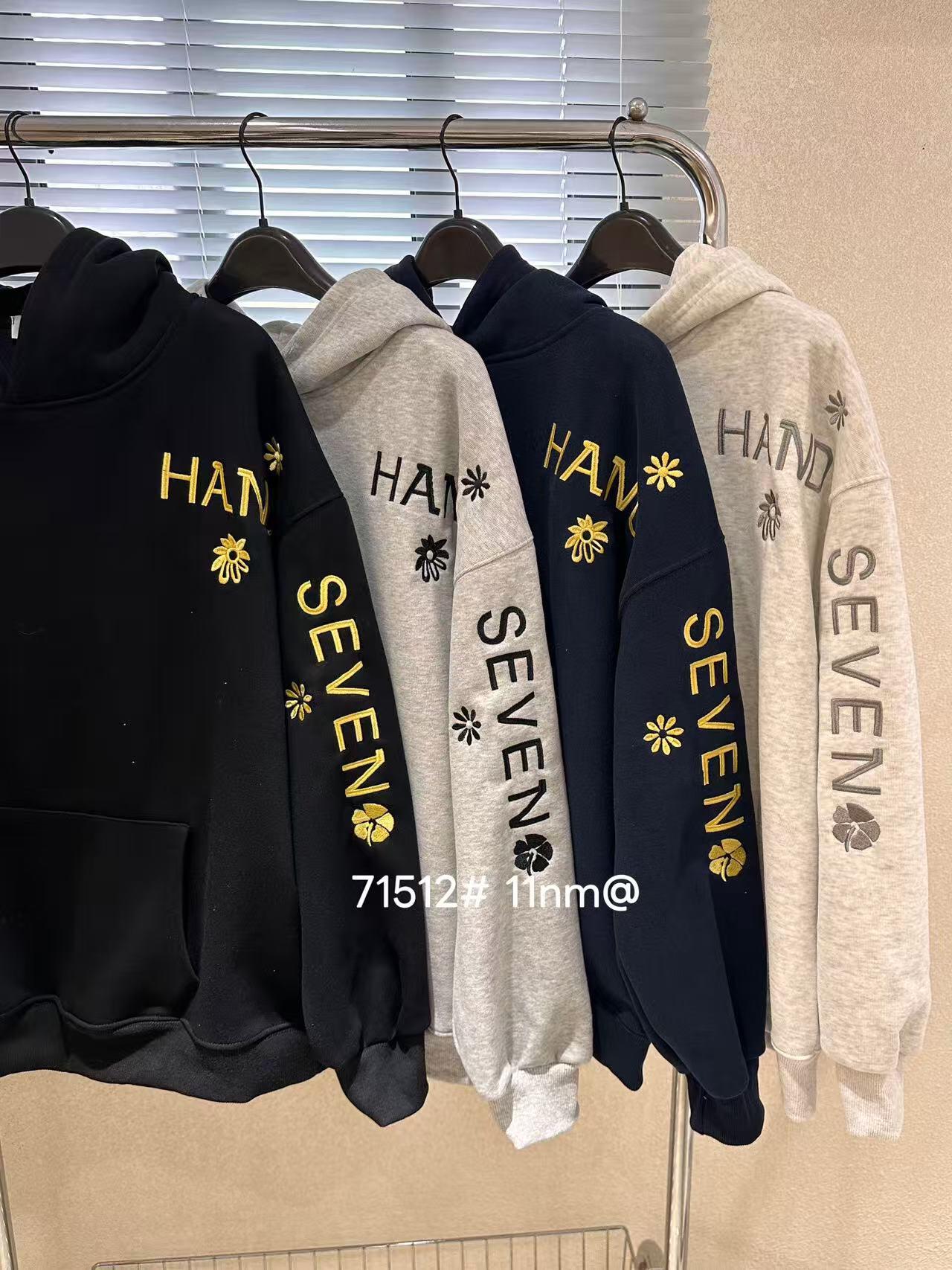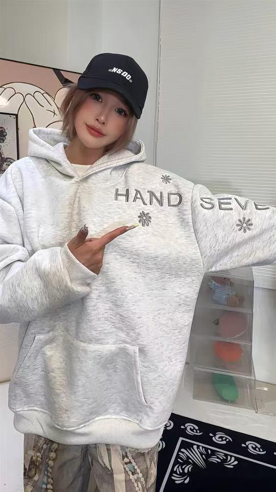 3. 【C7727】美式復古花卉刺繡連帽寬鬆衛衣