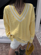【C7729】復古風V領寬鬆保暖毛衣