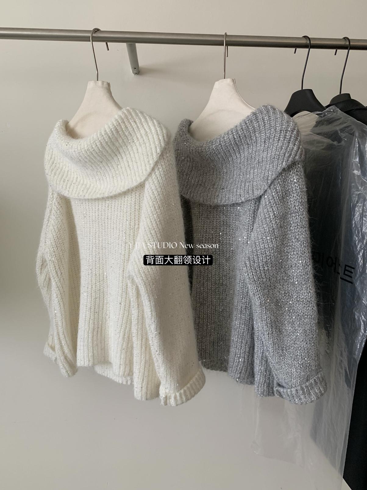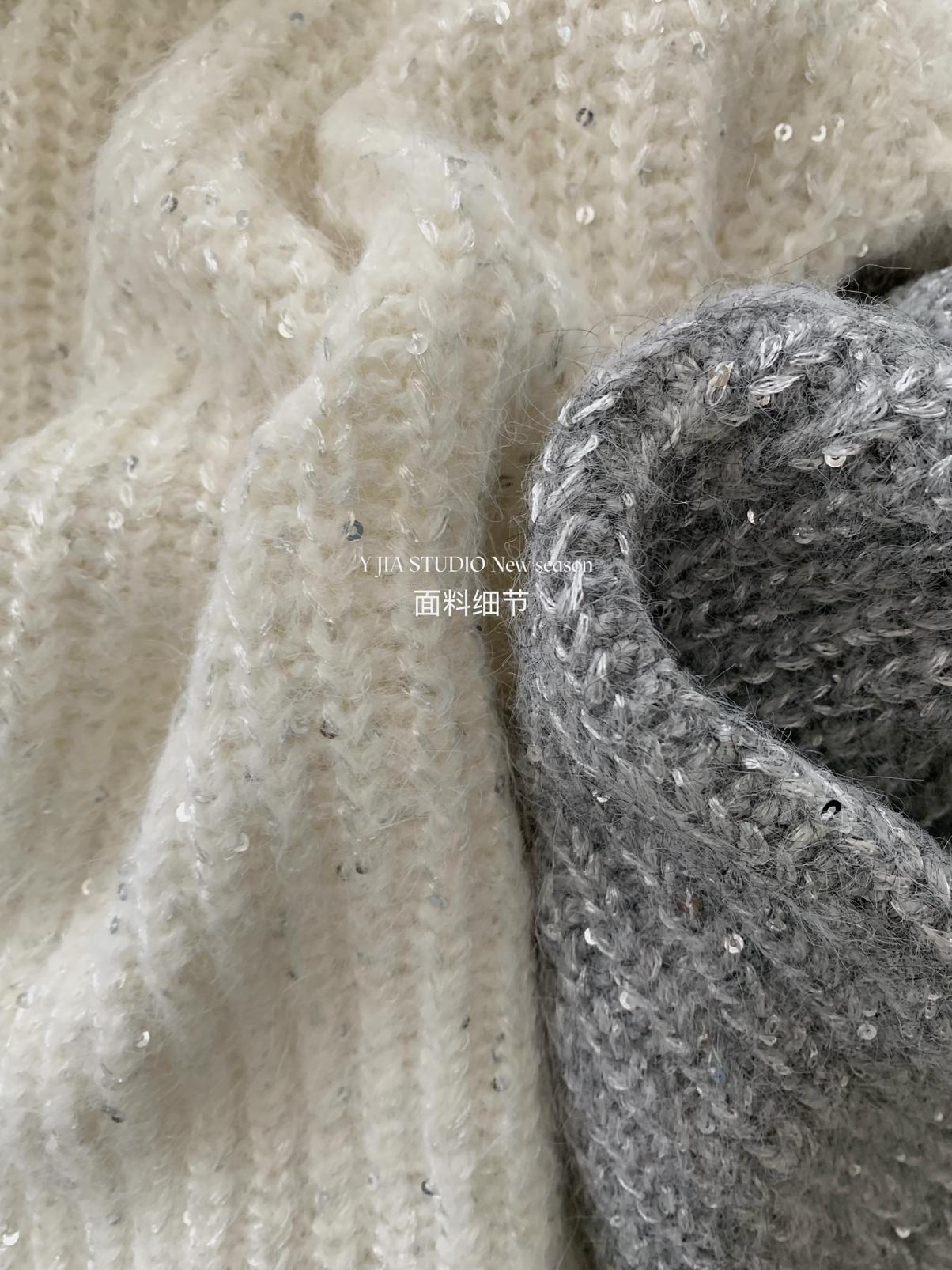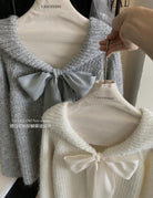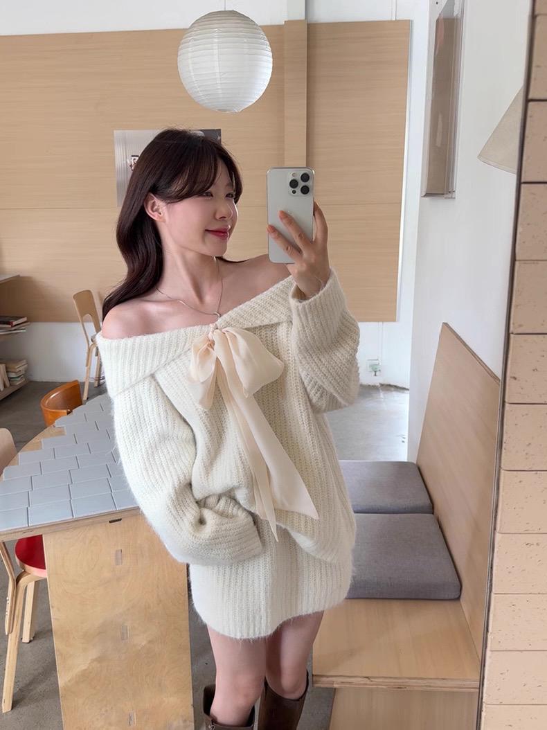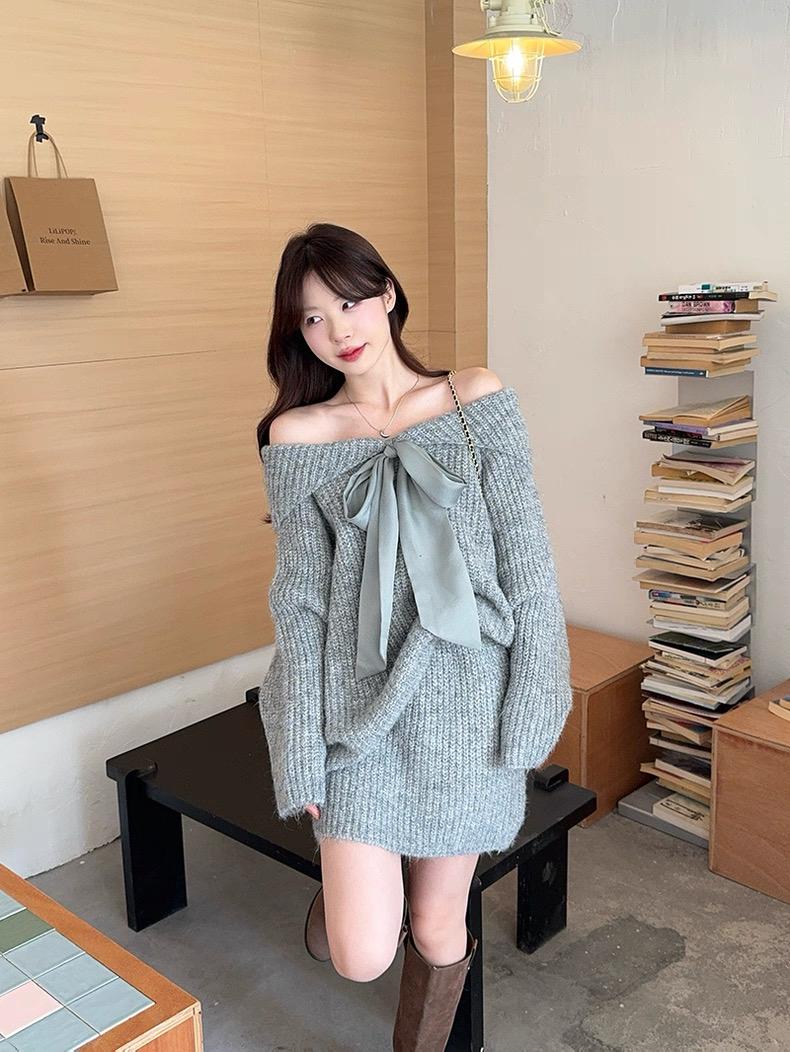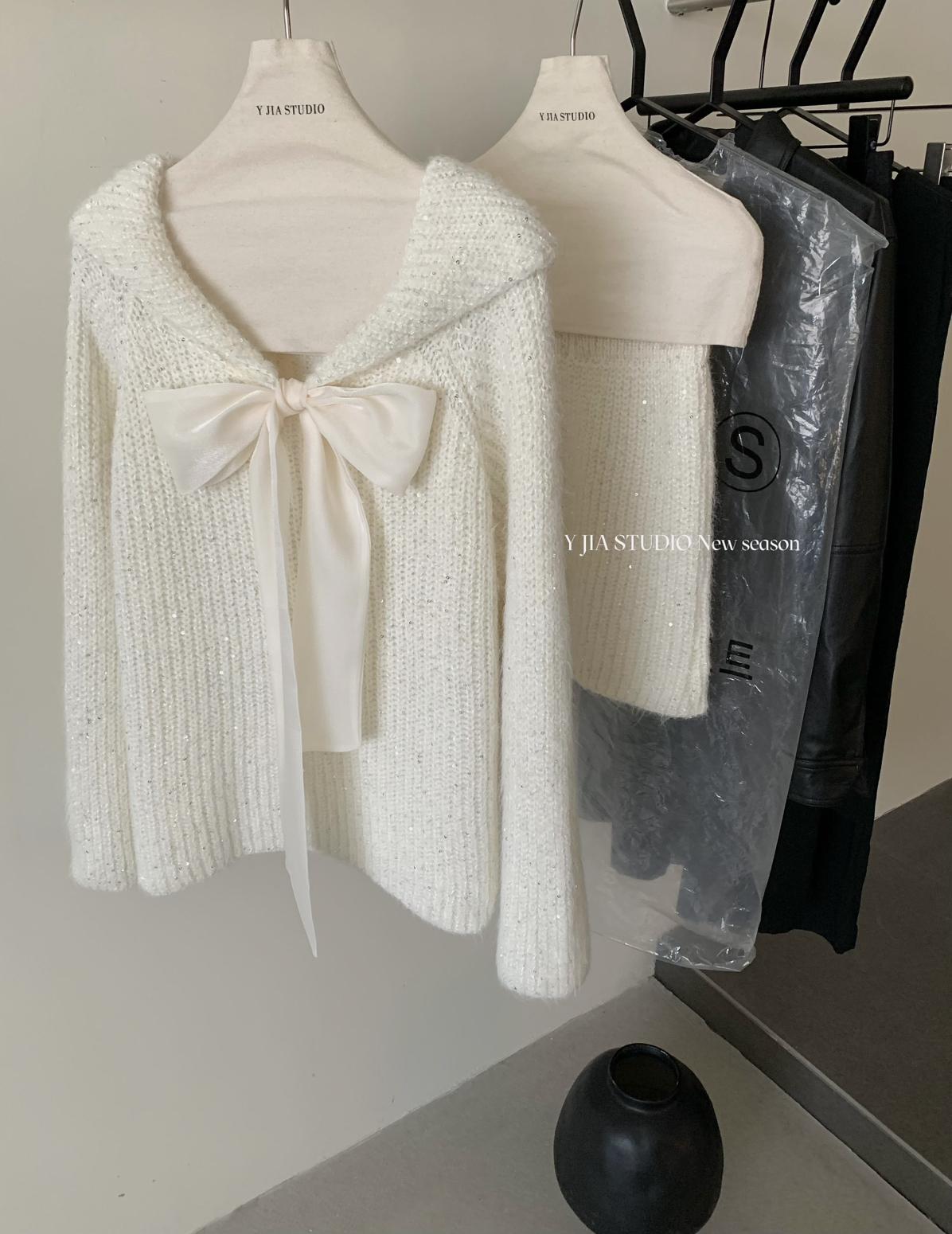 3. 【C7745】溫柔亮片繫帶蝴蝶結針織毛衣+高腰針織半身裙套裝(配絲巾)