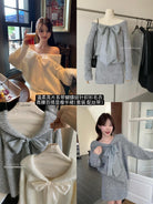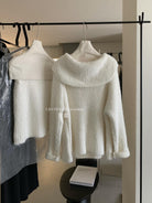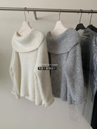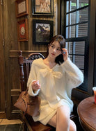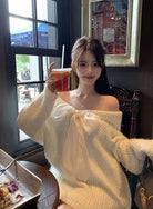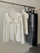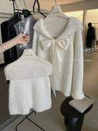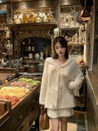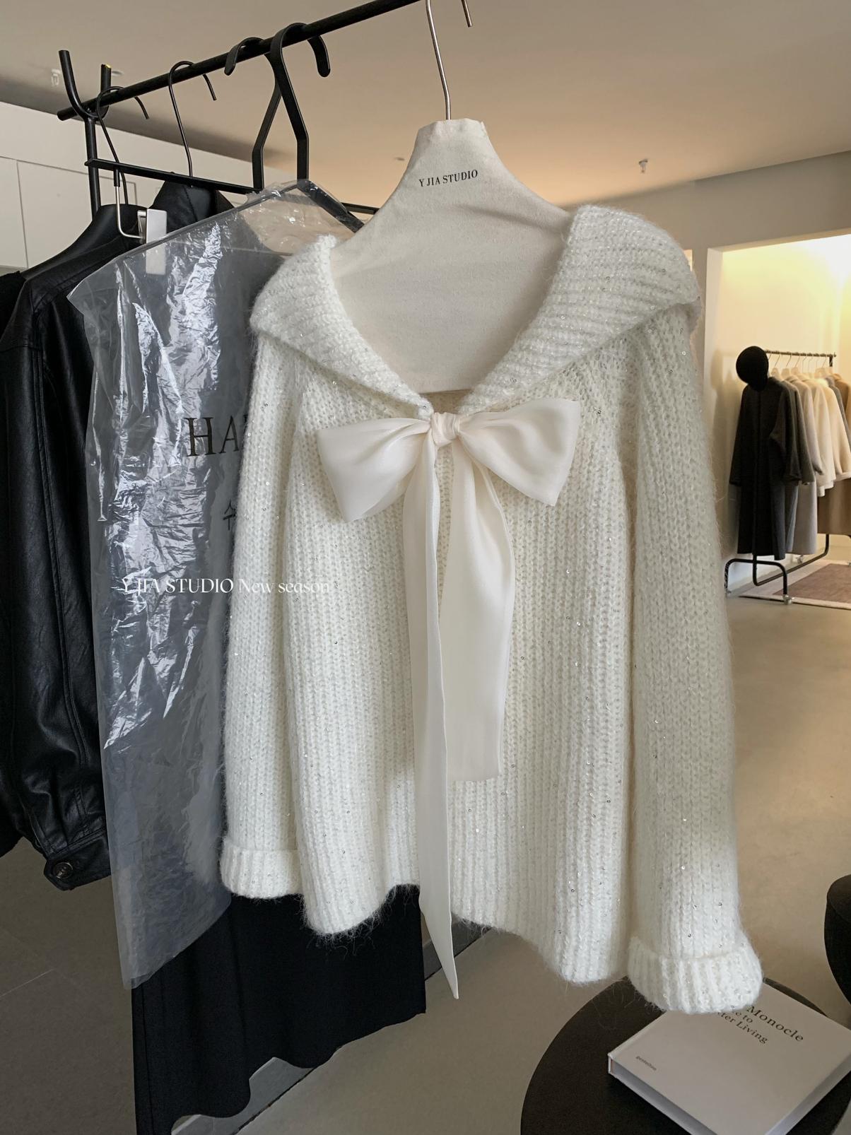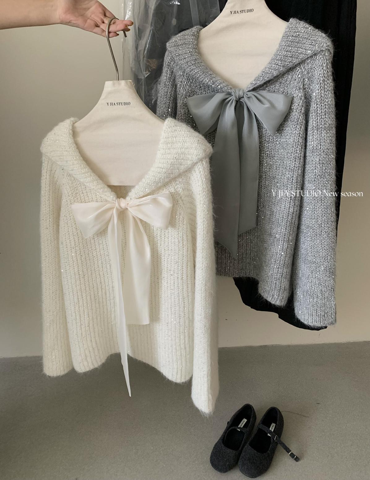 【C7745】溫柔亮片繫帶蝴蝶結針織毛衣+高腰針織半身裙套裝(配絲巾)