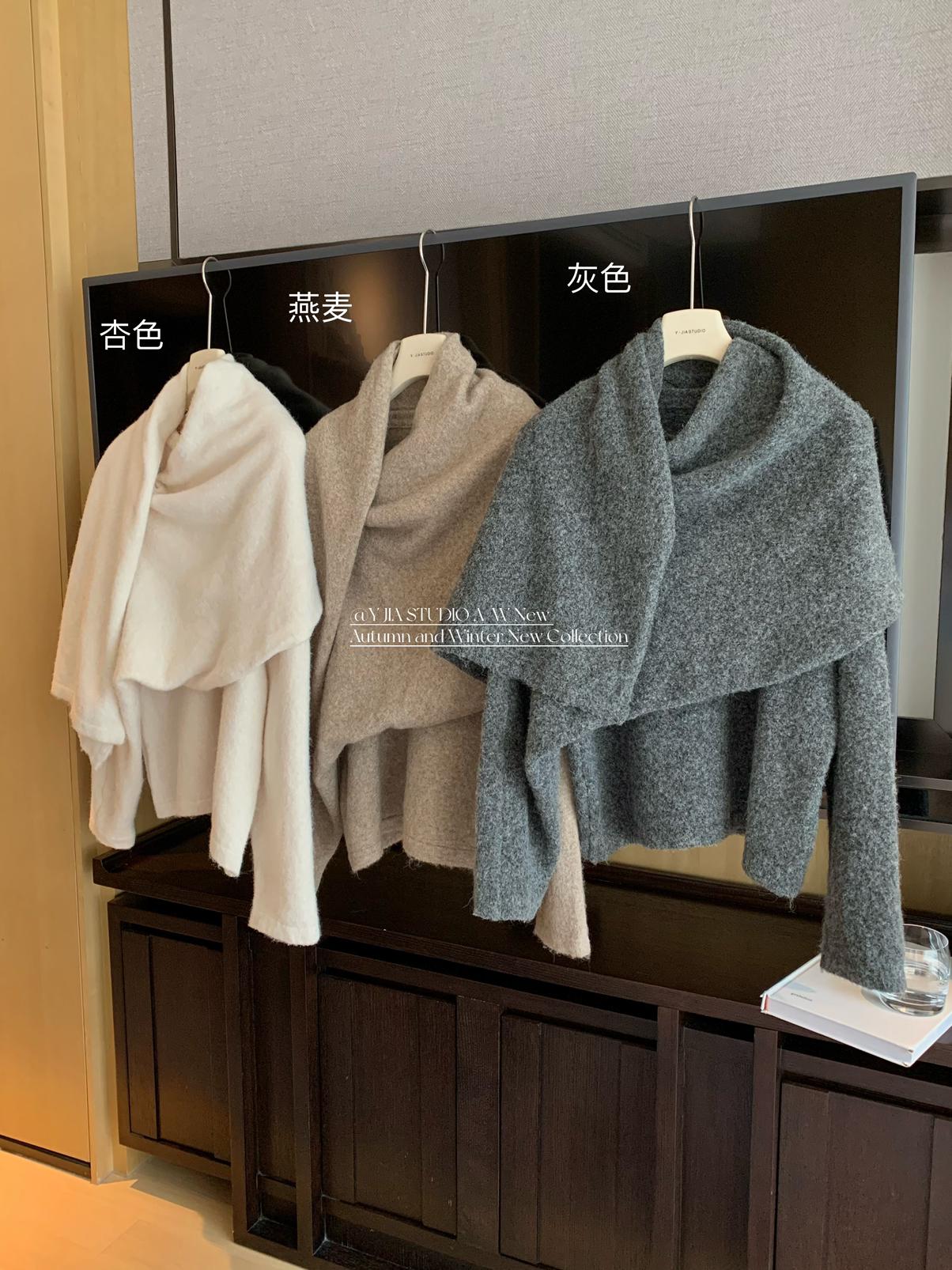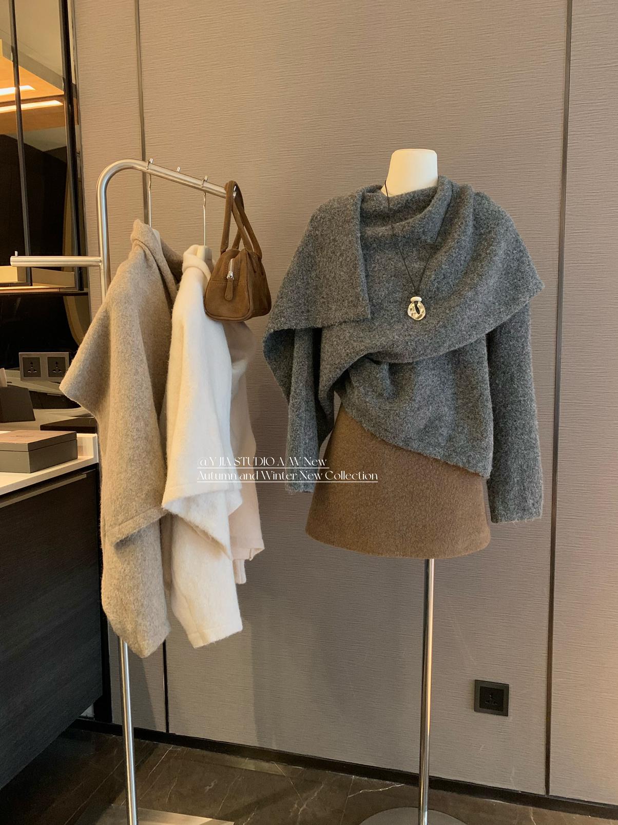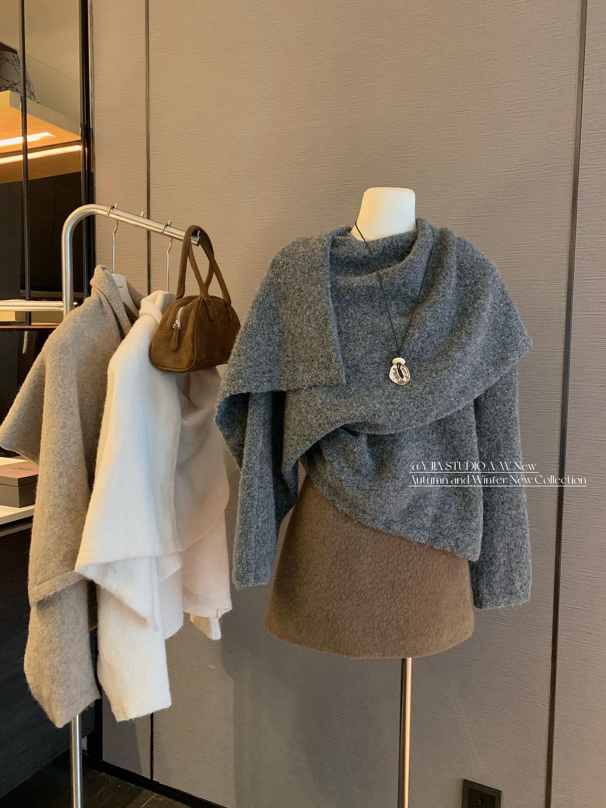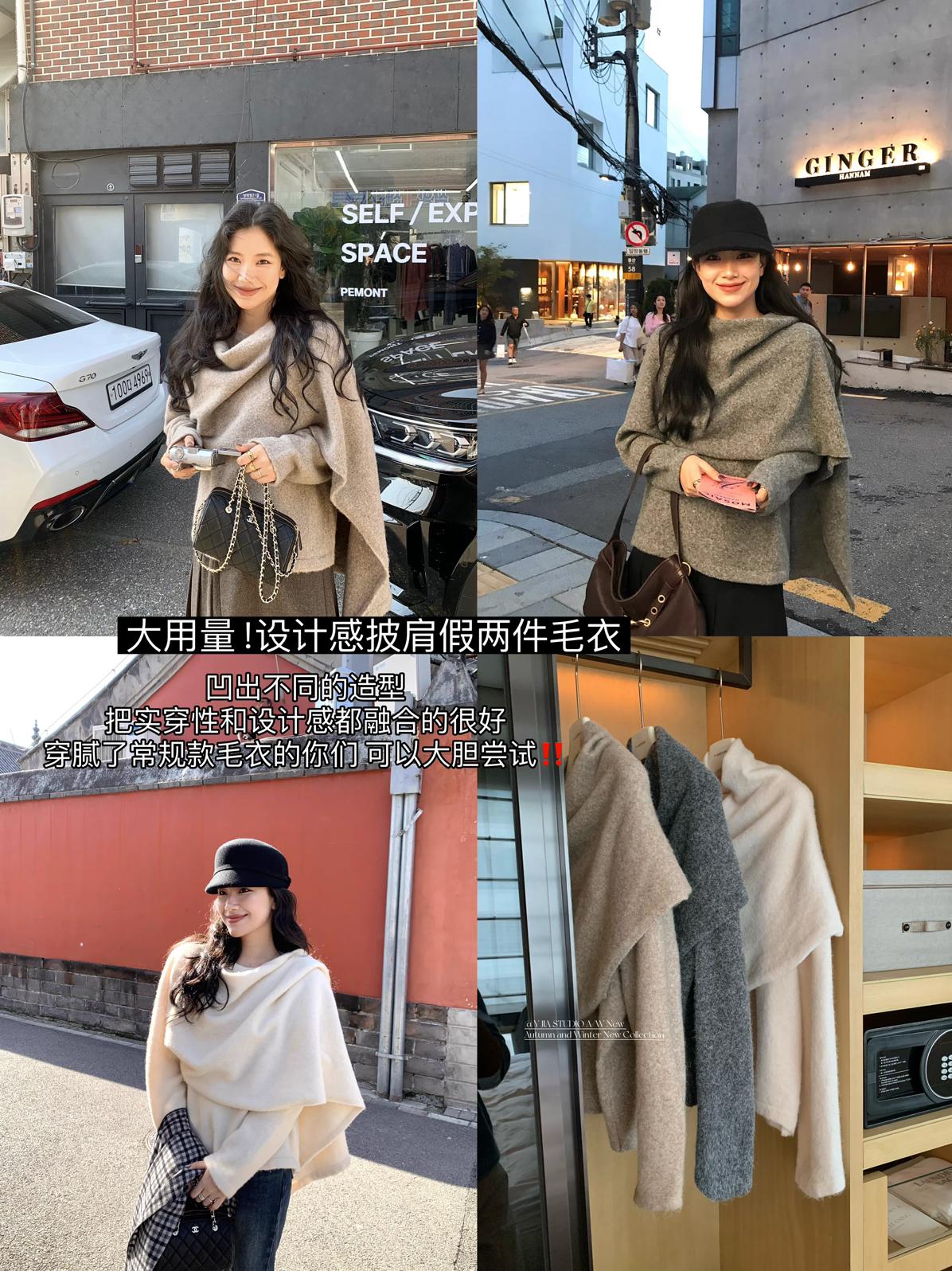 3. 【C8222】大用量!設計感披肩假兩件小衆圓領寬鬆保暖毛衣