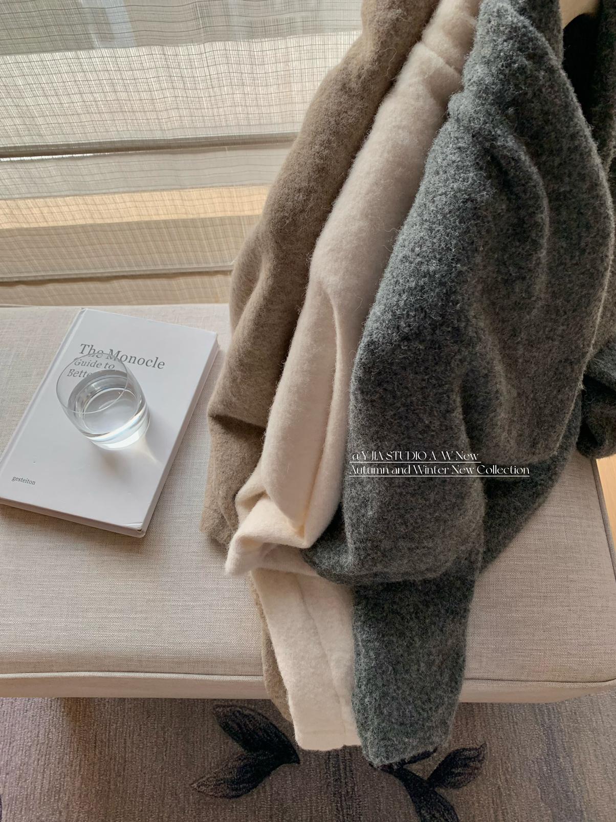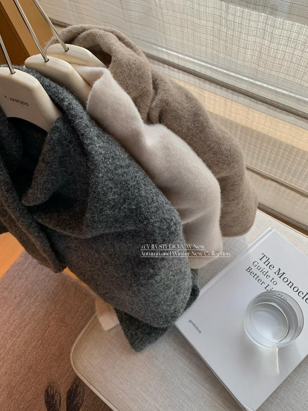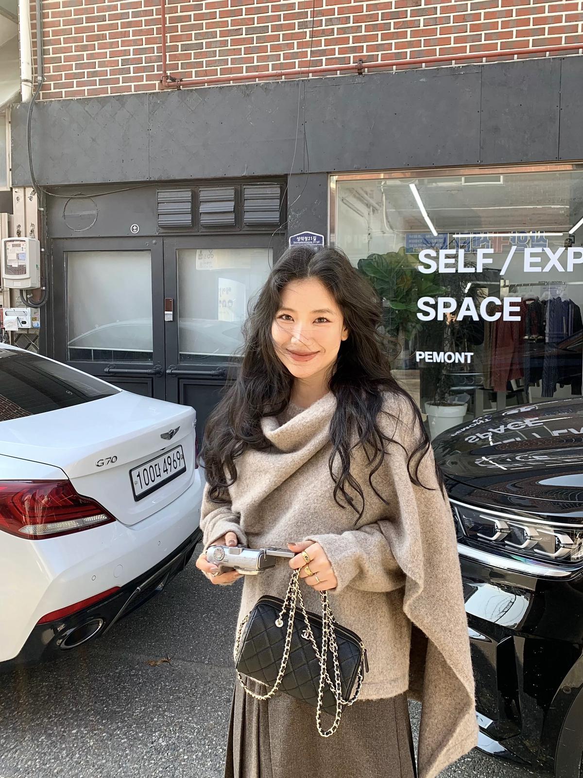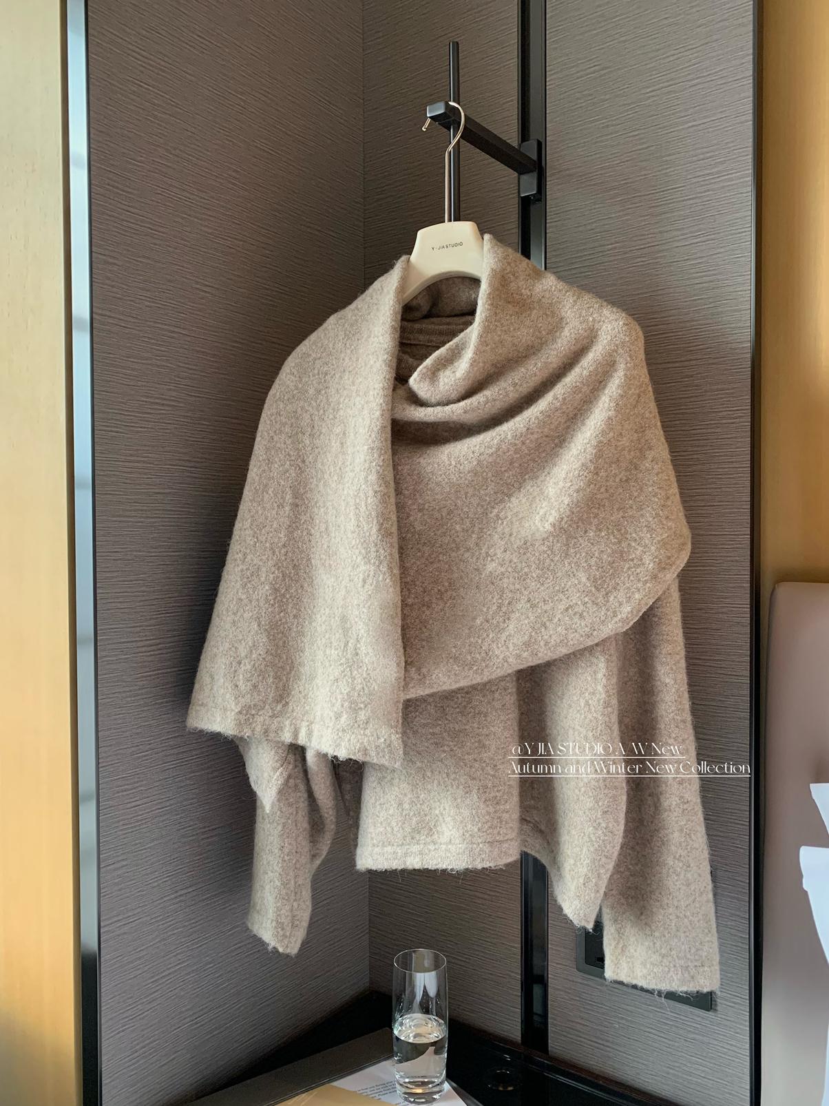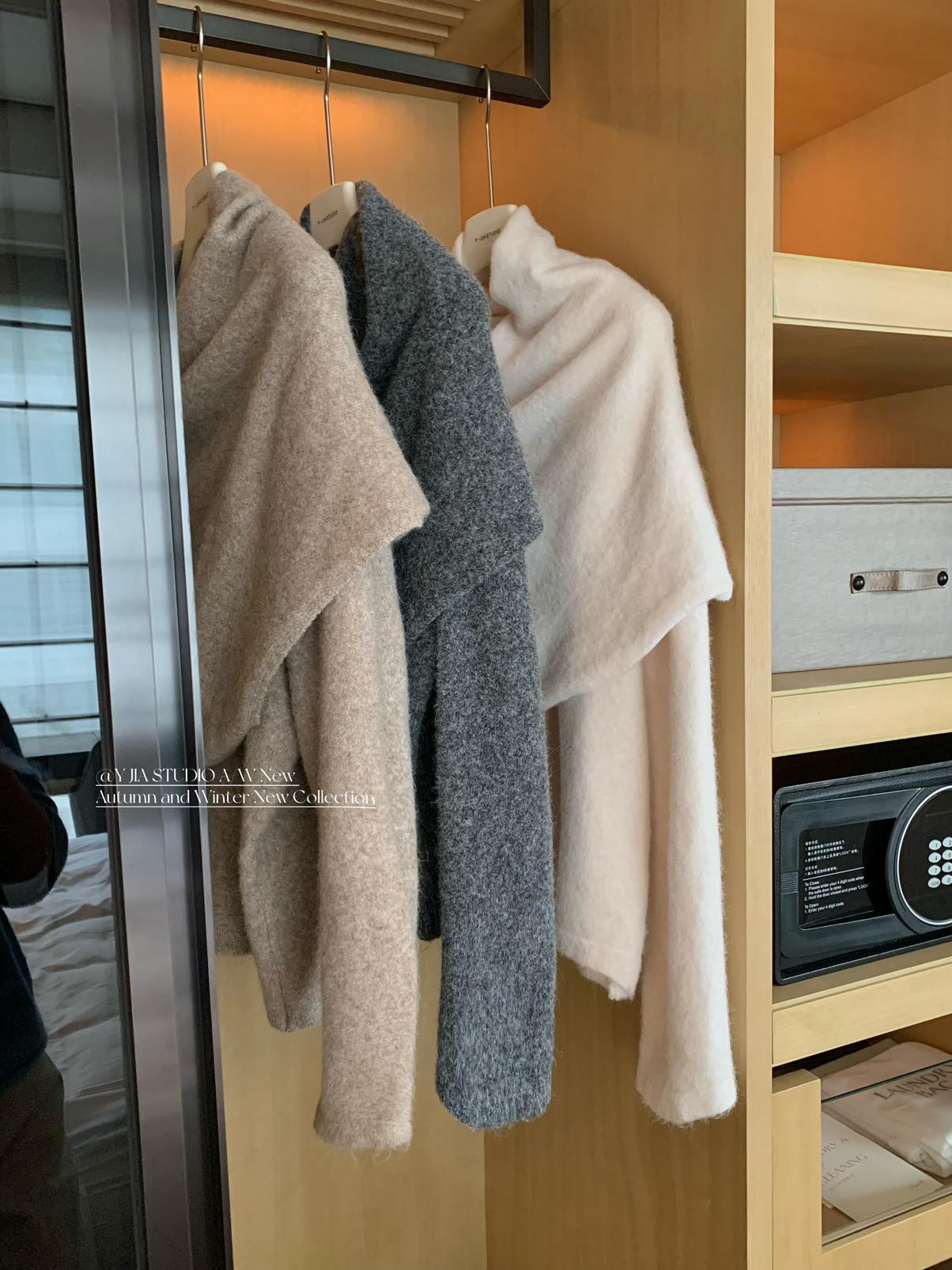 3. 【C8222】大用量!設計感披肩假兩件小衆圓領寬鬆保暖毛衣