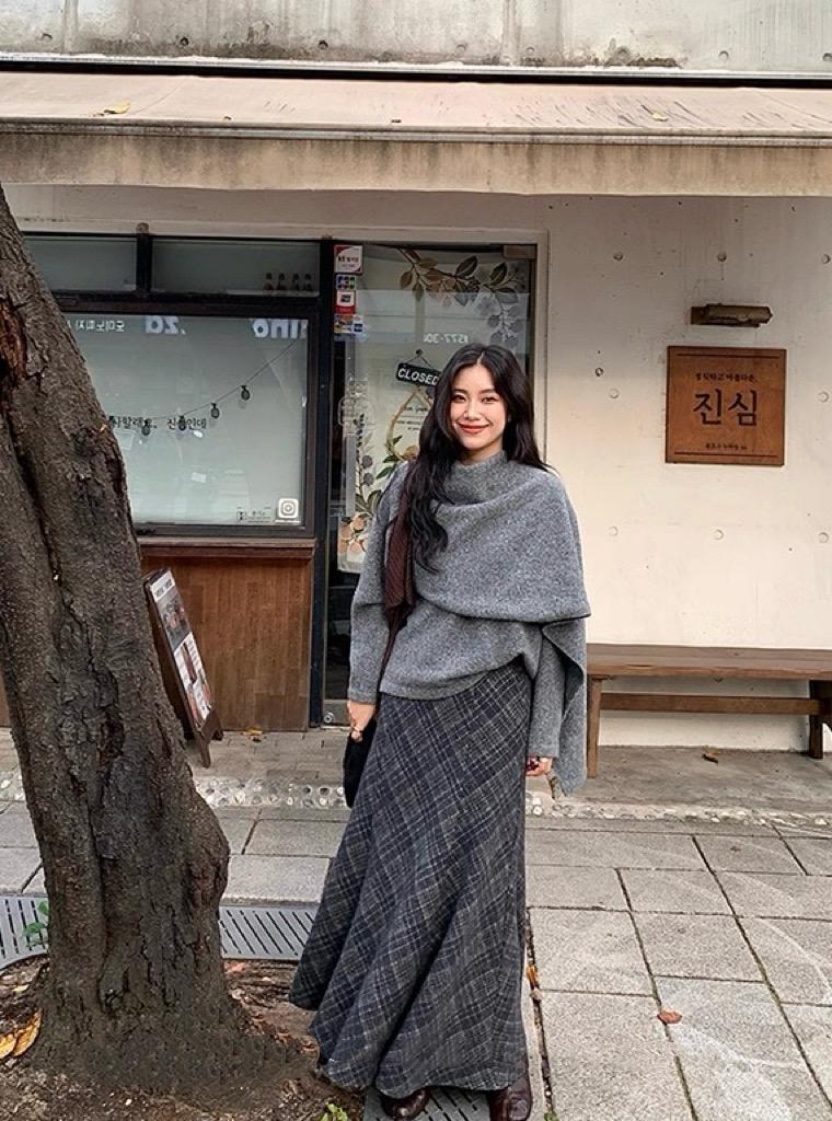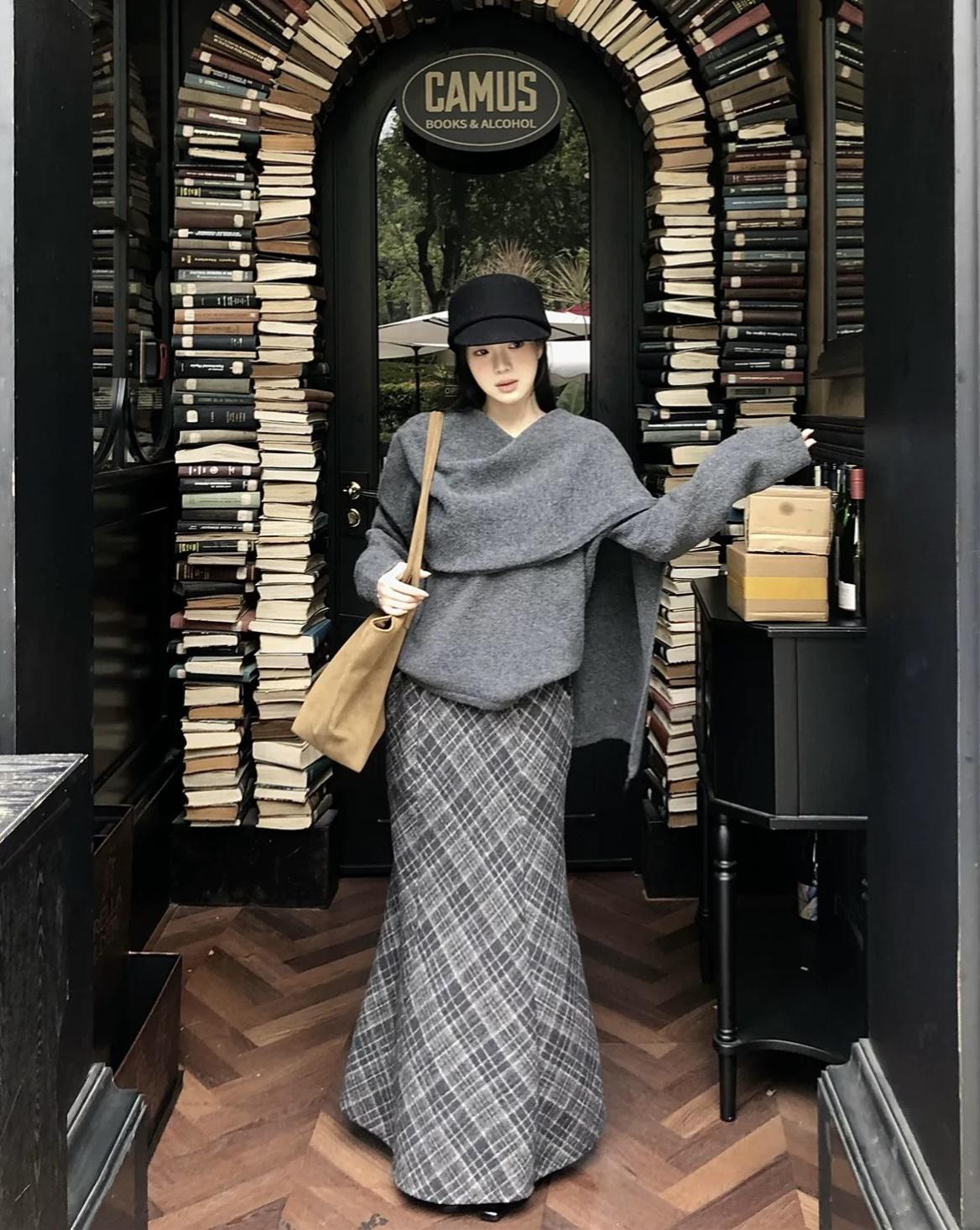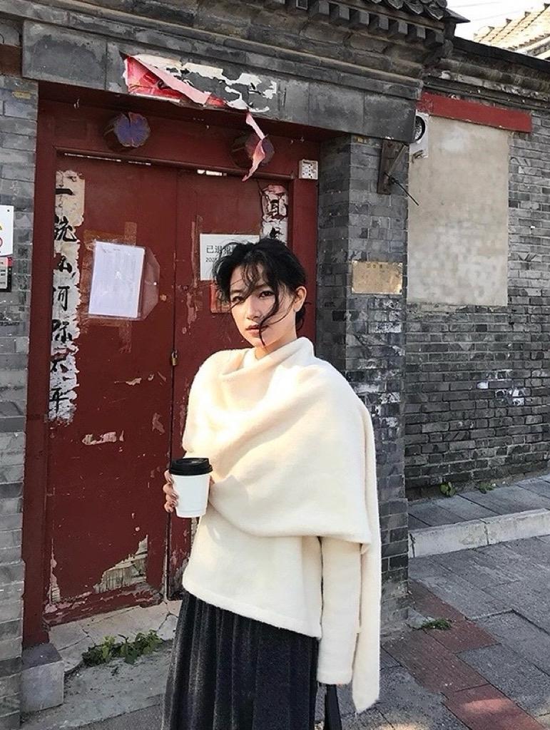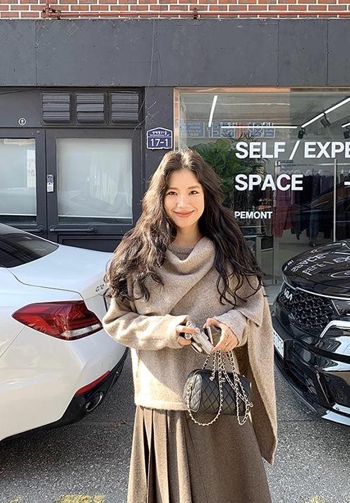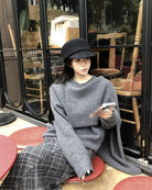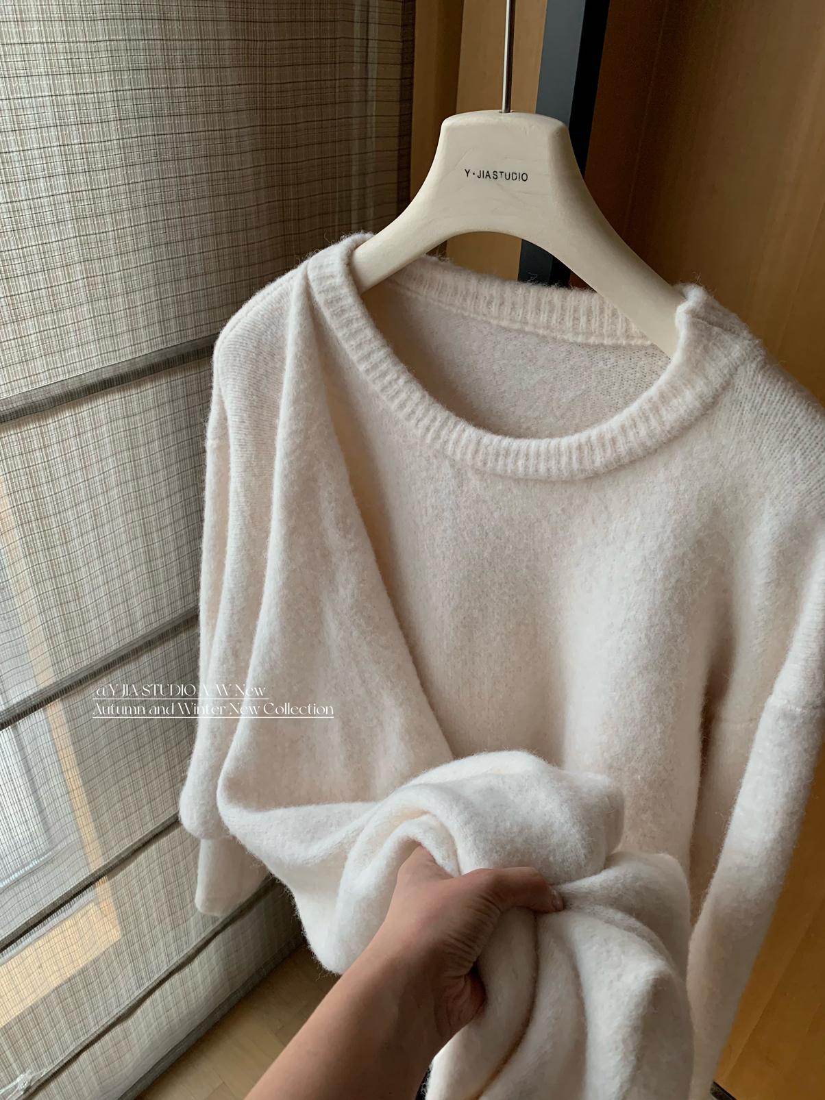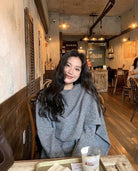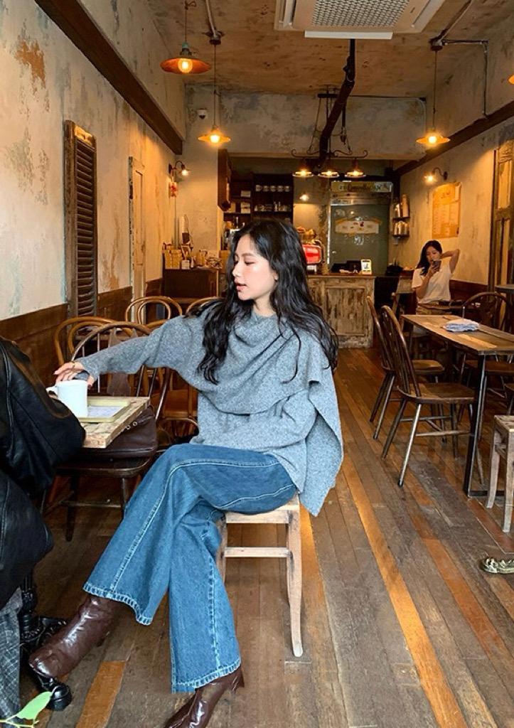 3. 【C8222】大用量!設計感披肩假兩件小衆圓領寬鬆保暖毛衣