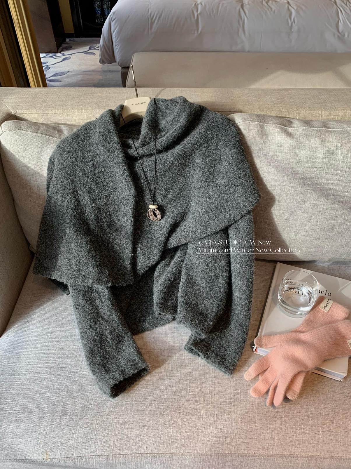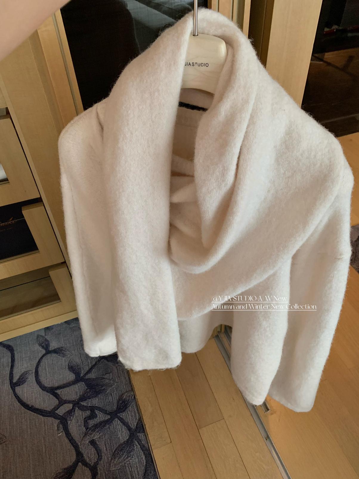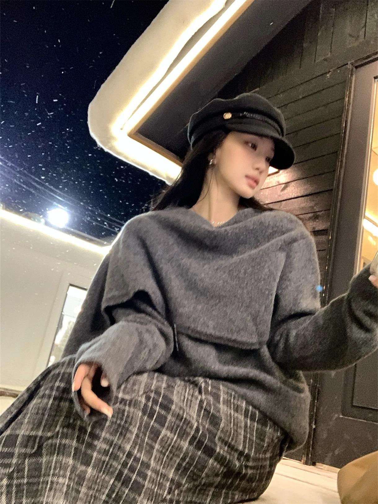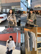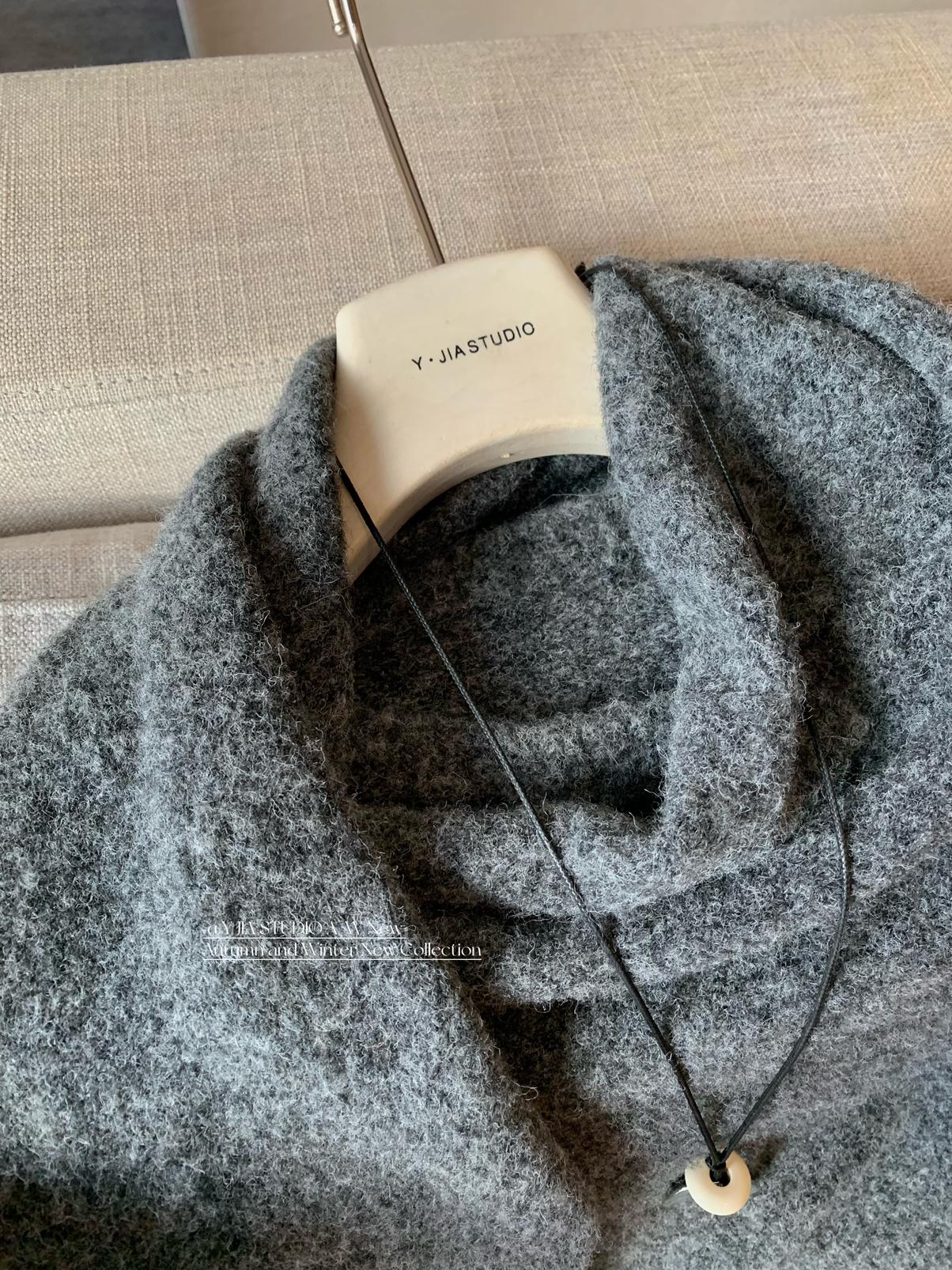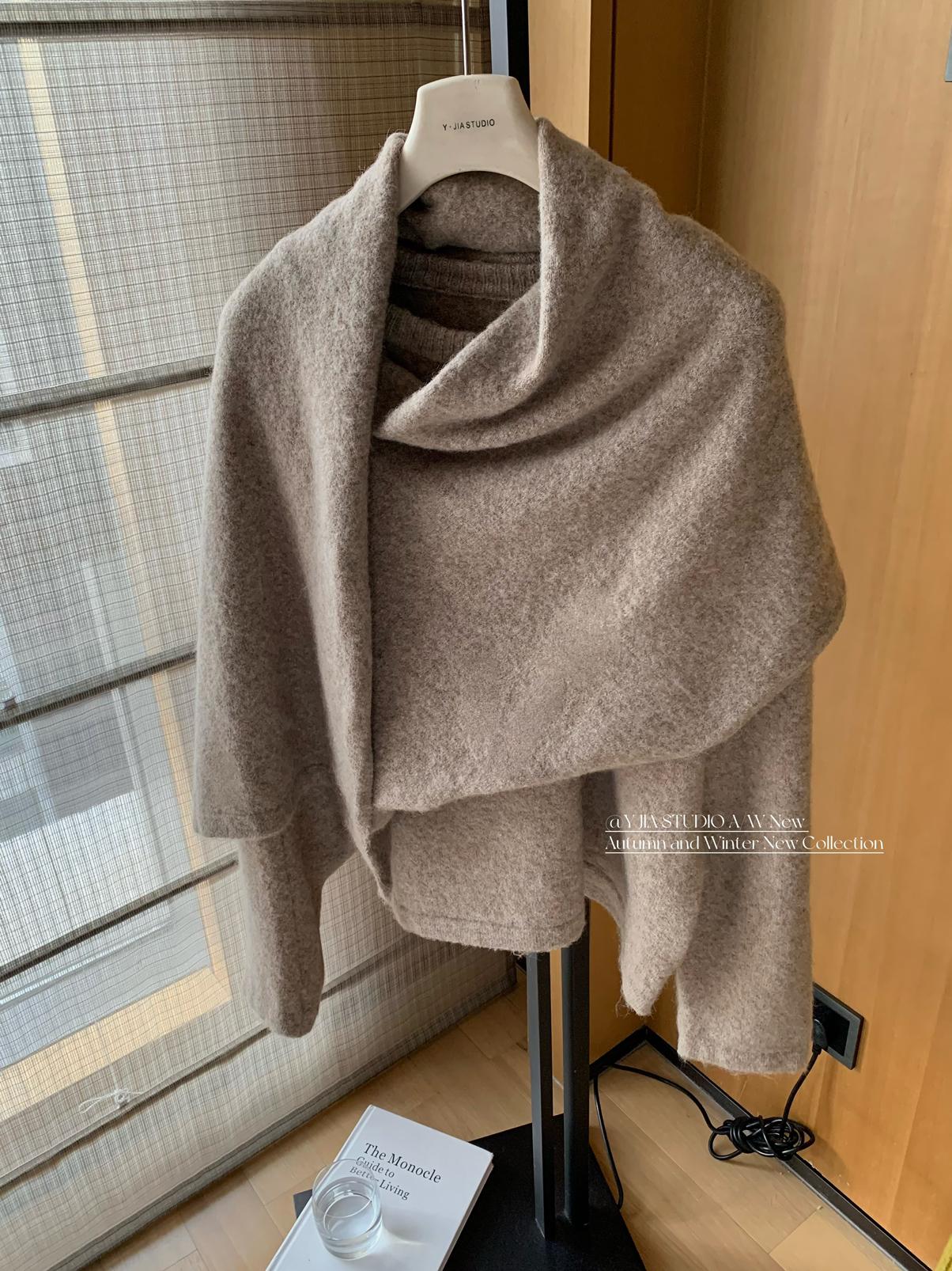 【C8222】大用量!設計感披肩假兩件小衆圓領寬鬆保暖毛衣