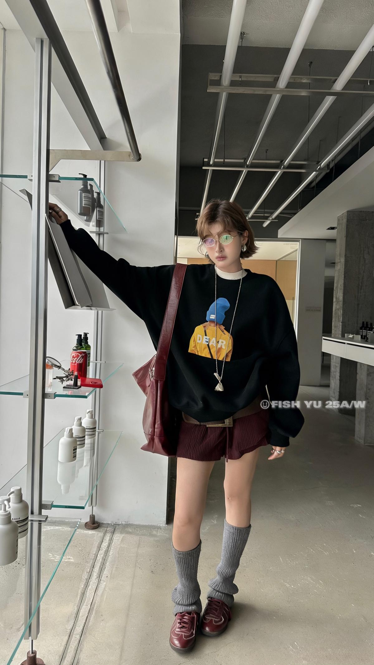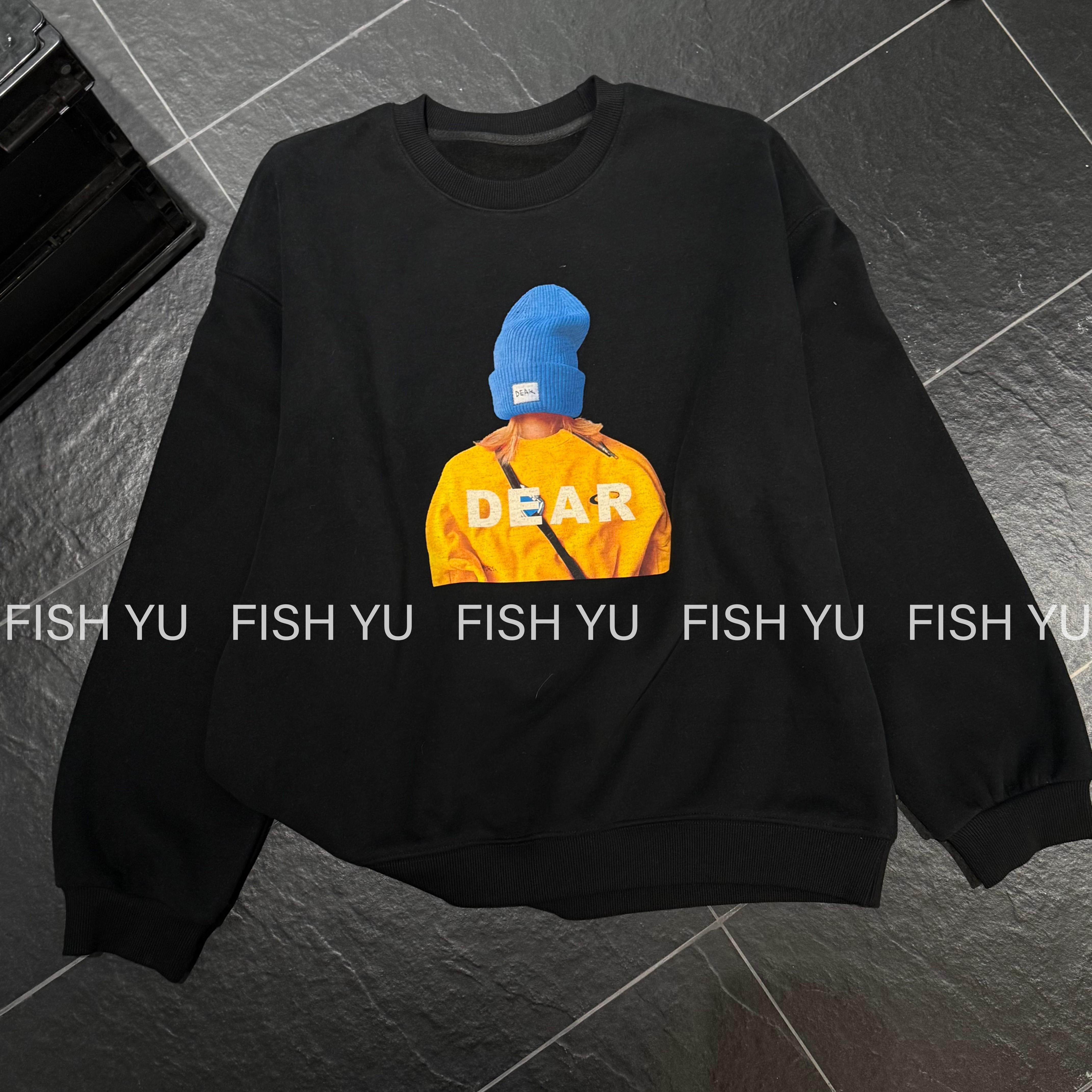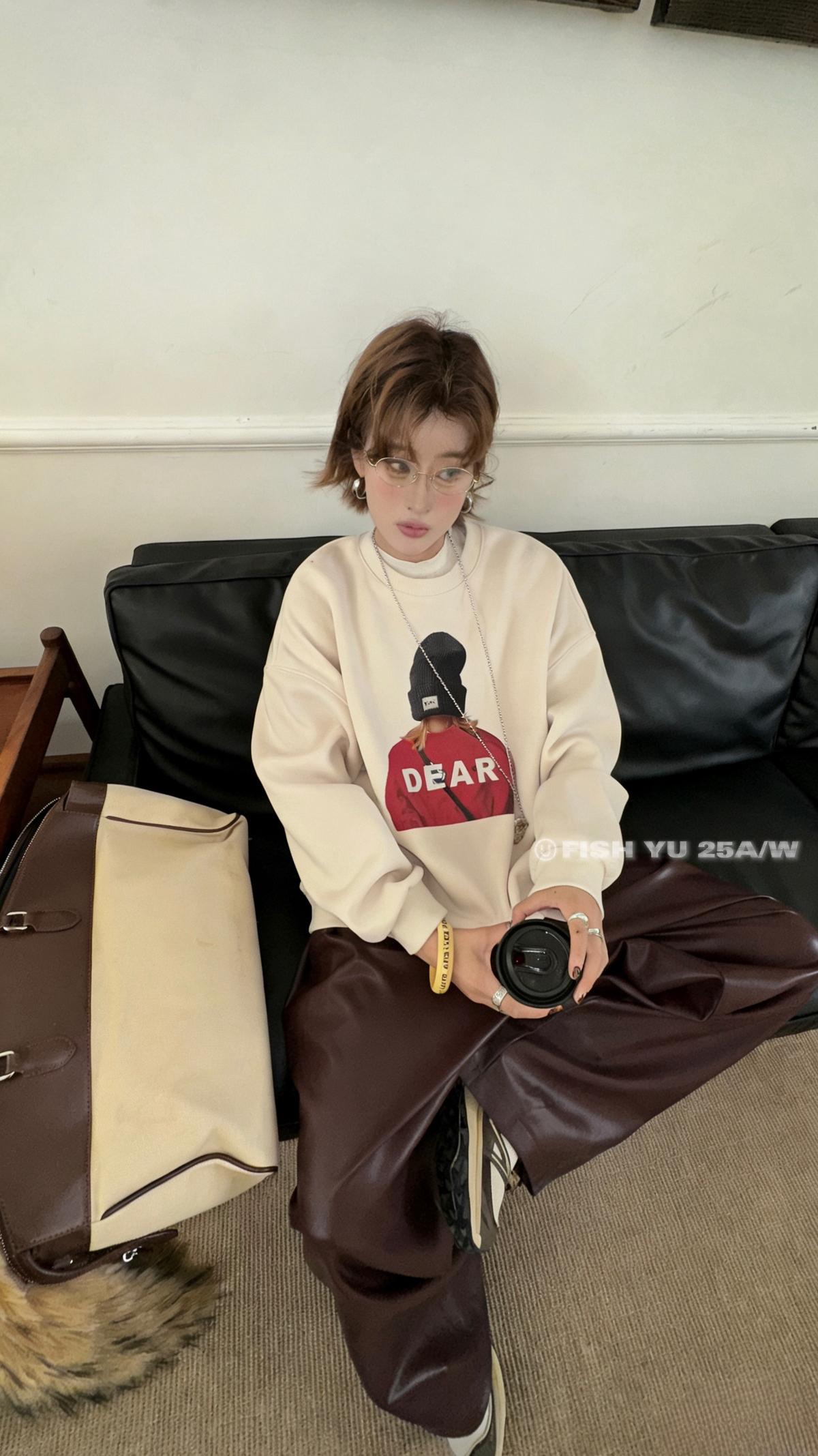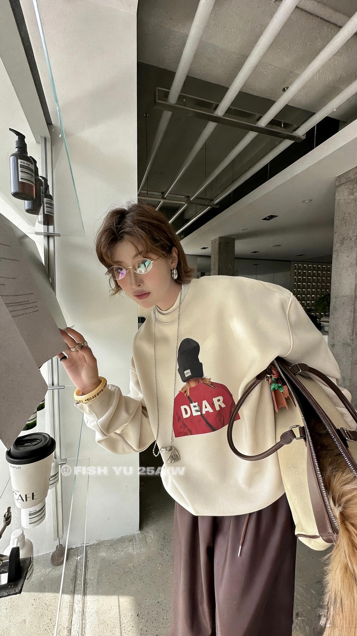 3. 【C8256】美式復古歐美人像DEAR字母直噴印花內裏複合搖粒絨寬鬆圓領衛衣