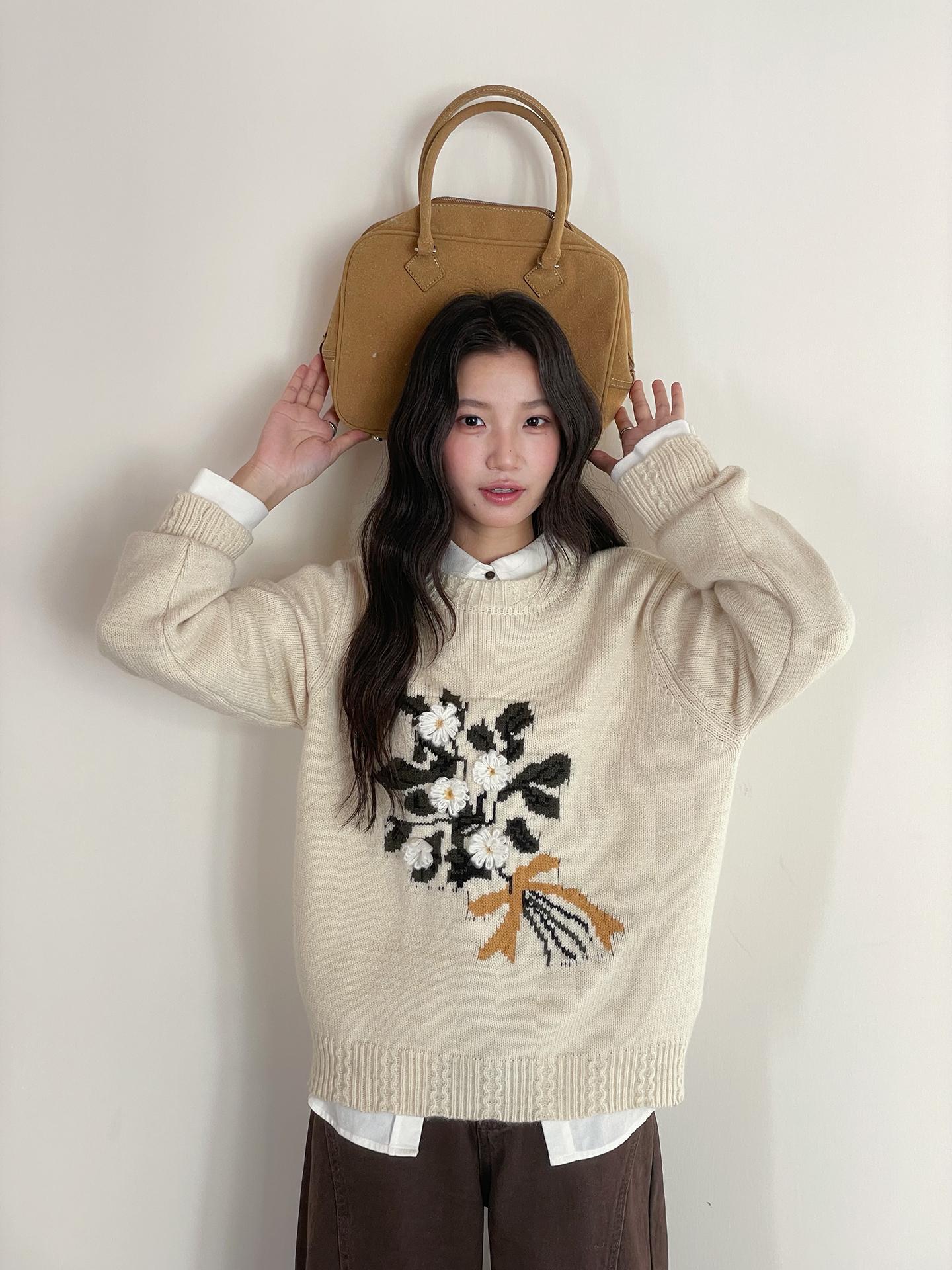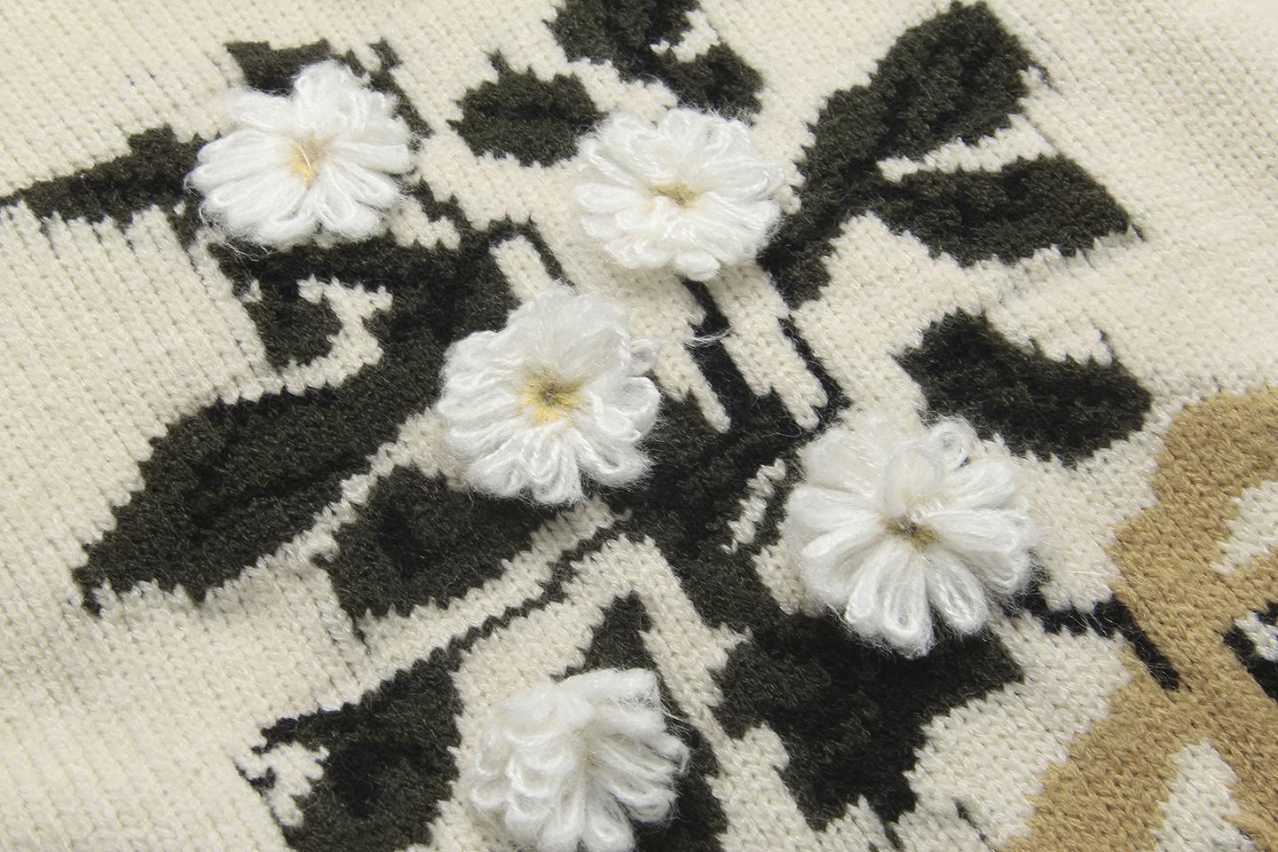 3. 【C8261】設計感立體花卉提花針織衫圓領套頭保暖毛衣