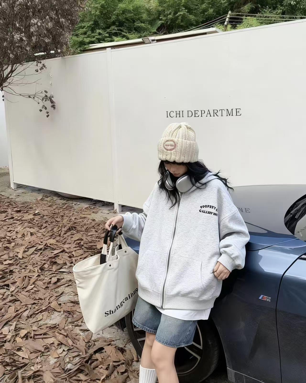 3. 【C8272】新款韓版連帽外套背後字母刺繡拉鍊開衫女衛衣外套