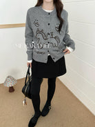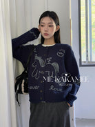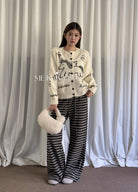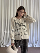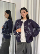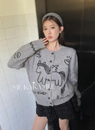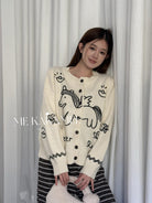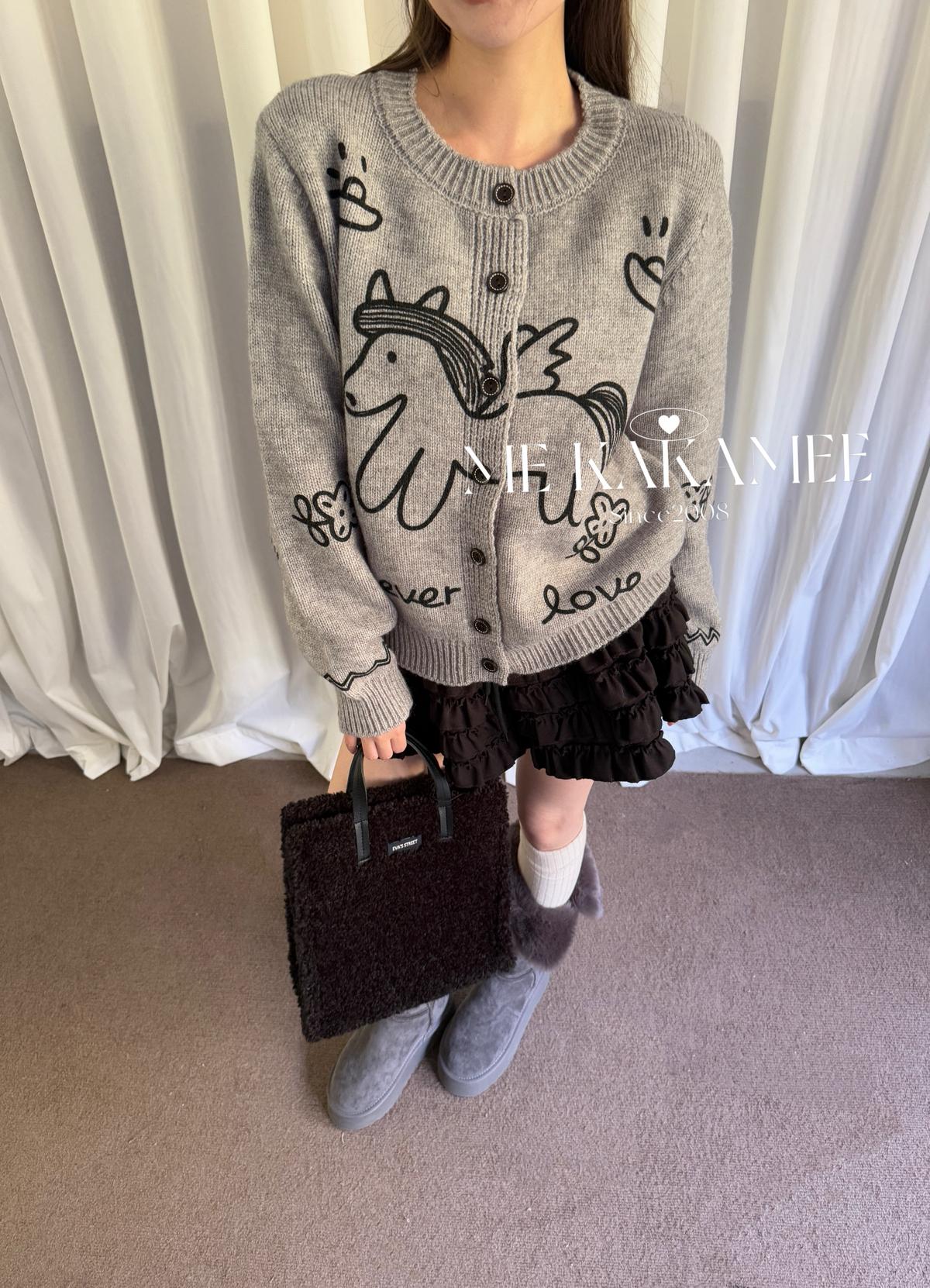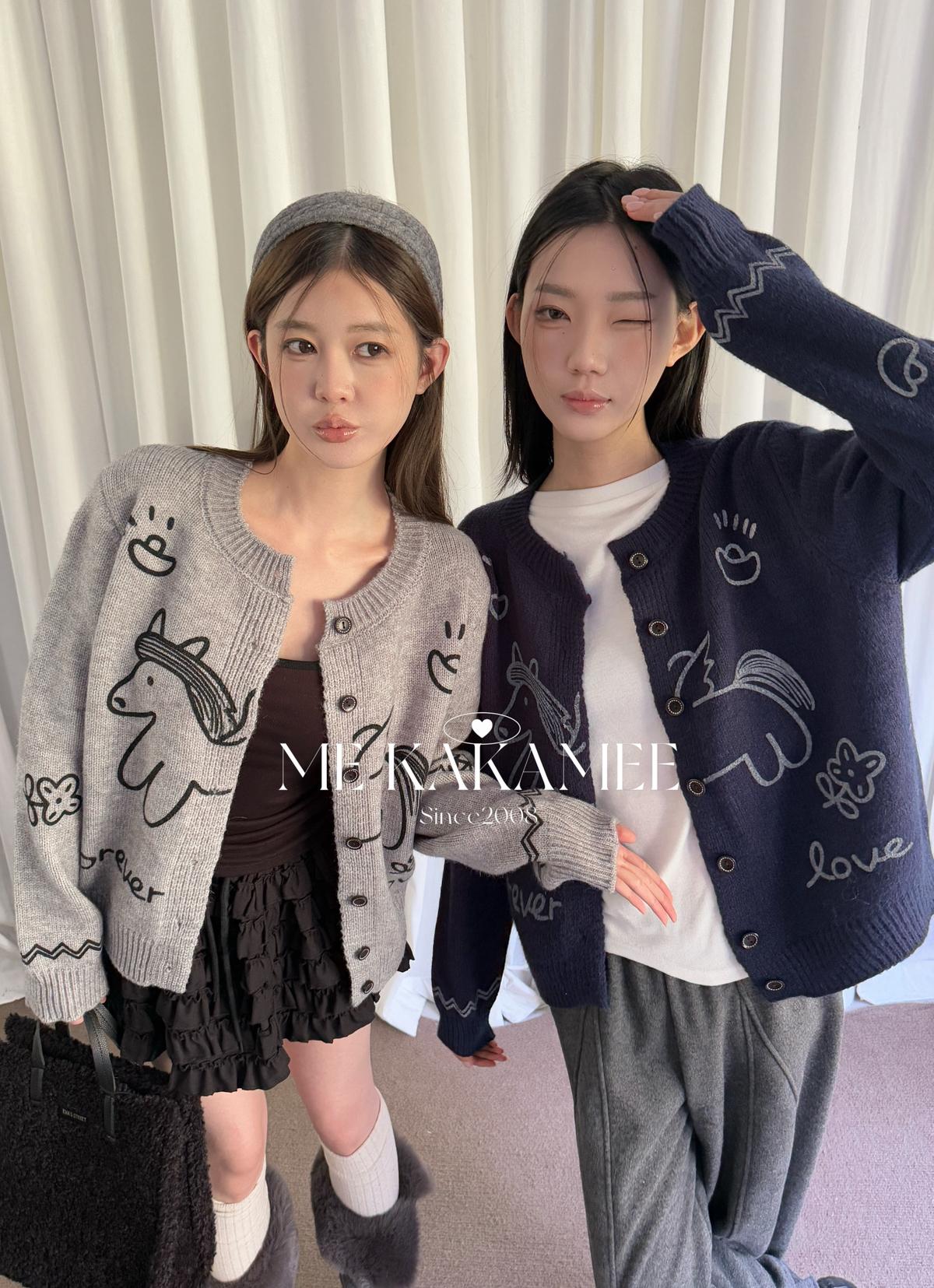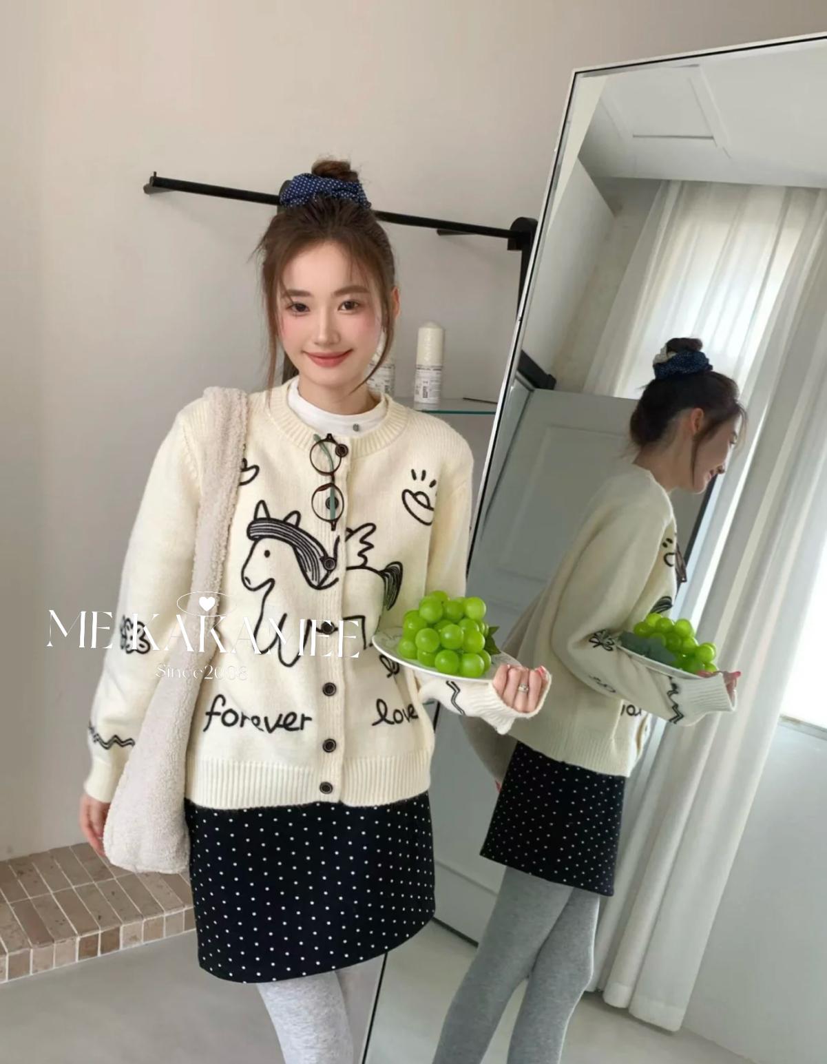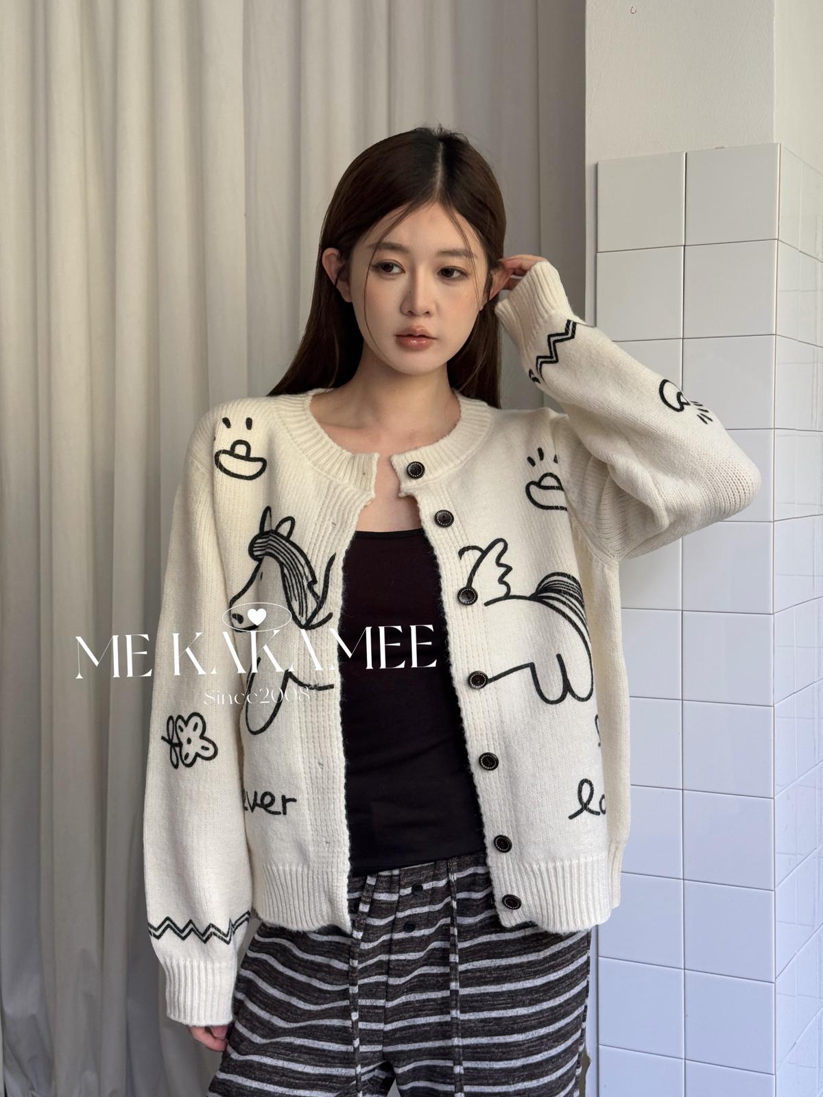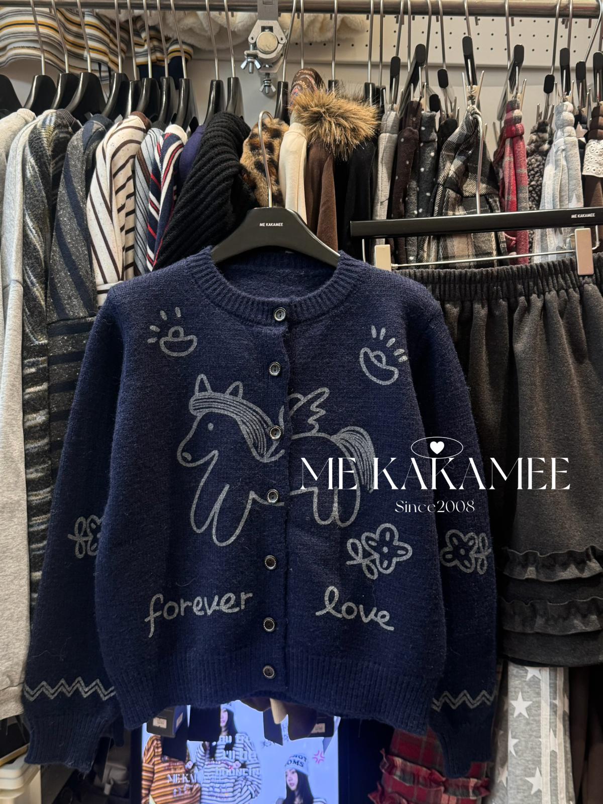 3. 【C8297】冬新品塗鴉小馬圖案軟糯圓領開衫保暖毛衣