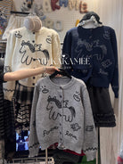 【C8297】冬新品塗鴉小馬圖案軟糯圓領開衫保暖毛衣