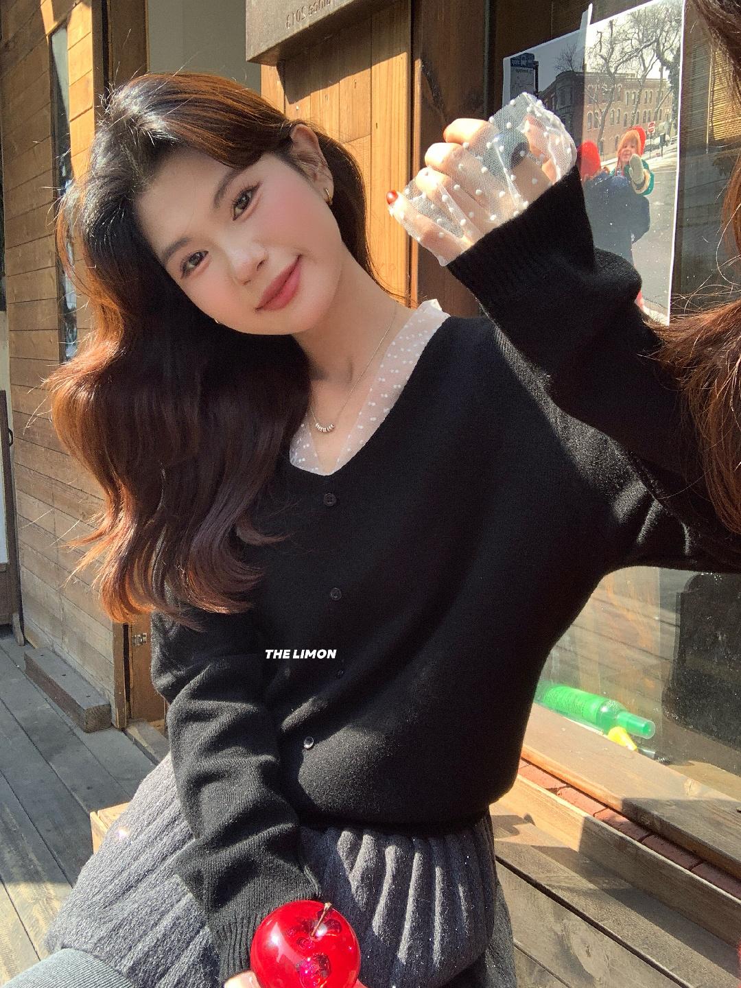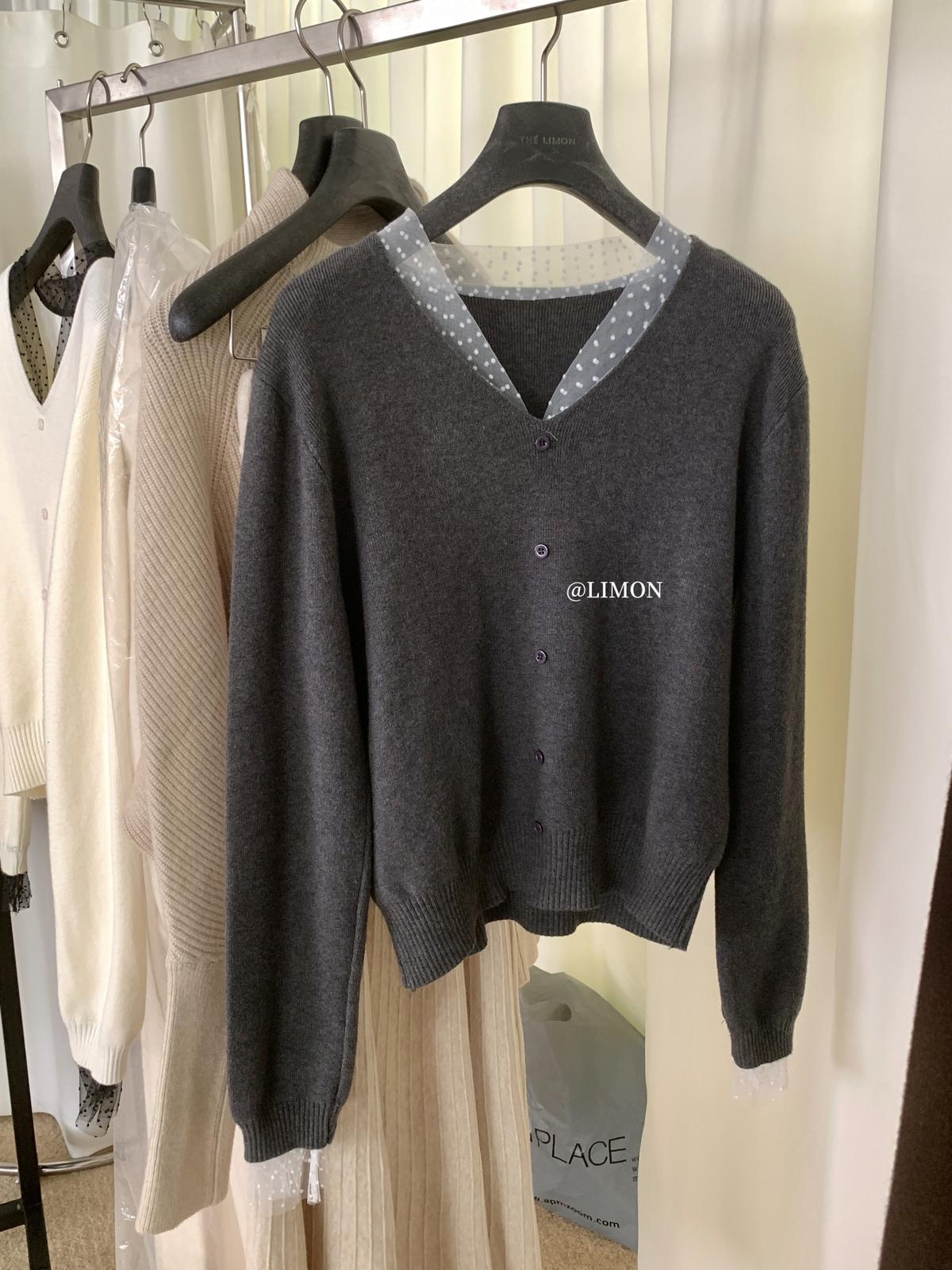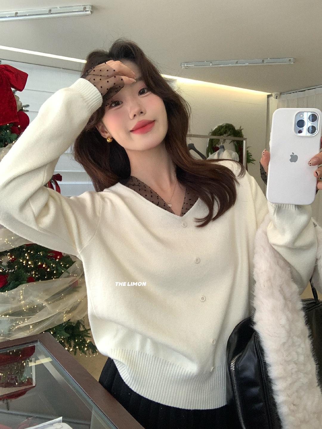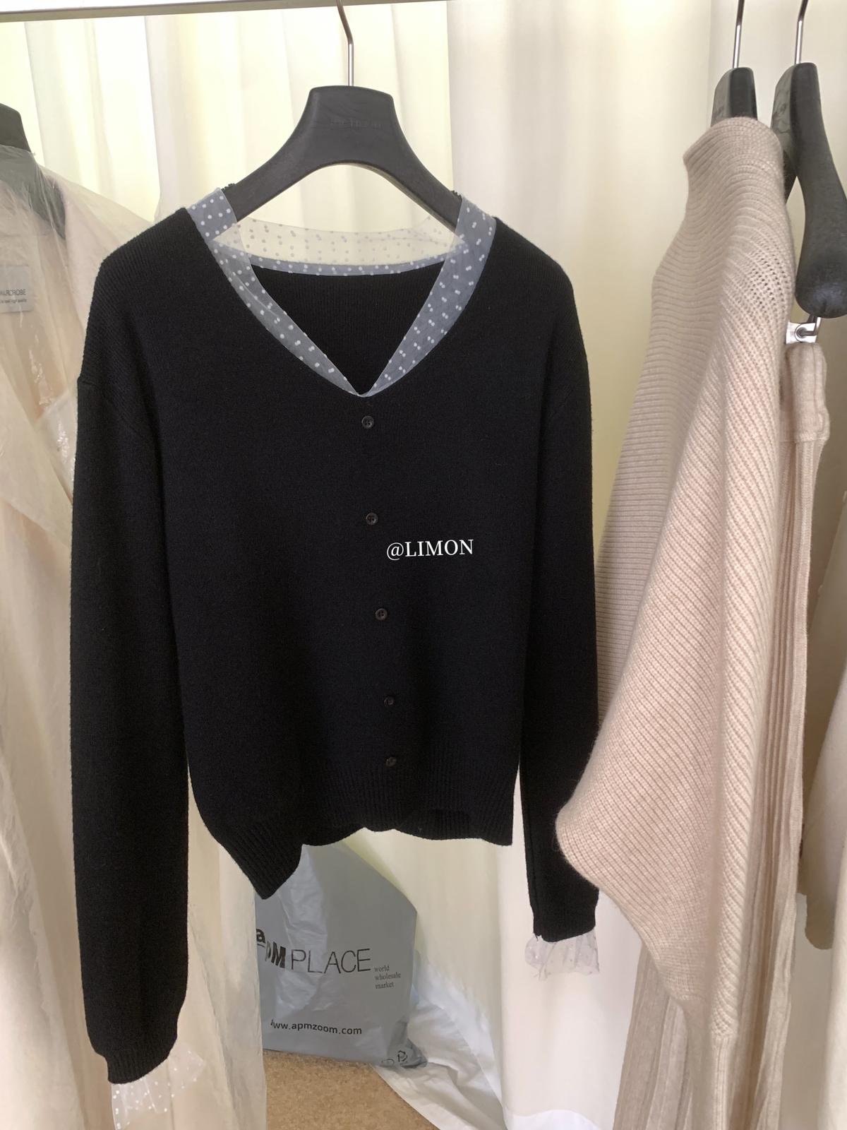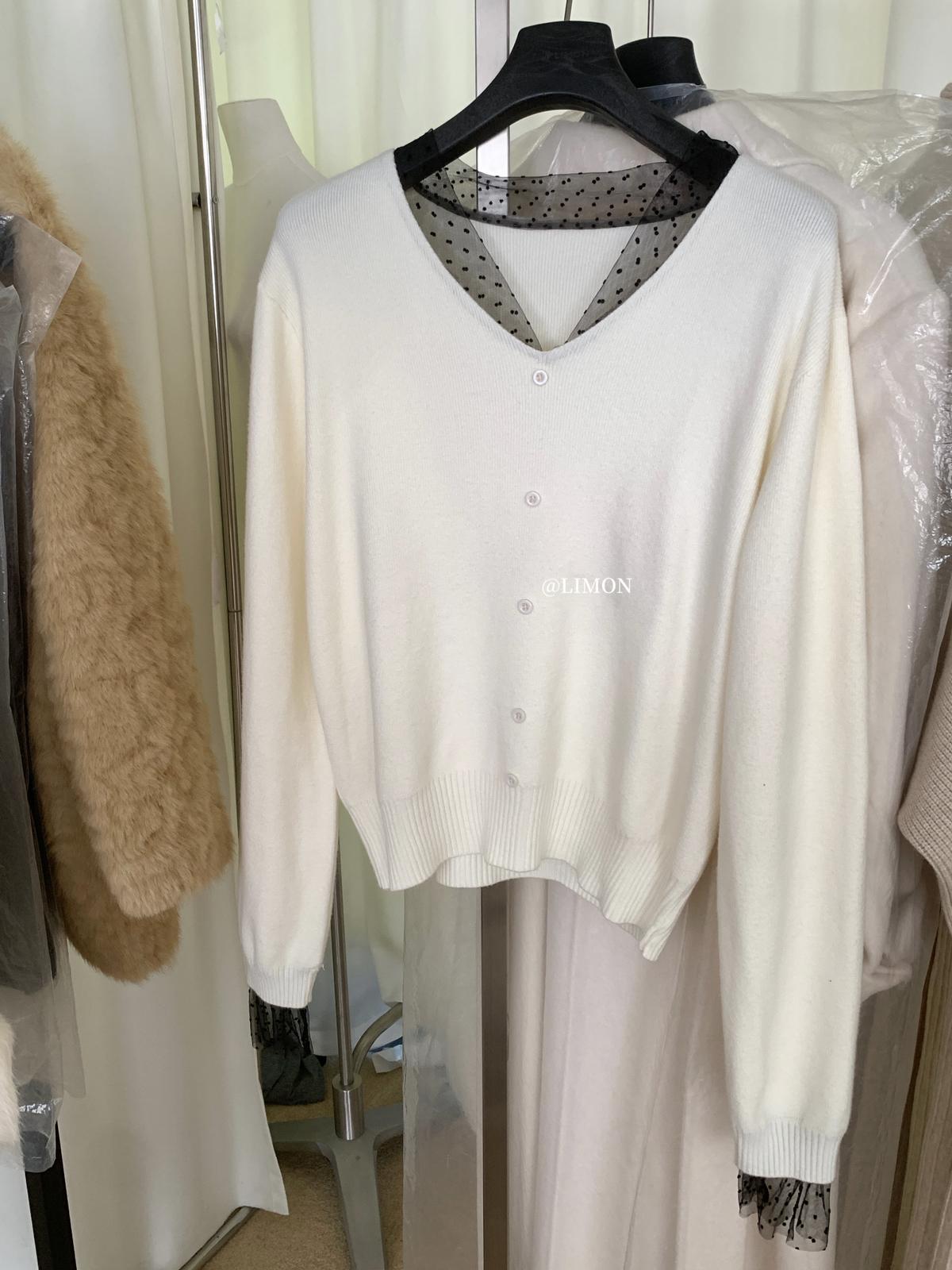 3. 【C8334】蕾絲V領波點拼接內搭打底衫針織衫