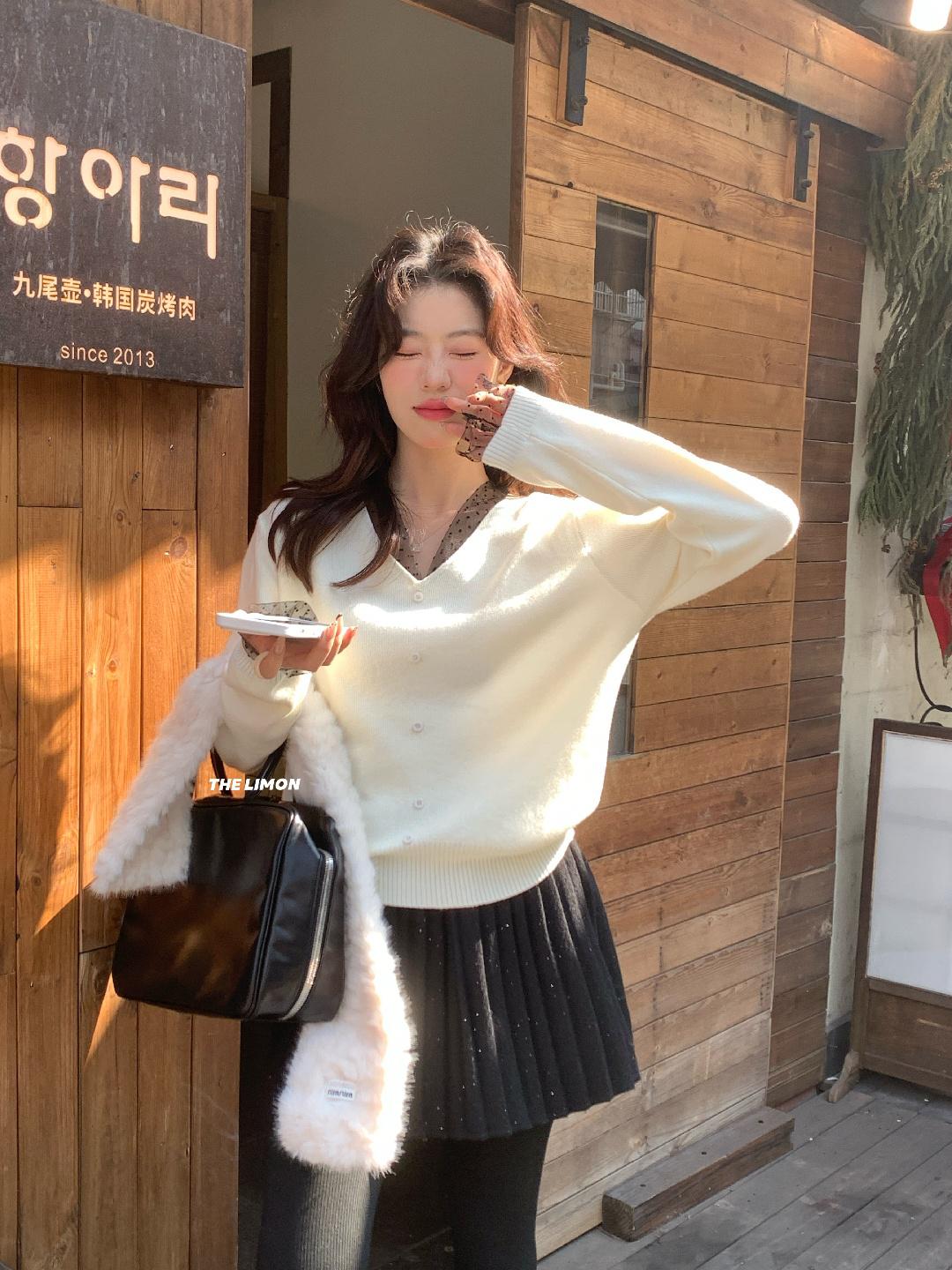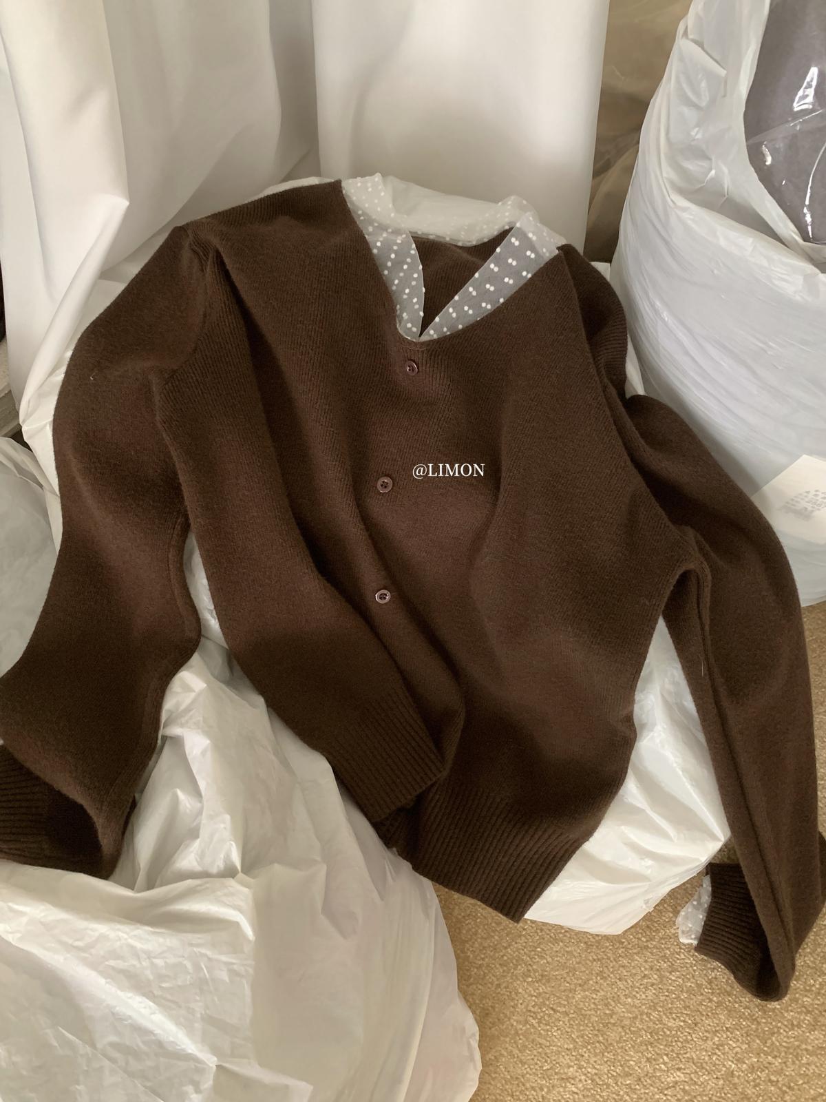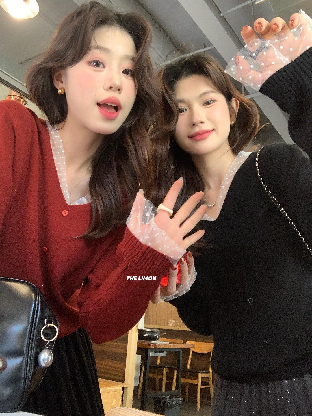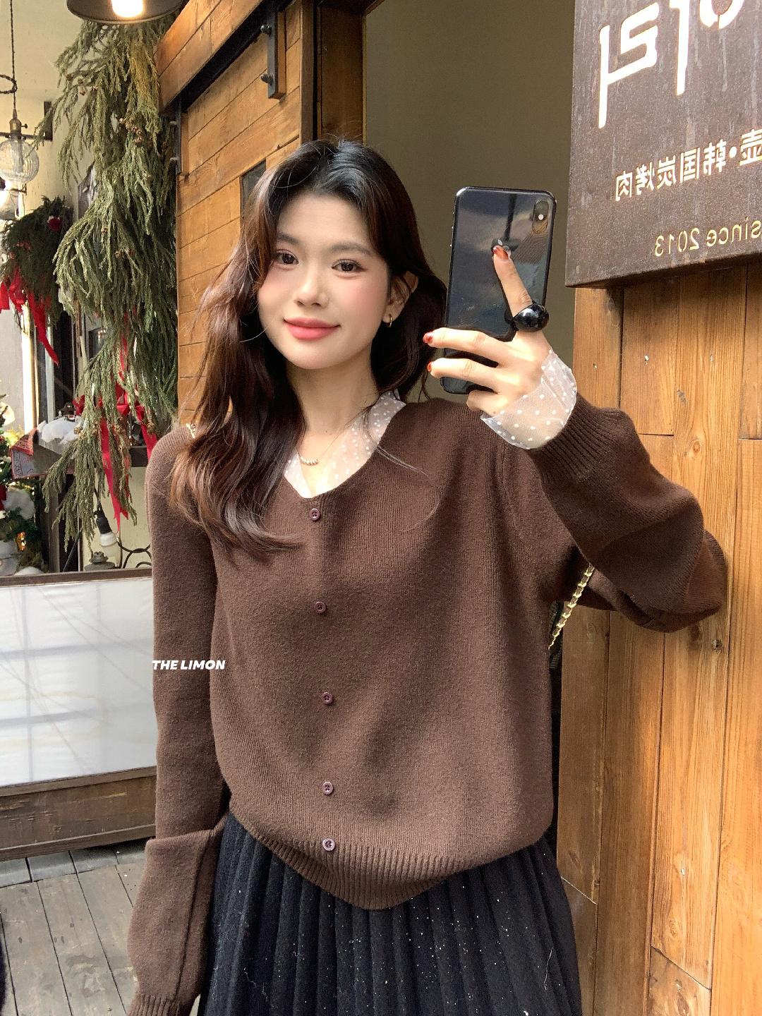 3. 【C8334】蕾絲V領波點拼接內搭打底衫針織衫