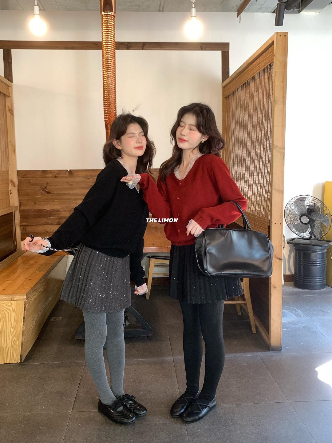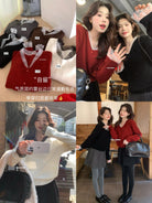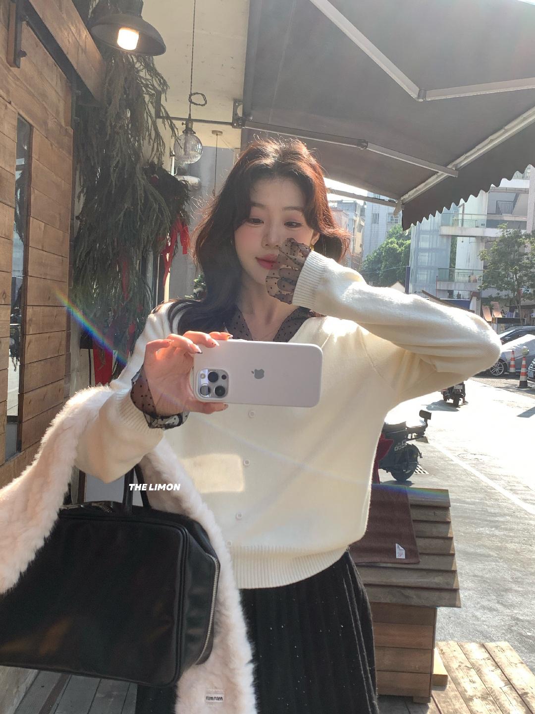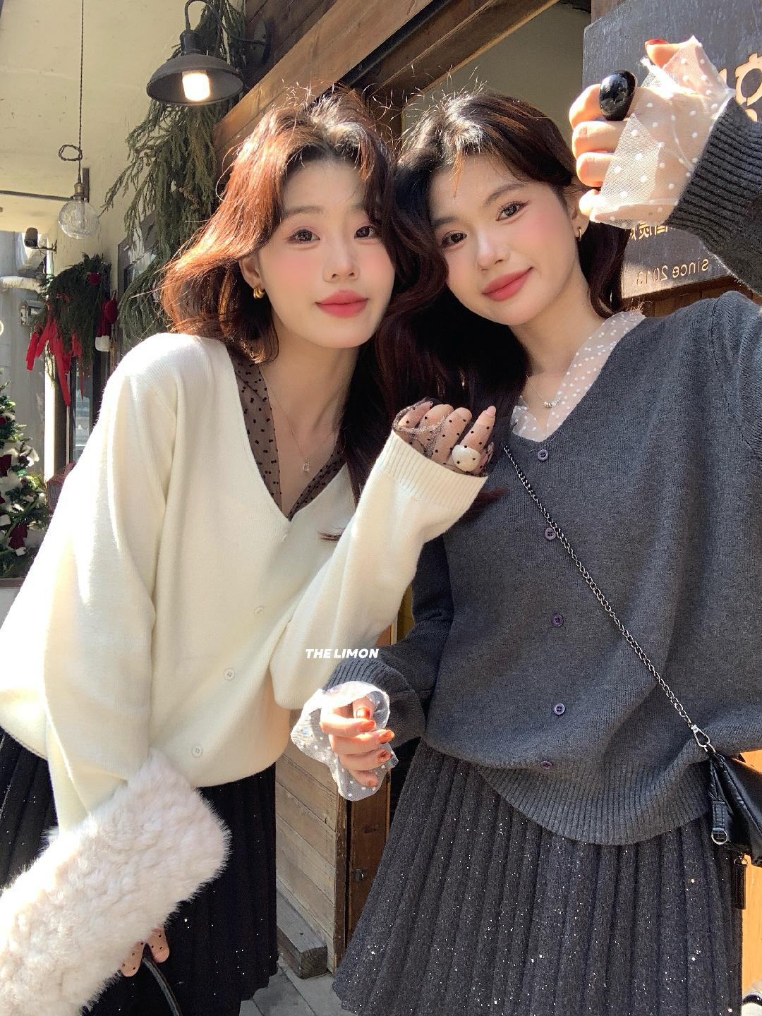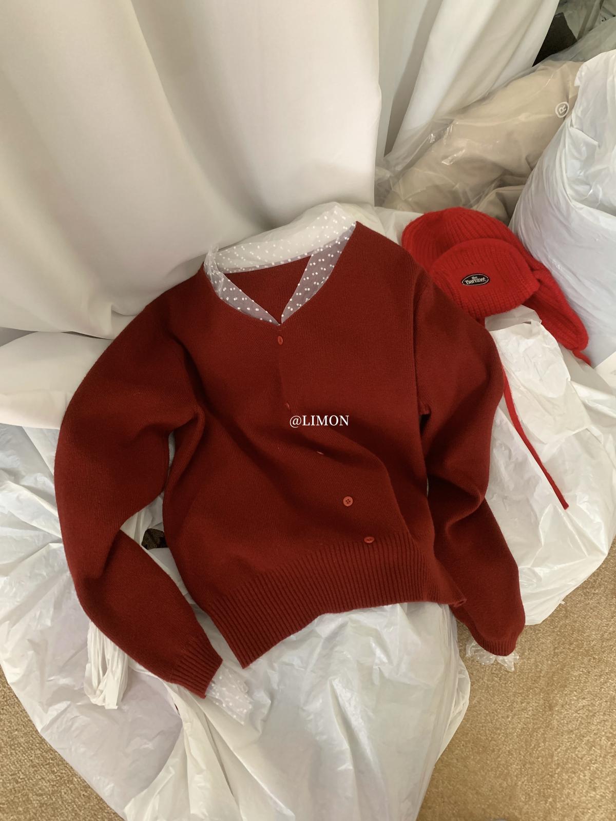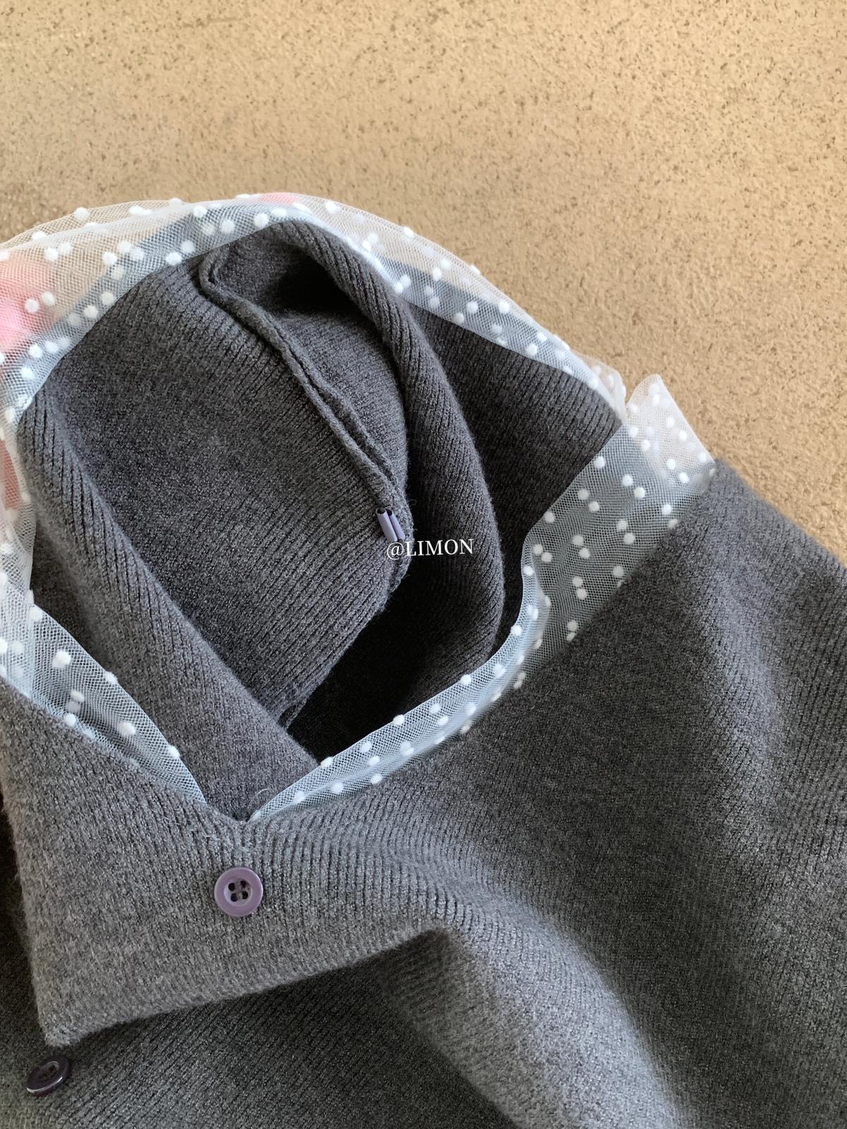 3. 【C8334】蕾絲V領波點拼接內搭打底衫針織衫