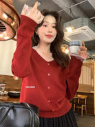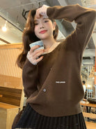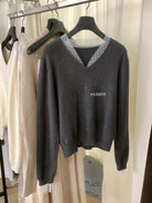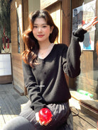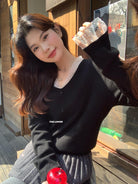 【C8334】蕾絲V領波點拼接內搭打底衫針織衫