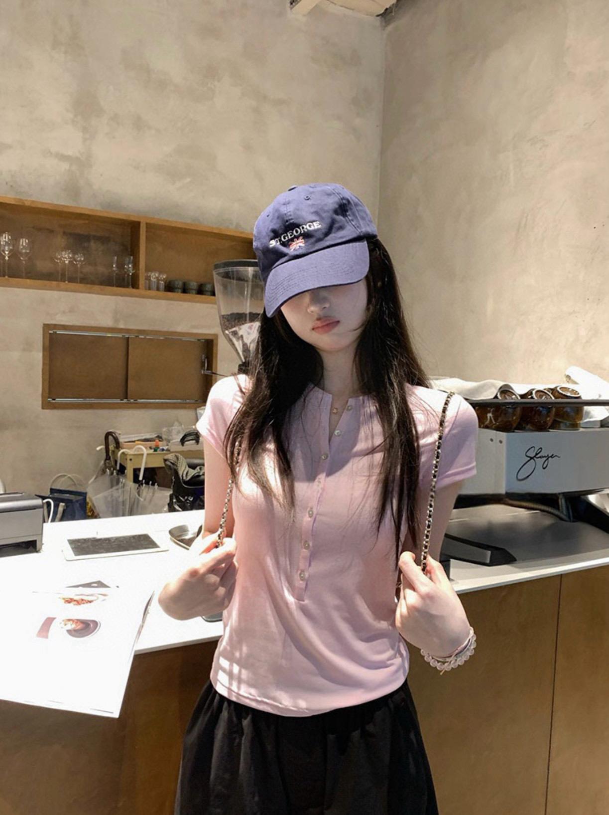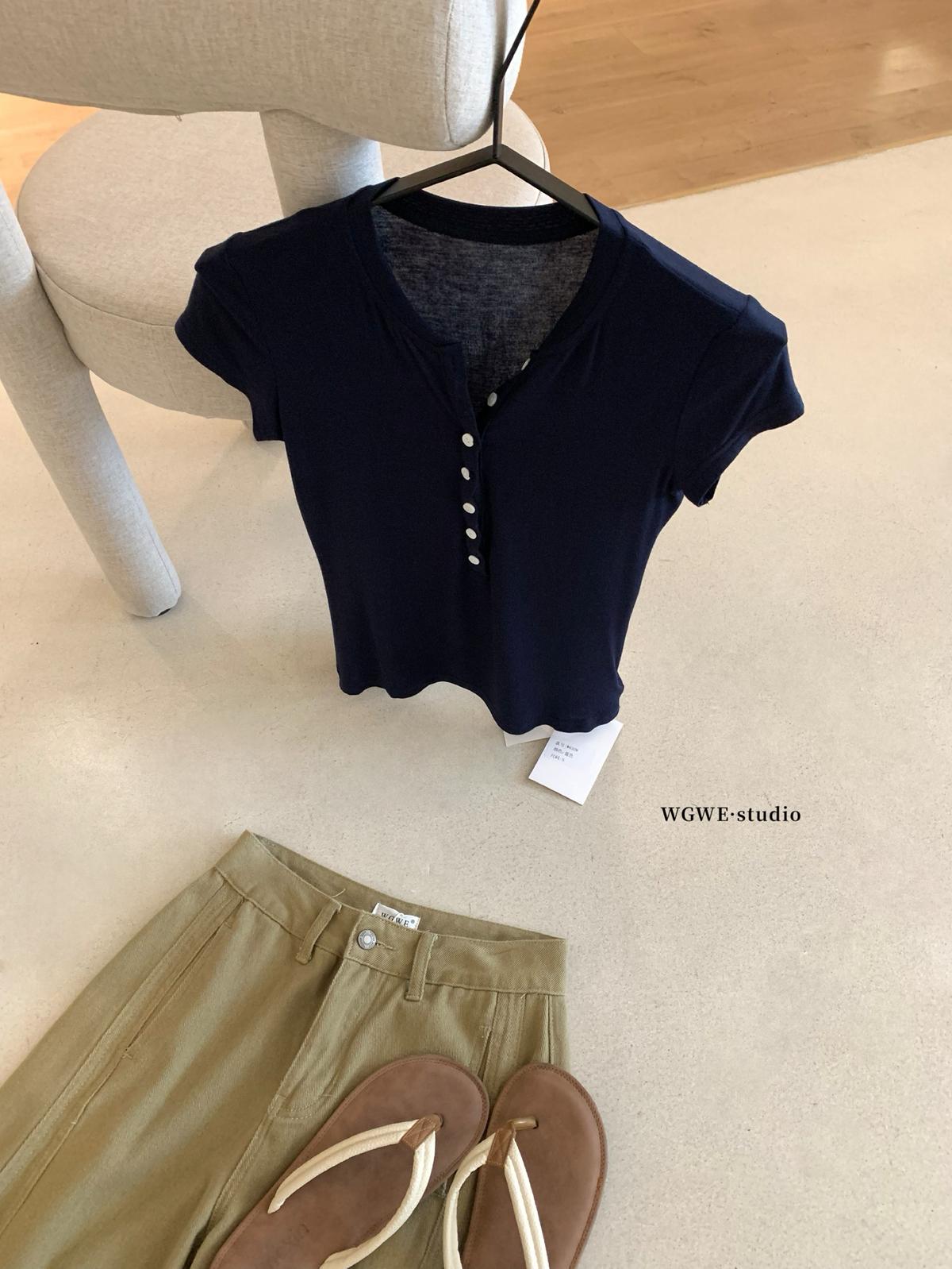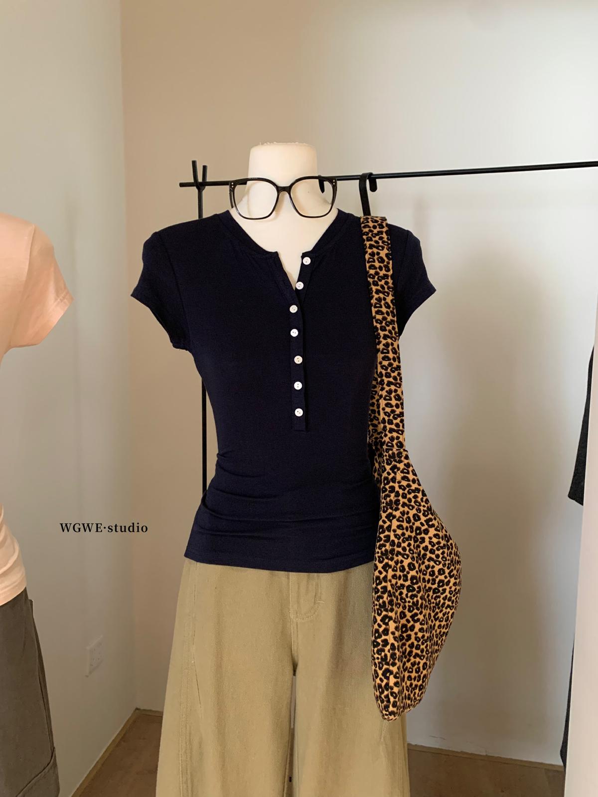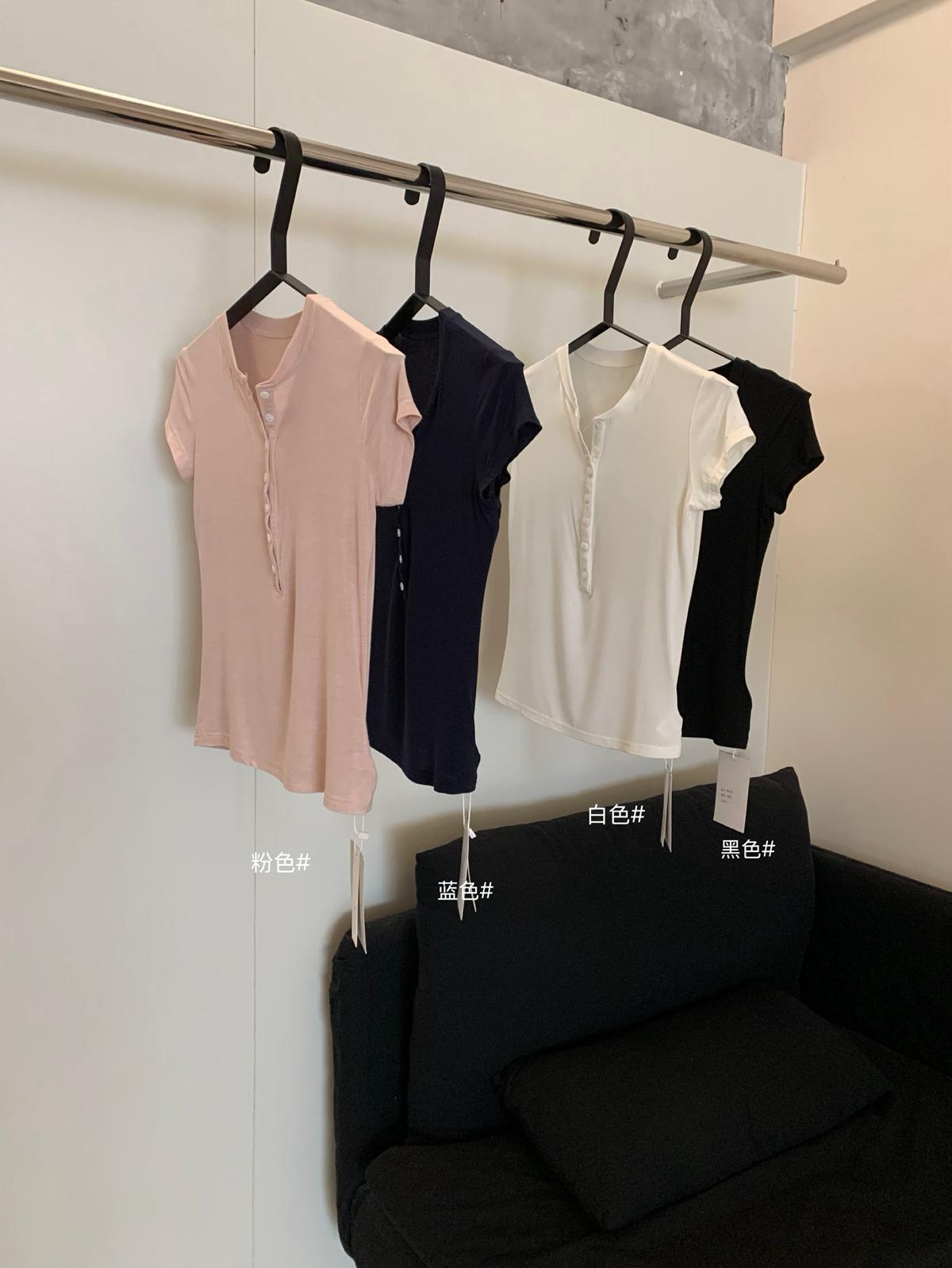 【C6360】鈕釦修身顯瘦短袖T恤亨利領上衣短袖T恤
