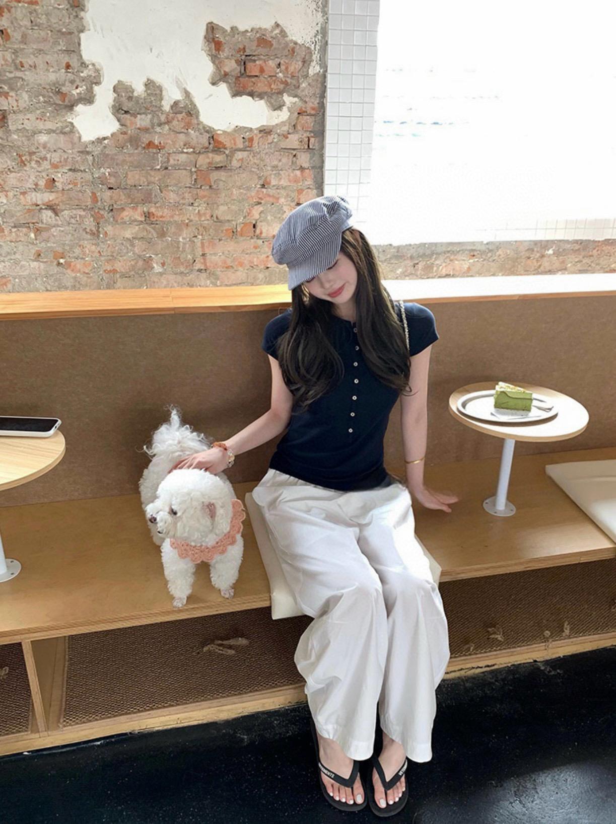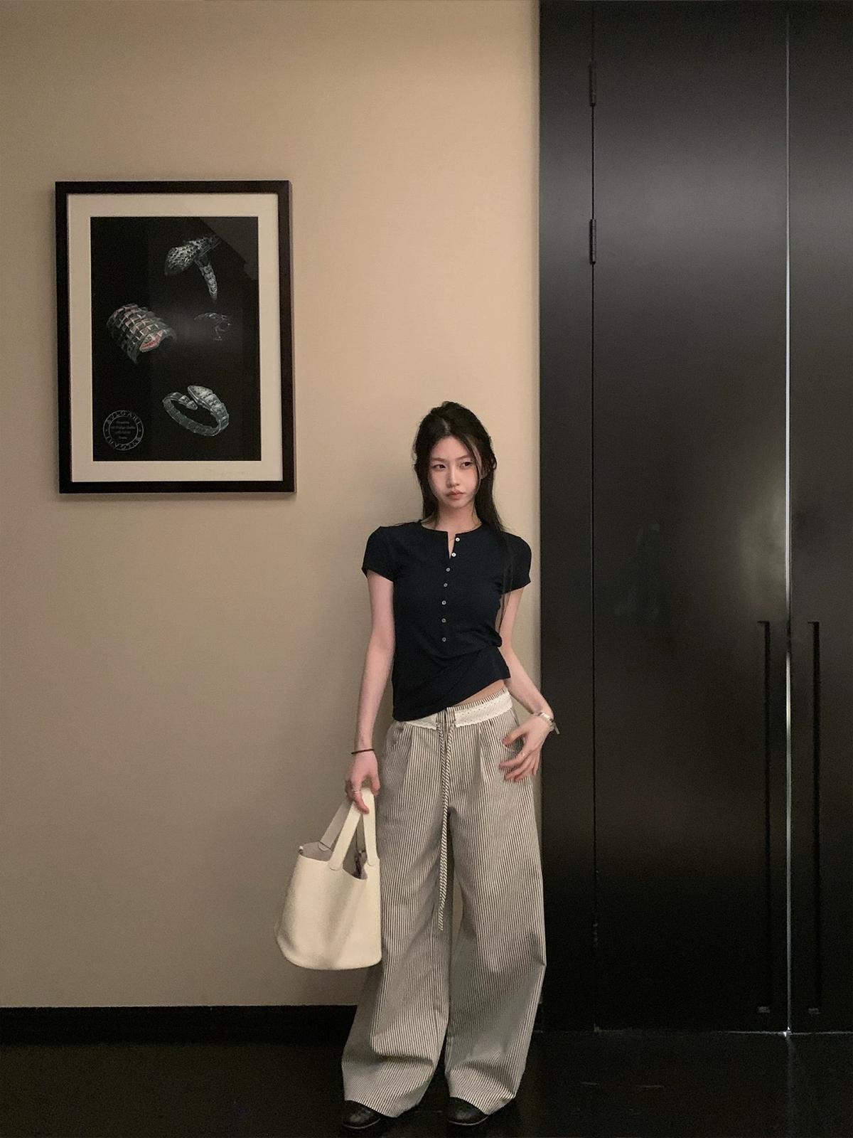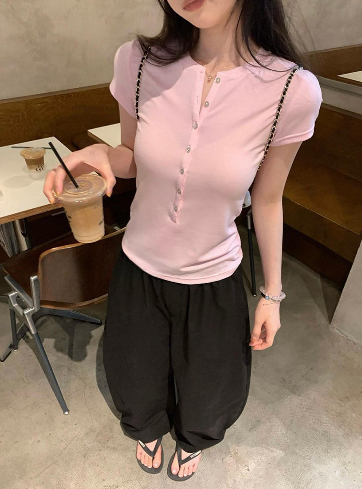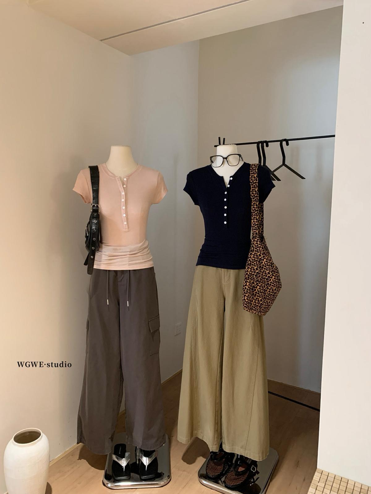 【C6360】鈕釦修身顯瘦短袖T恤亨利領上衣短袖T恤