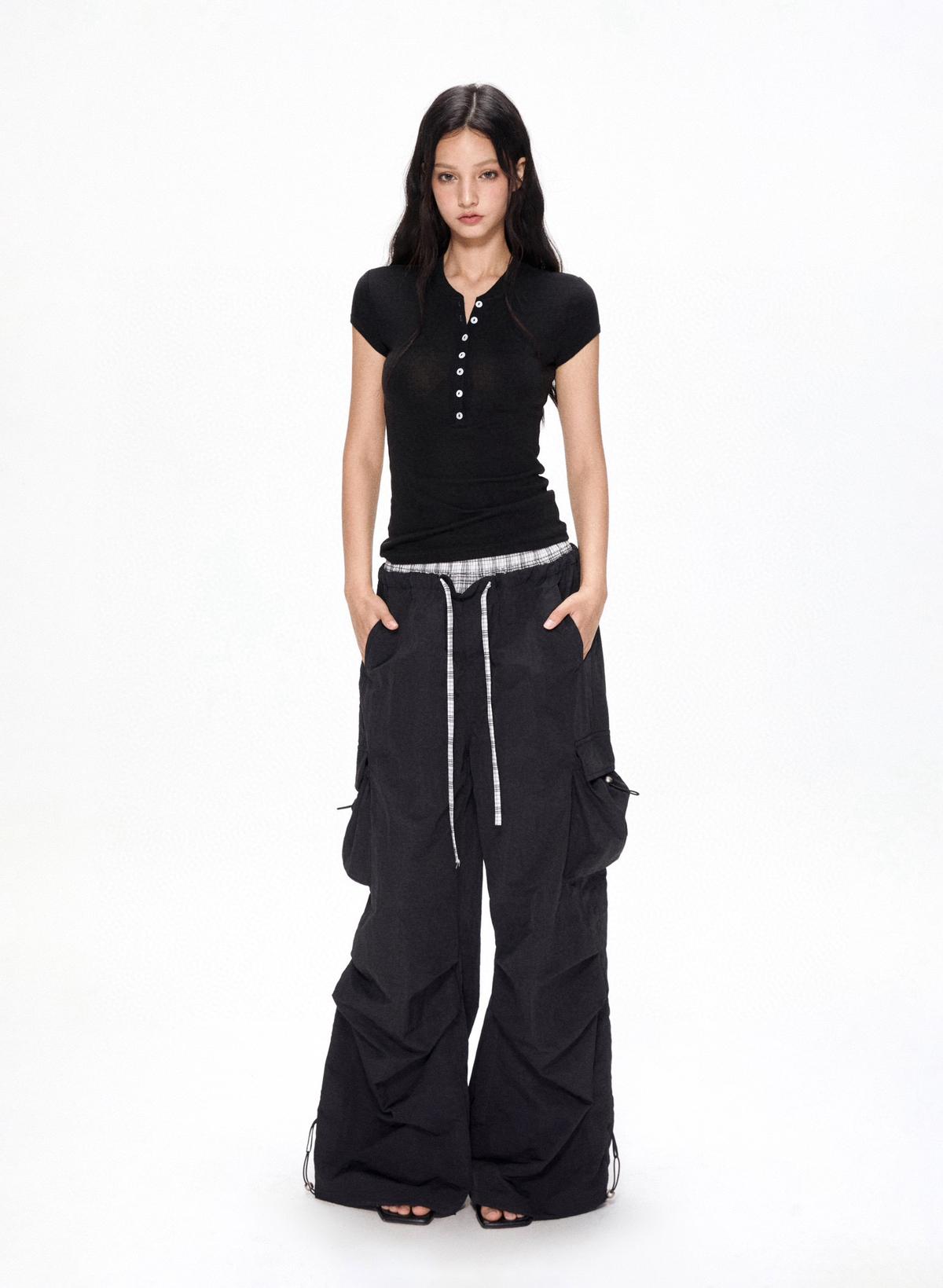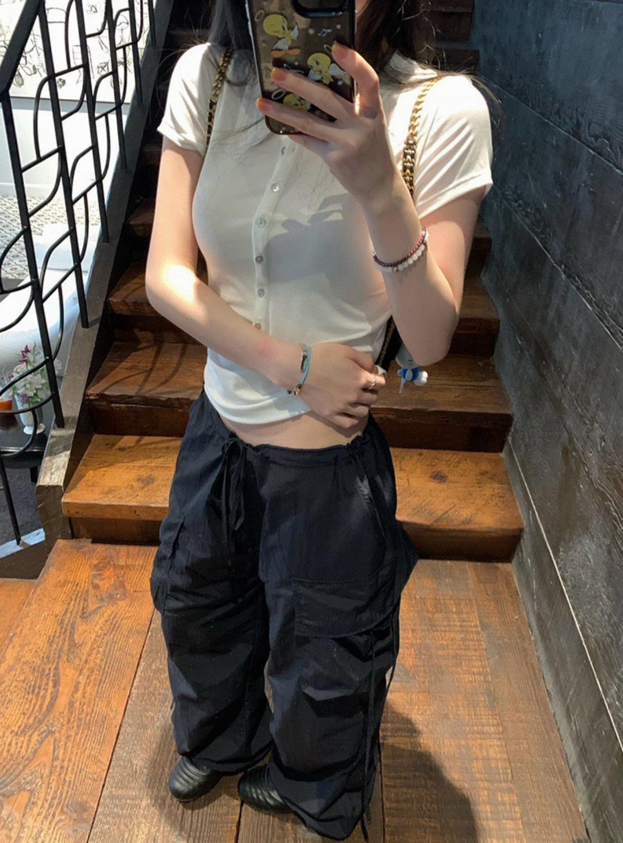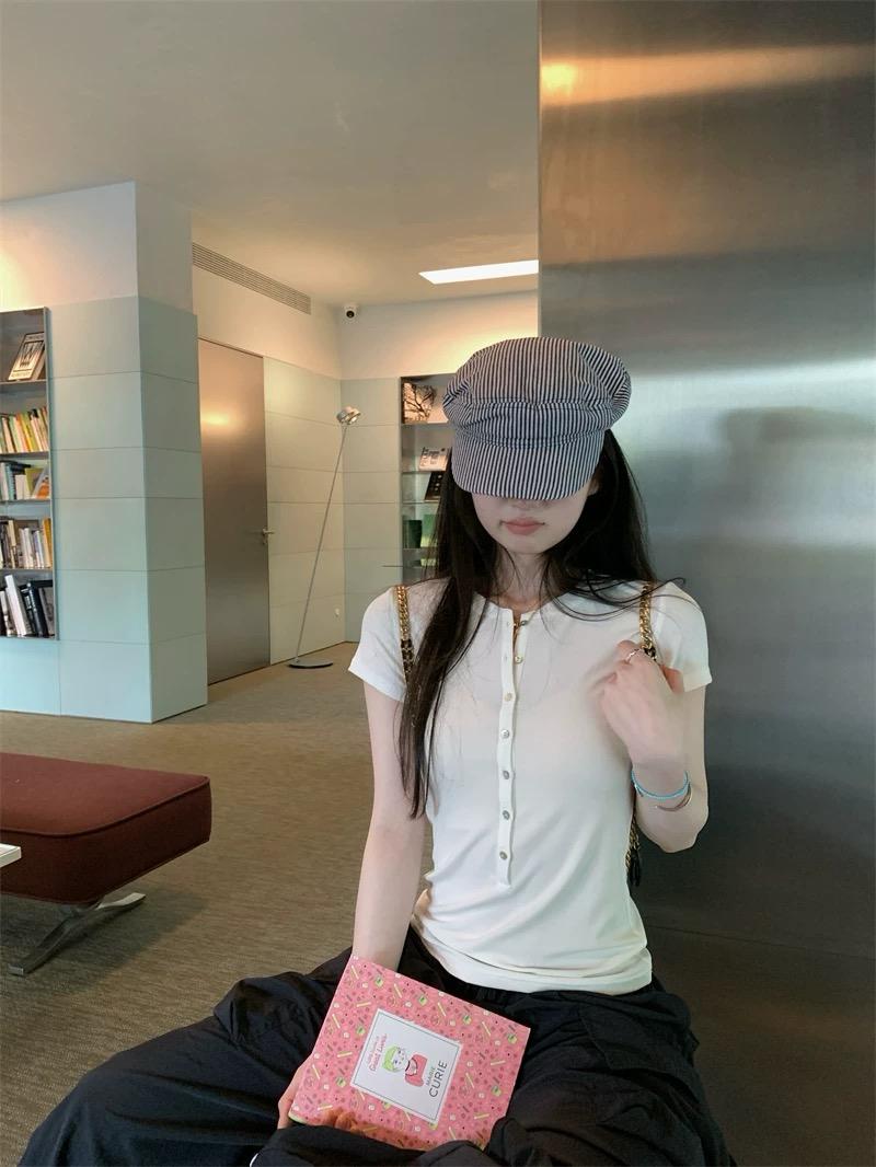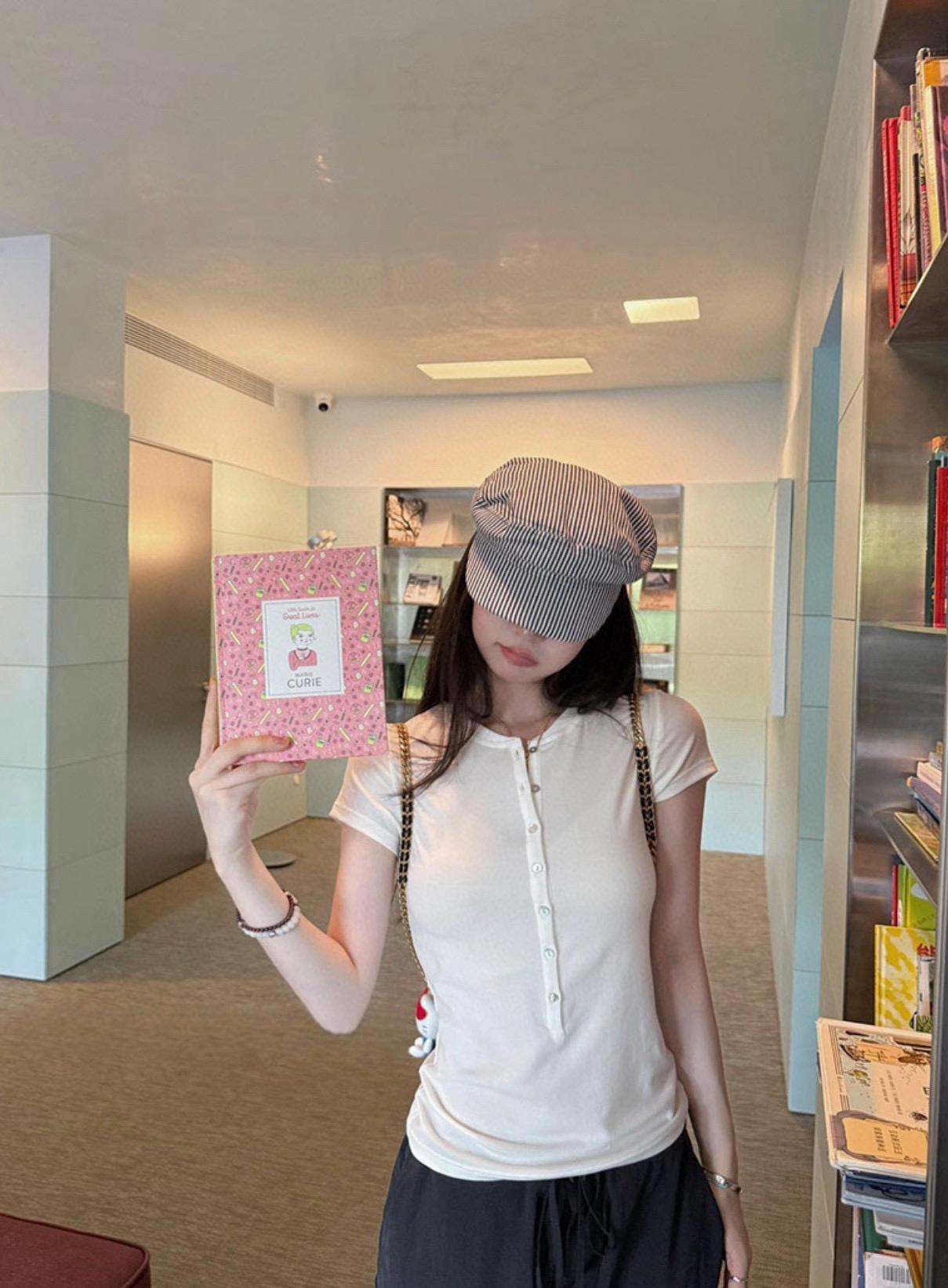 【C6360】鈕釦修身顯瘦短袖T恤亨利領上衣短袖T恤