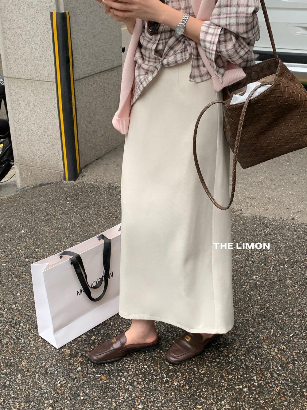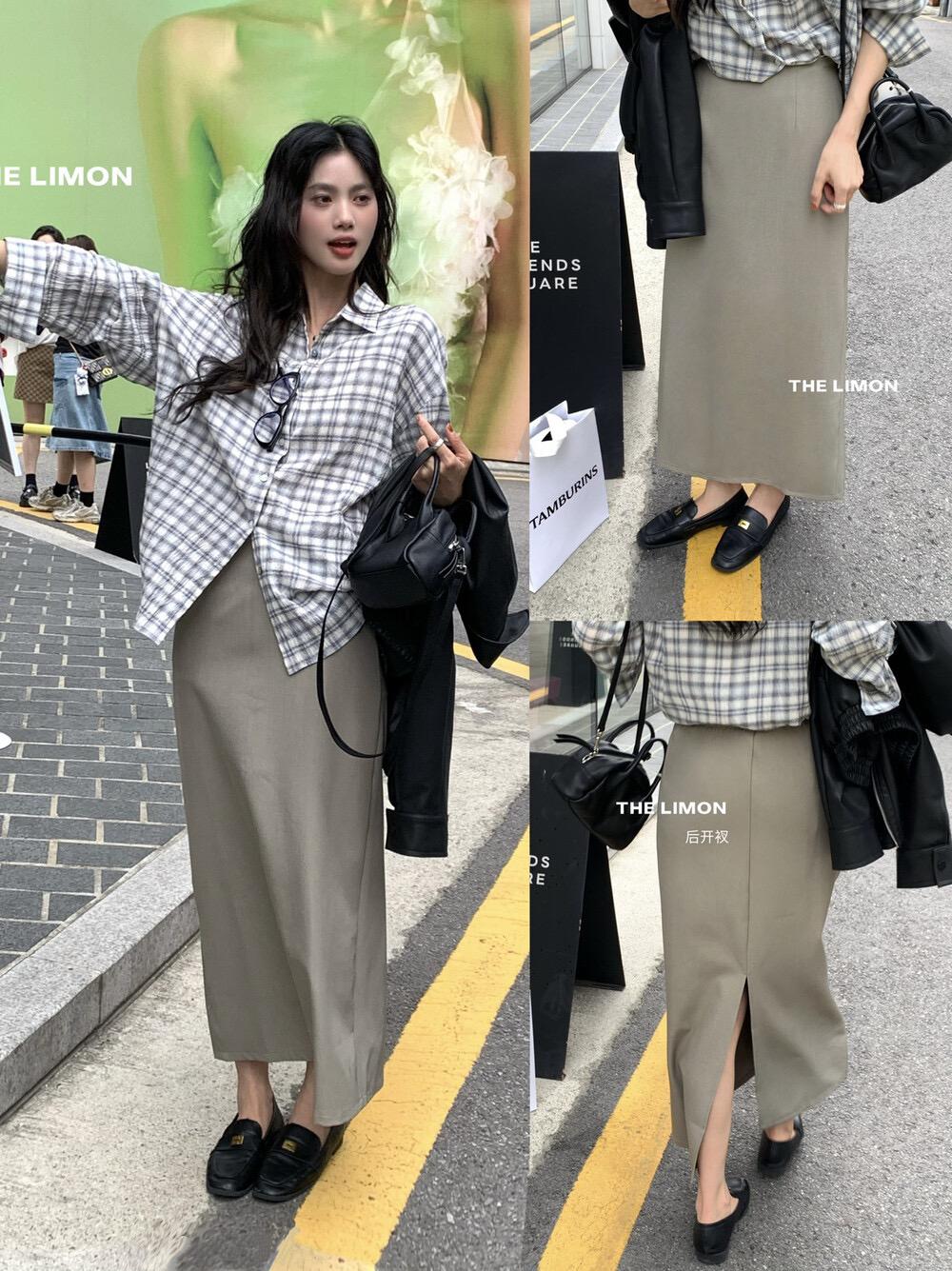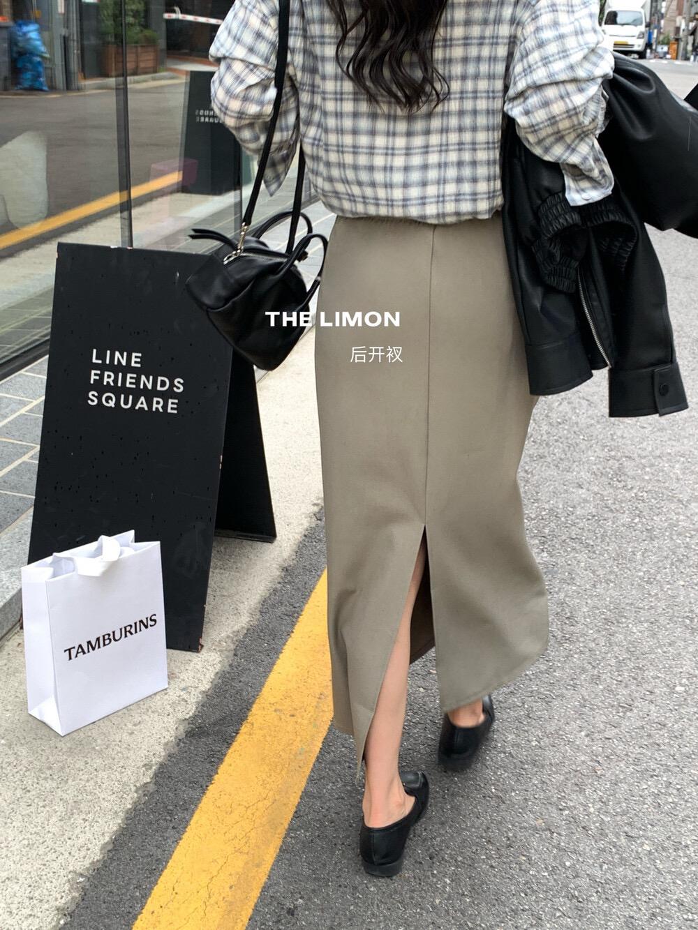 【C7546】簡約通勤顯瘦後開衩長款西裝半身裙