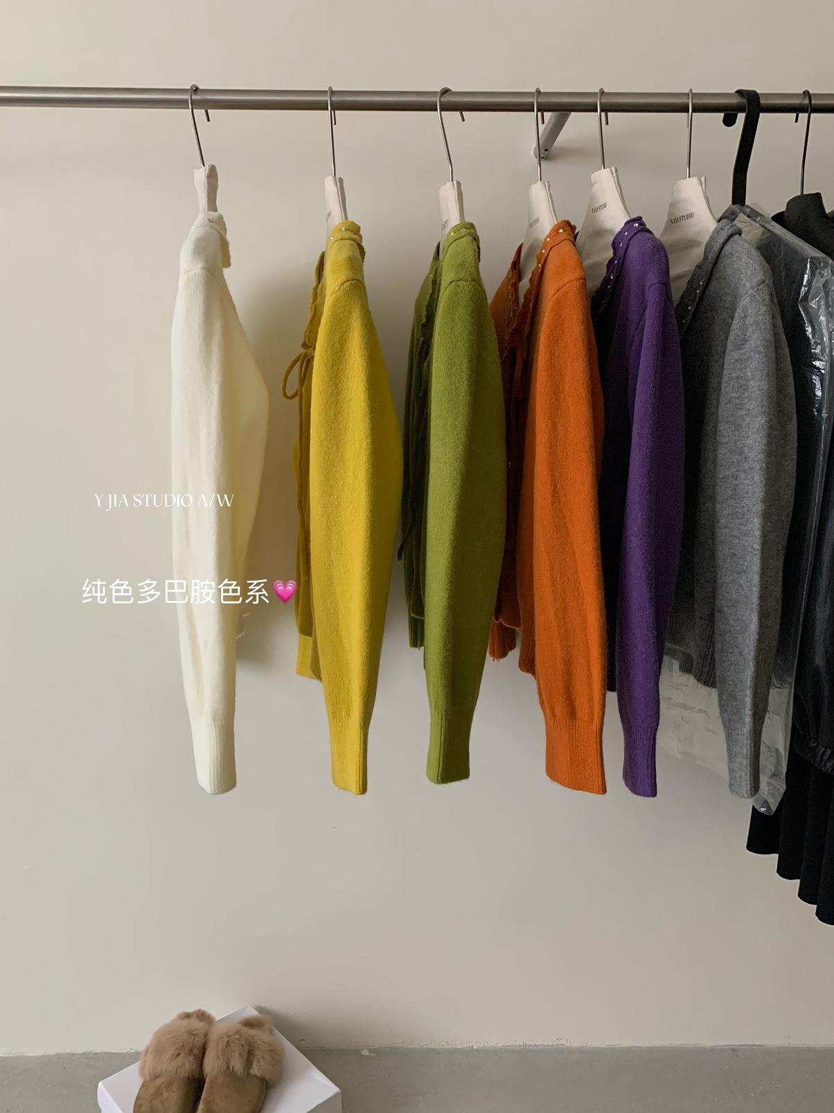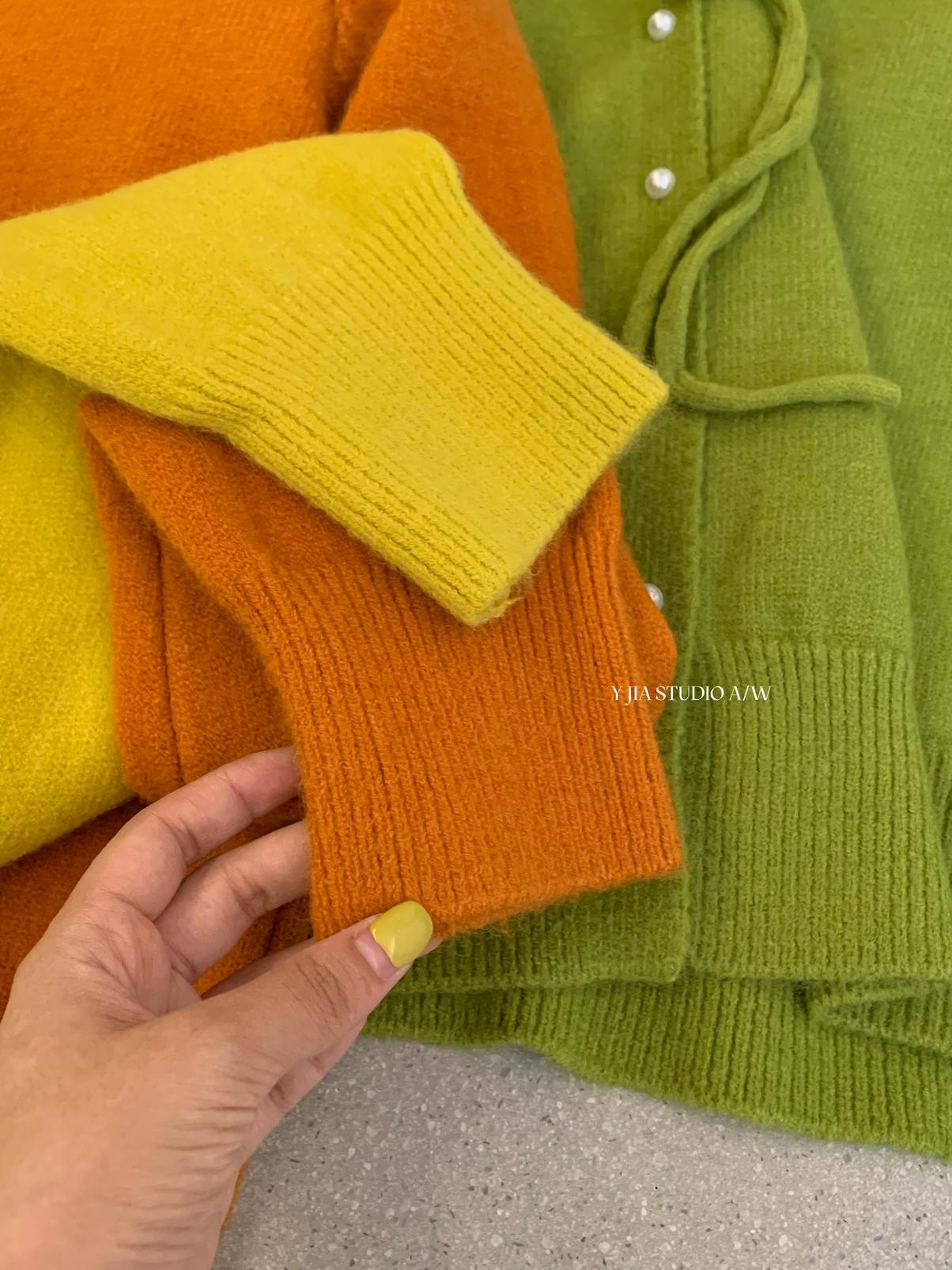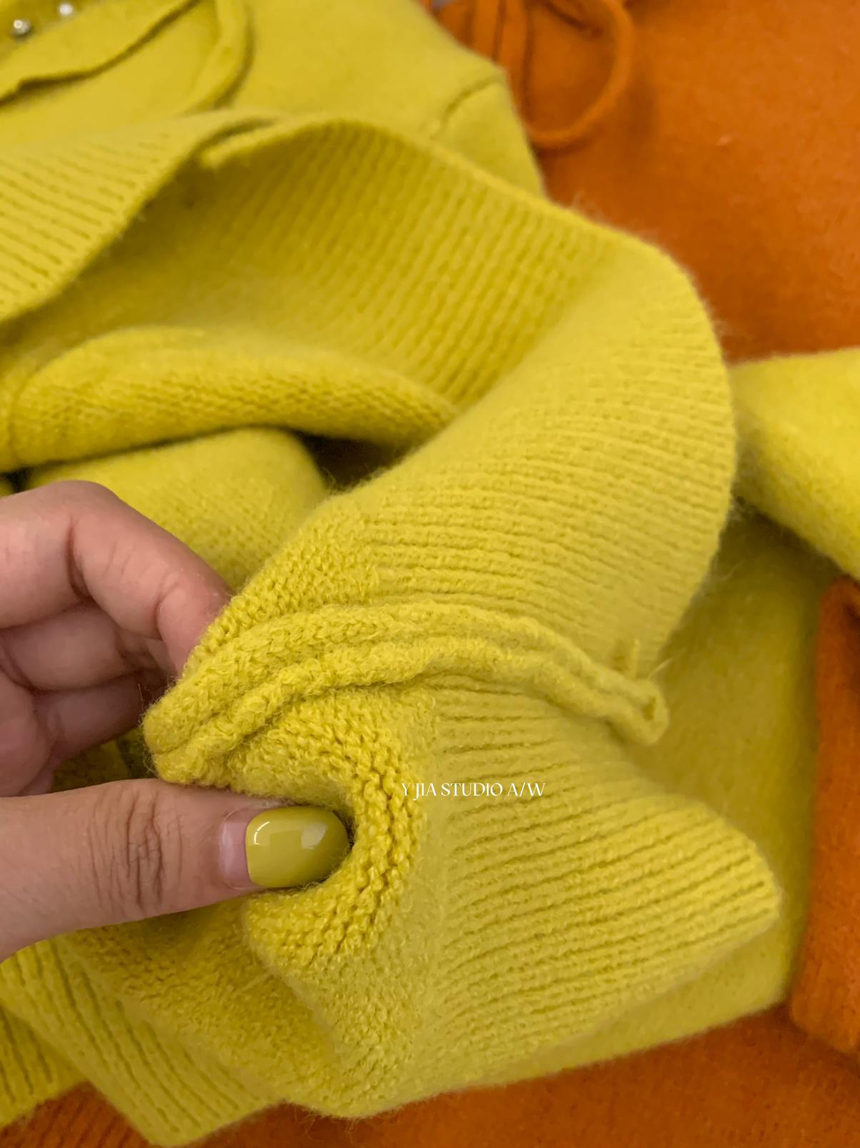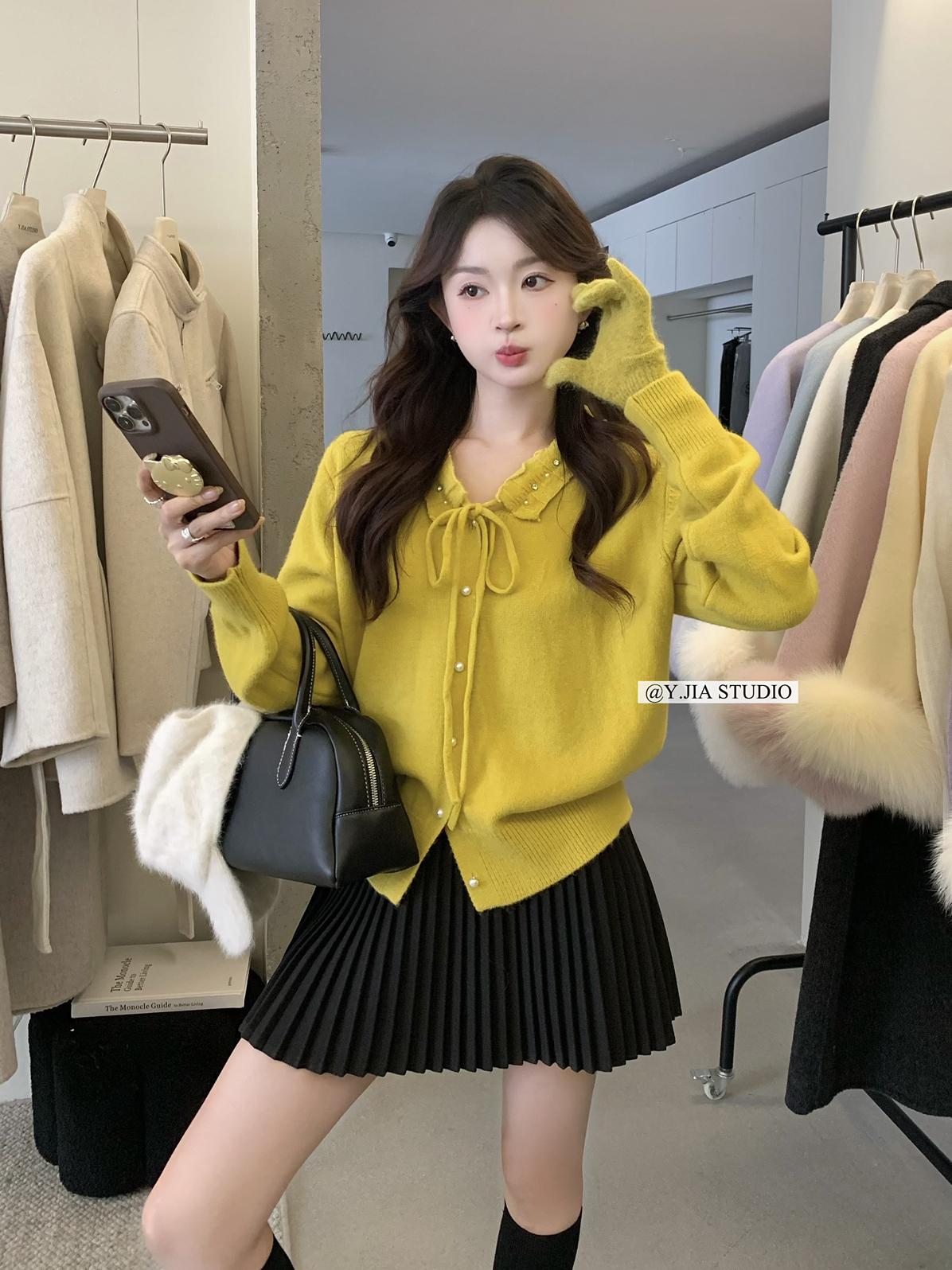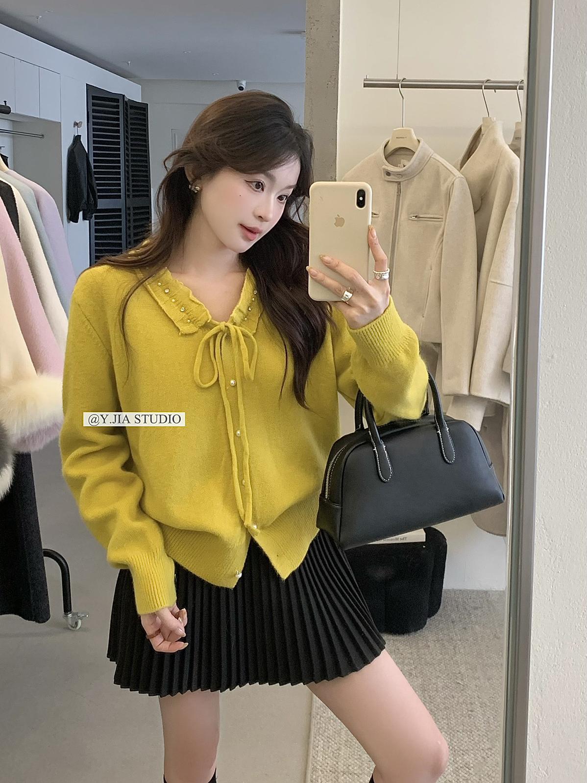 【C7785】精緻氣質V領花邊釘珠針織開衫保暖毛衣