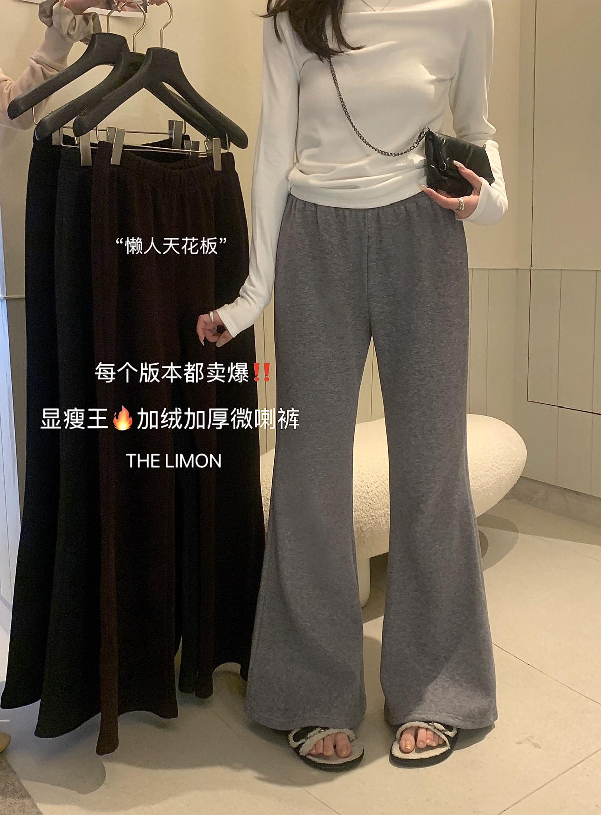 【C7788】秒變大長腿!高腰顯瘦微喇加絨休閒褲