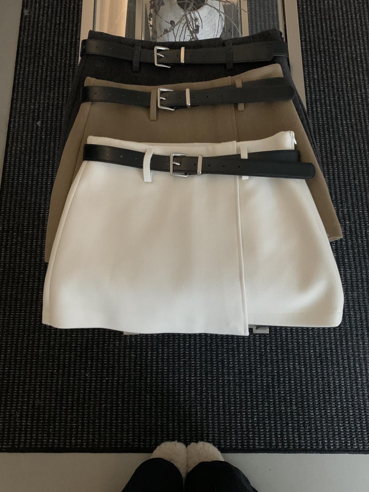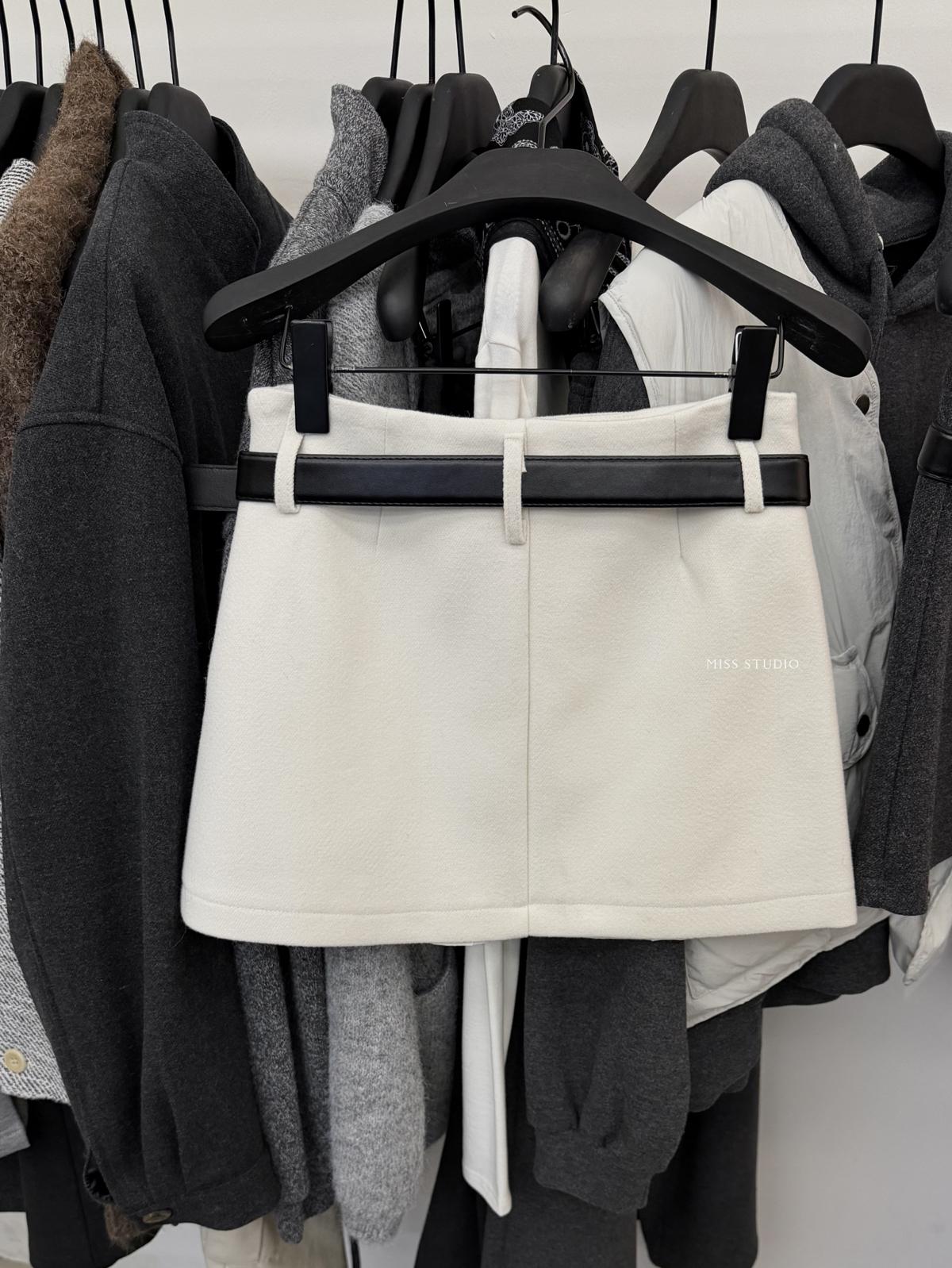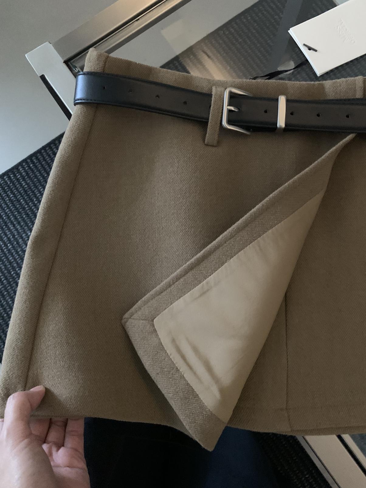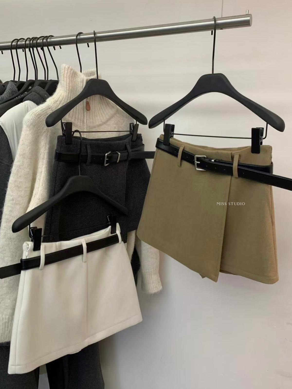 【C7792】精緻時髦巨顯腿長拉長比例!毛呢厚實短款半身裙(配皮帶)(含10%羊毛)