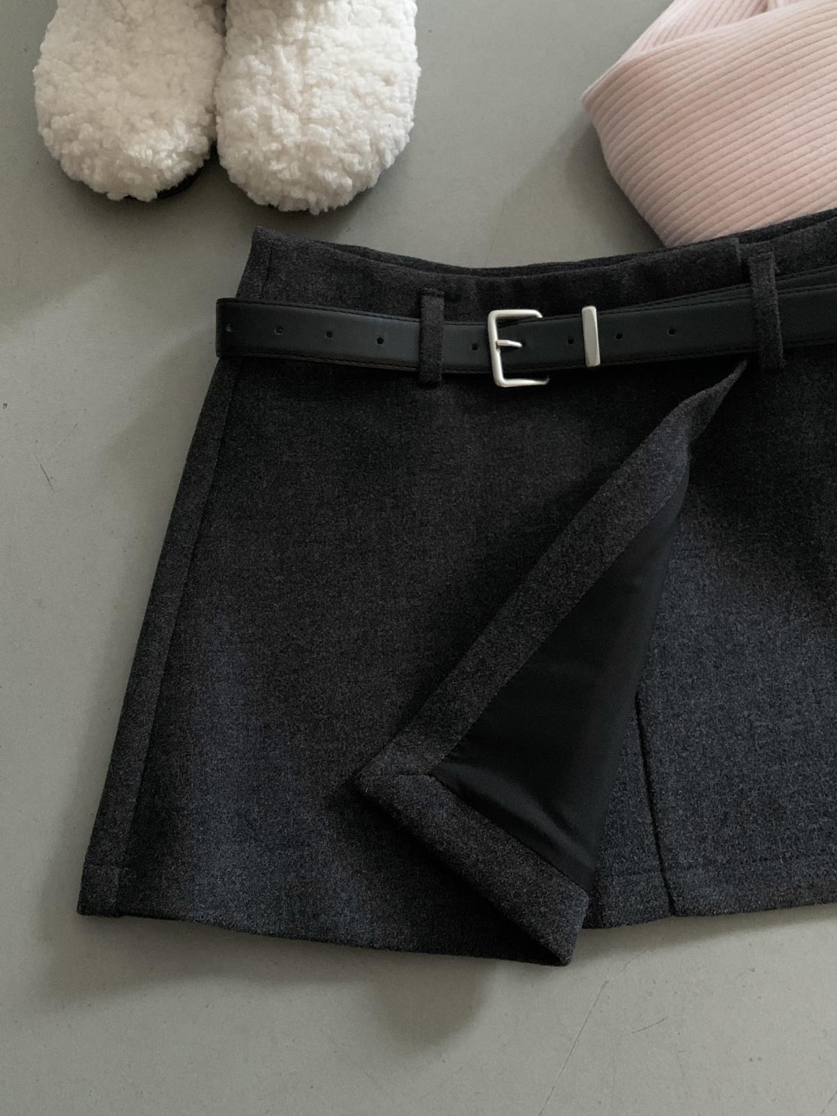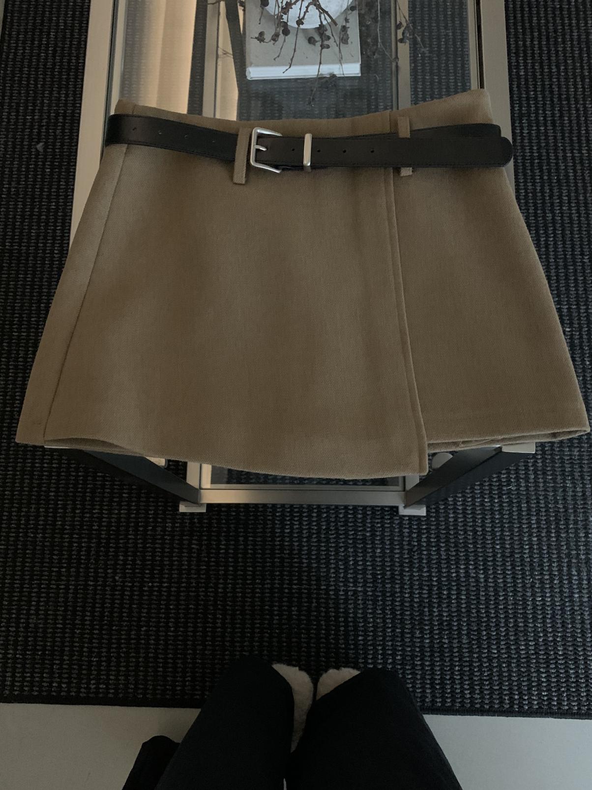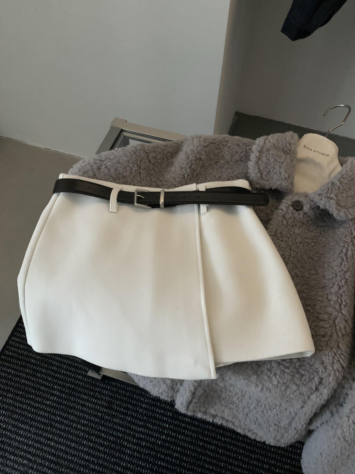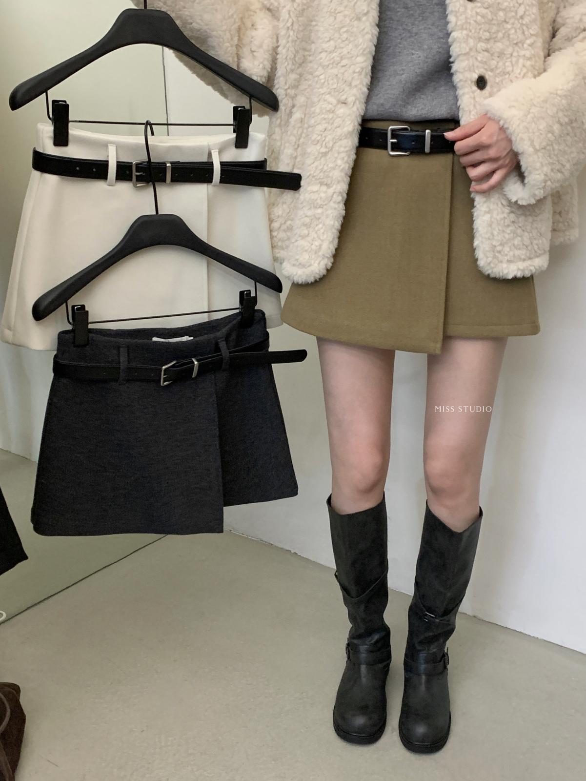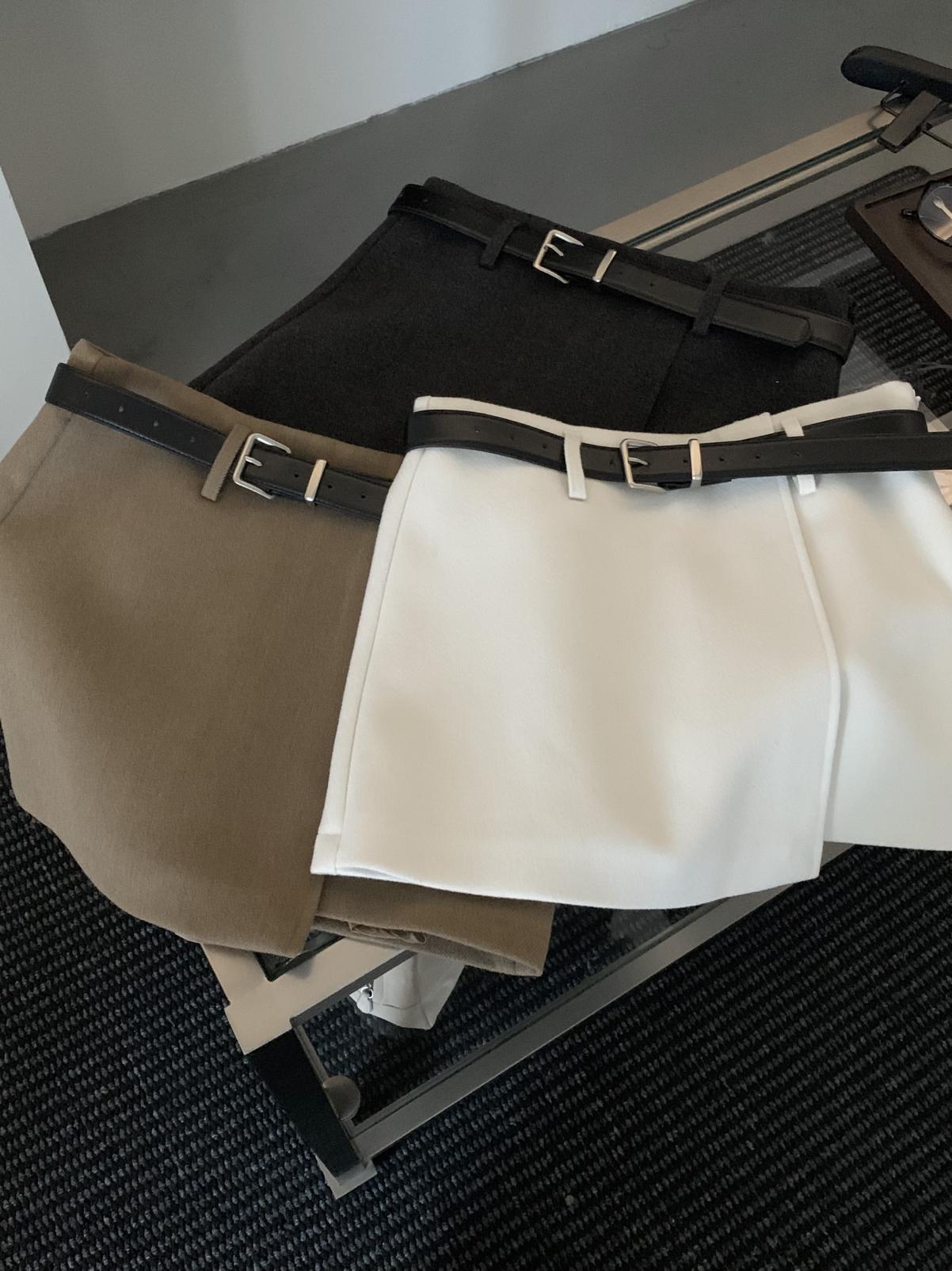 【C7792】精緻時髦巨顯腿長拉長比例!毛呢厚實短款半身裙(配皮帶)(含10%羊毛)
