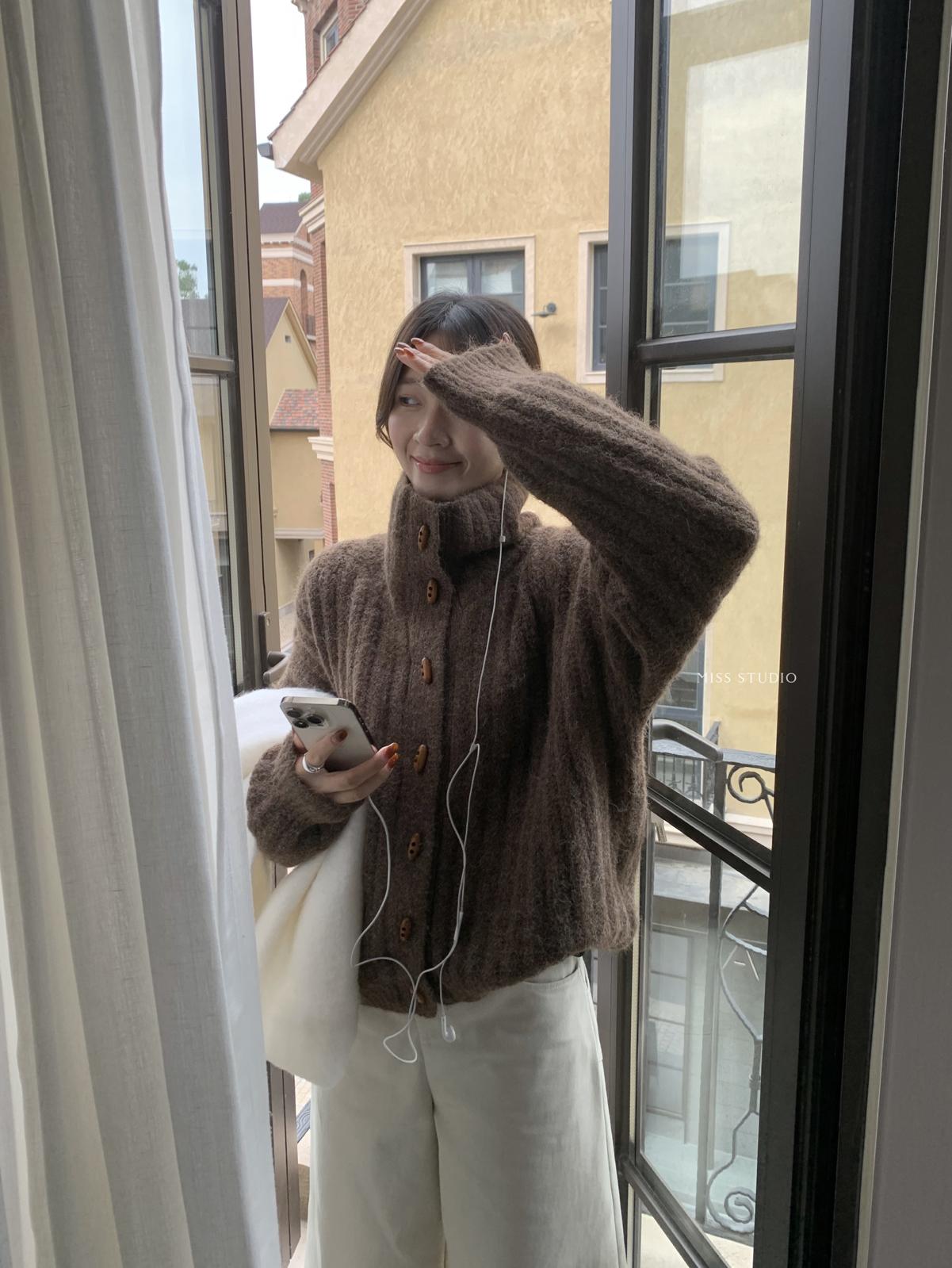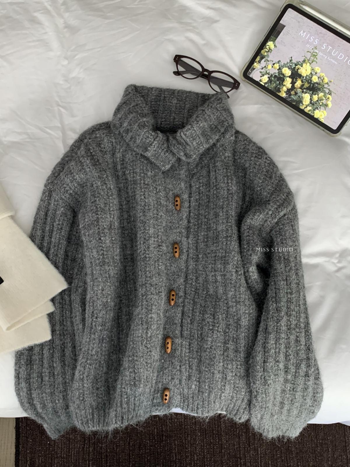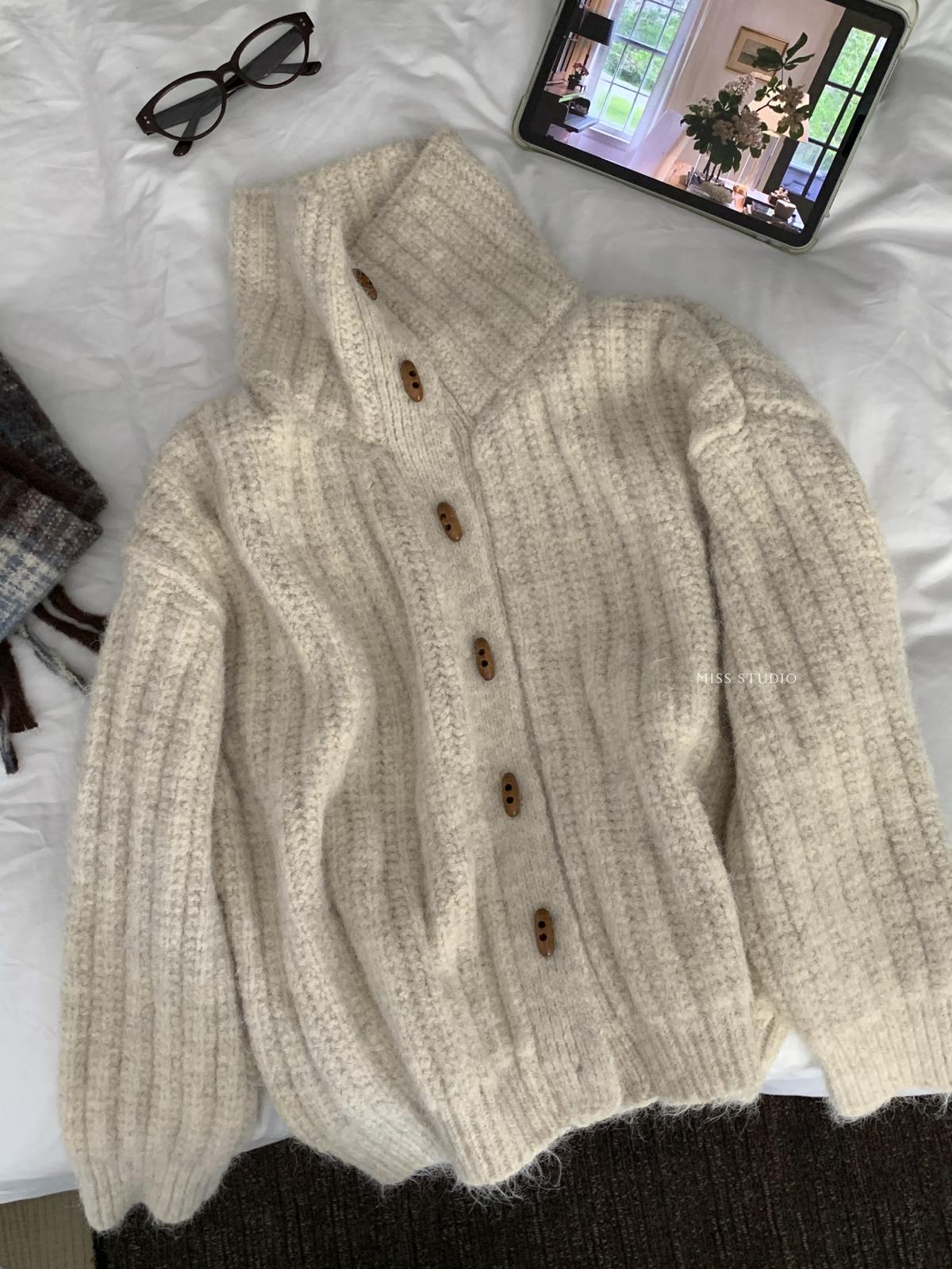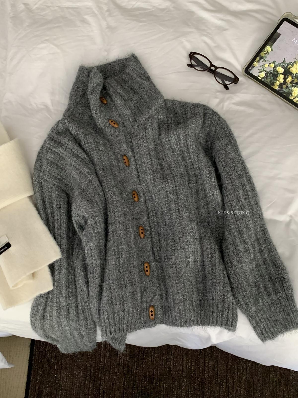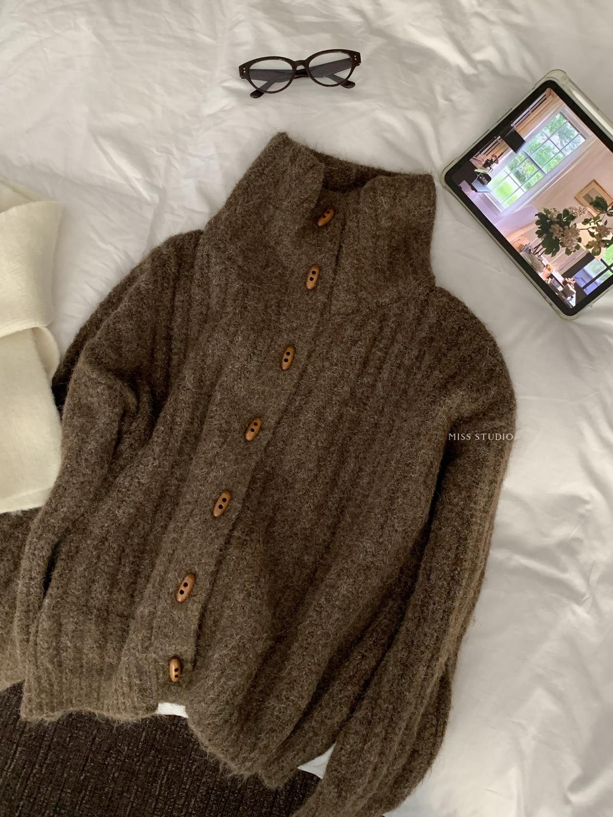 【C7795】鬆弛感滿滿~牛角扣高領暖乎乎開衫加厚保暖毛衣(含7%綿羊毛)