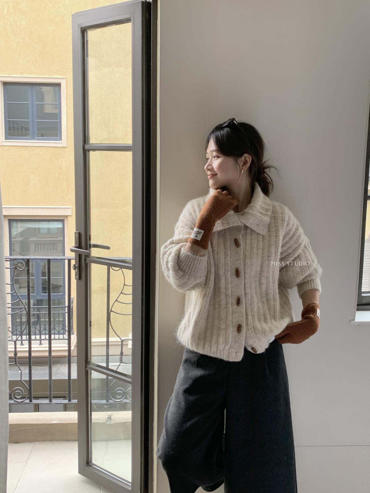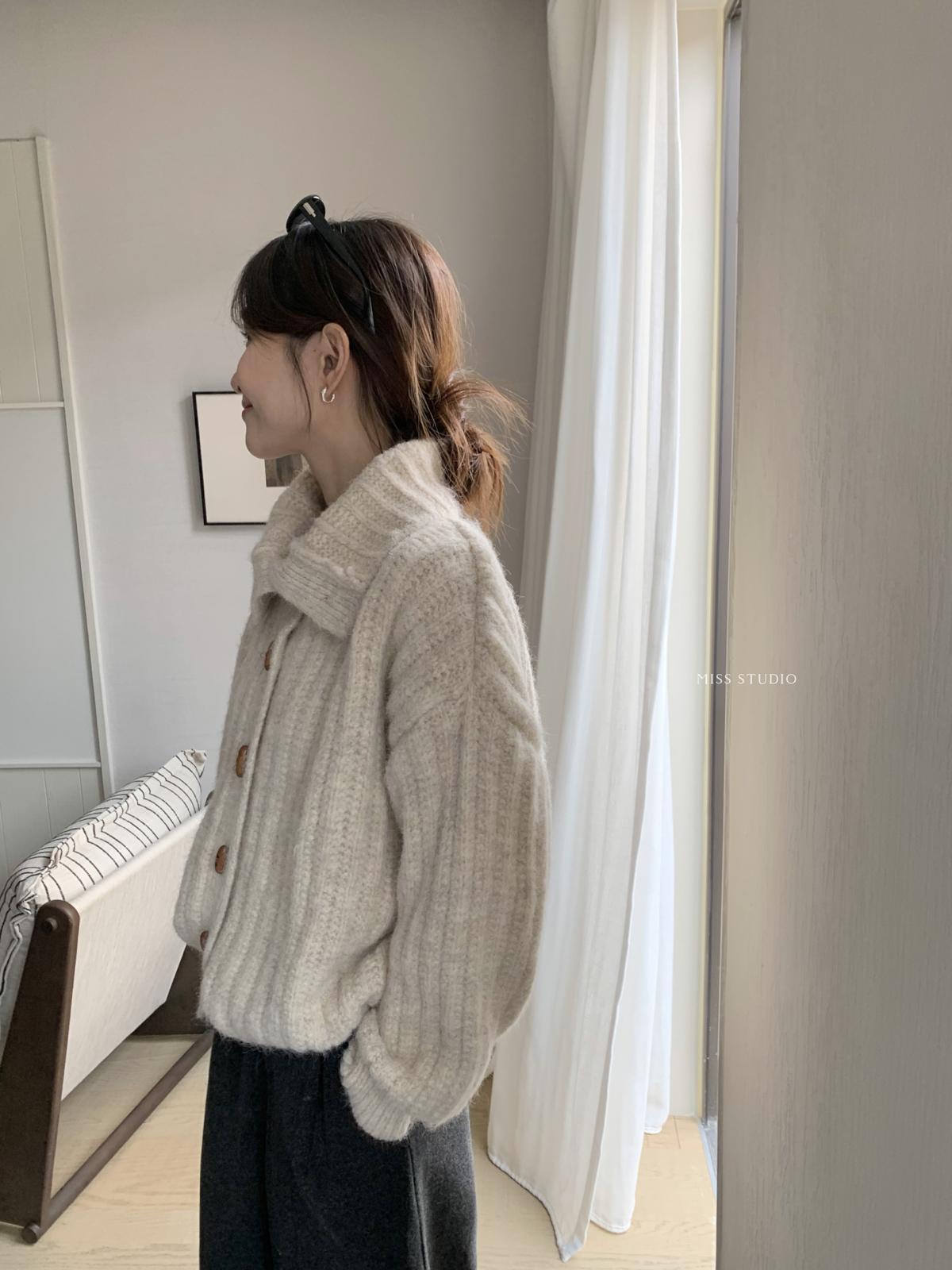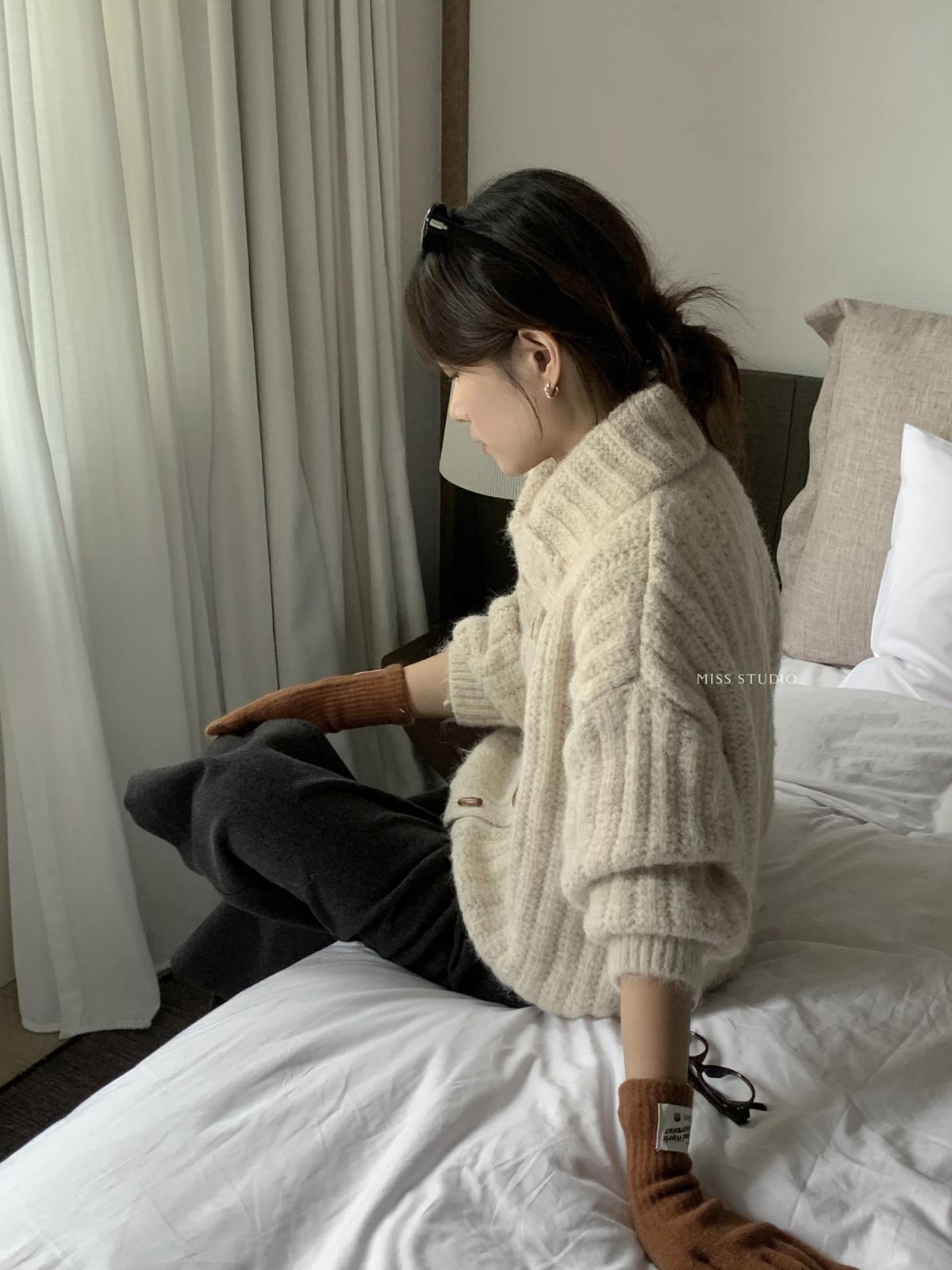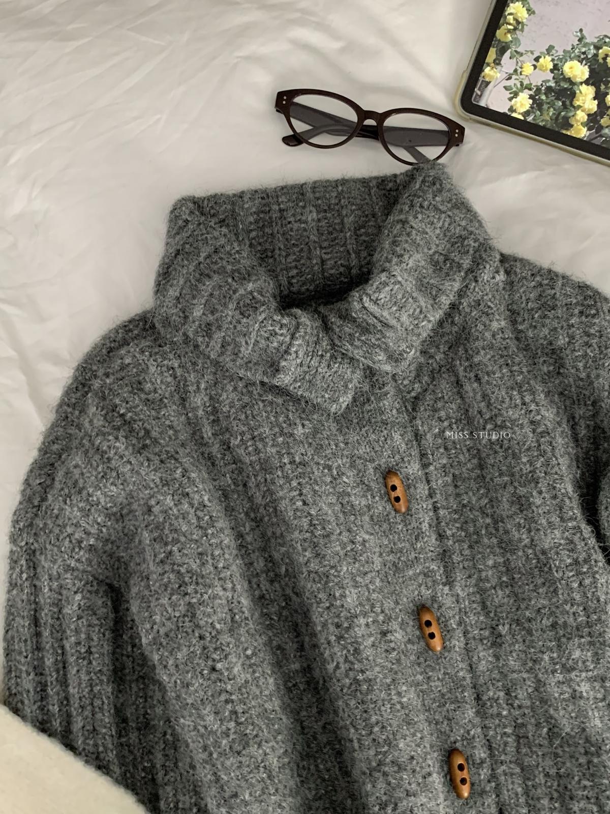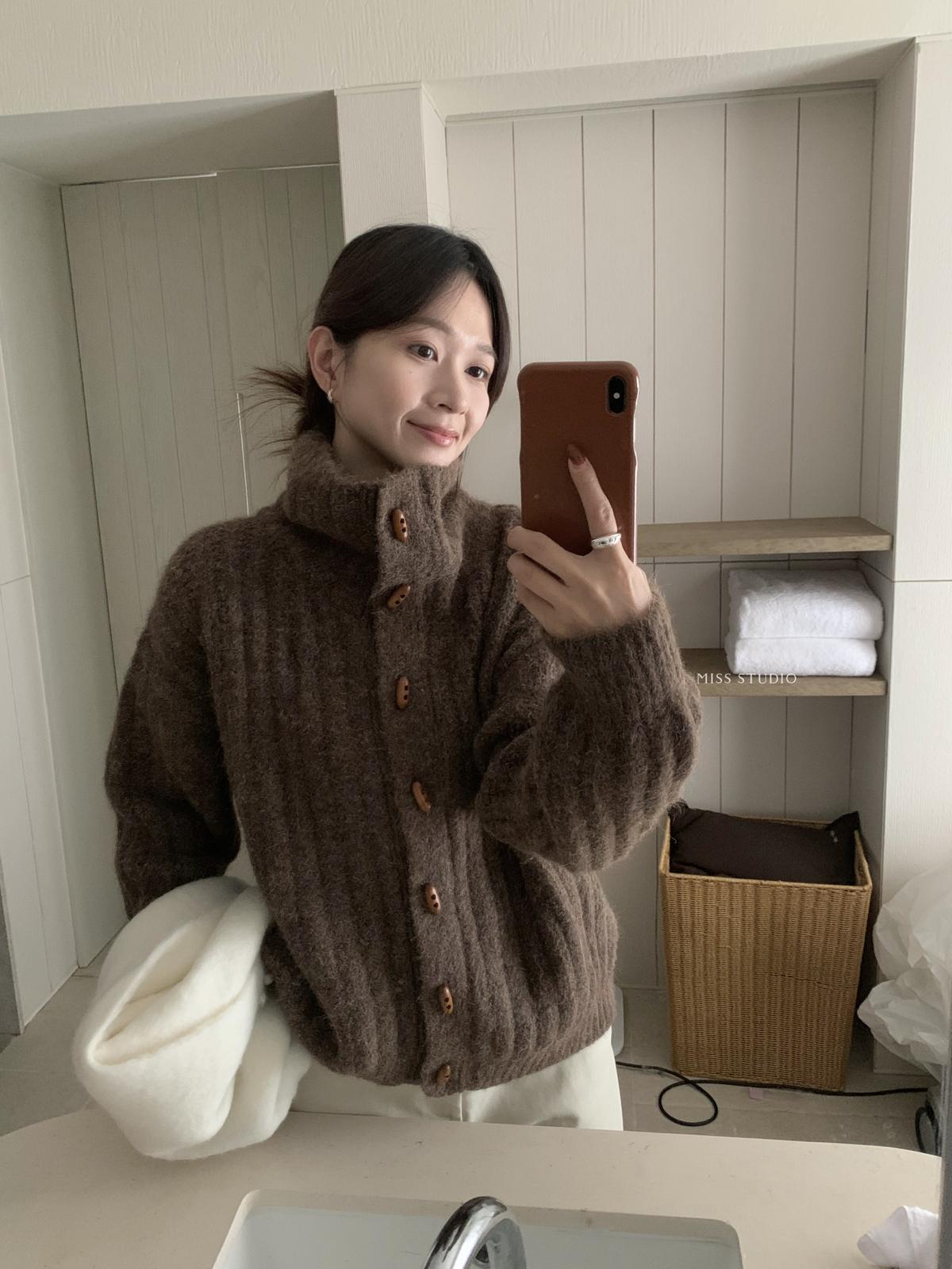 【C7795】鬆弛感滿滿~牛角扣高領暖乎乎開衫加厚保暖毛衣(含7%綿羊毛)