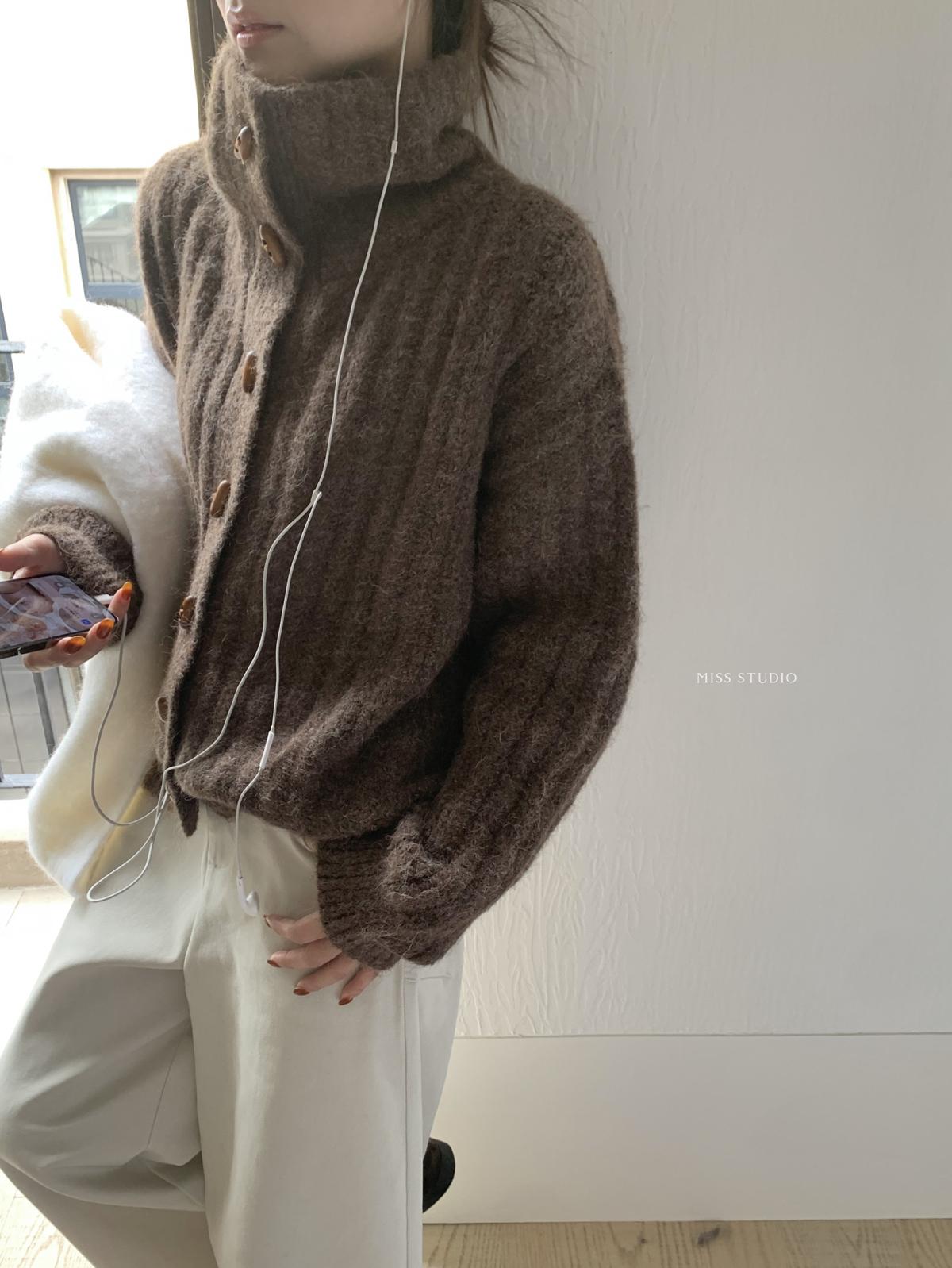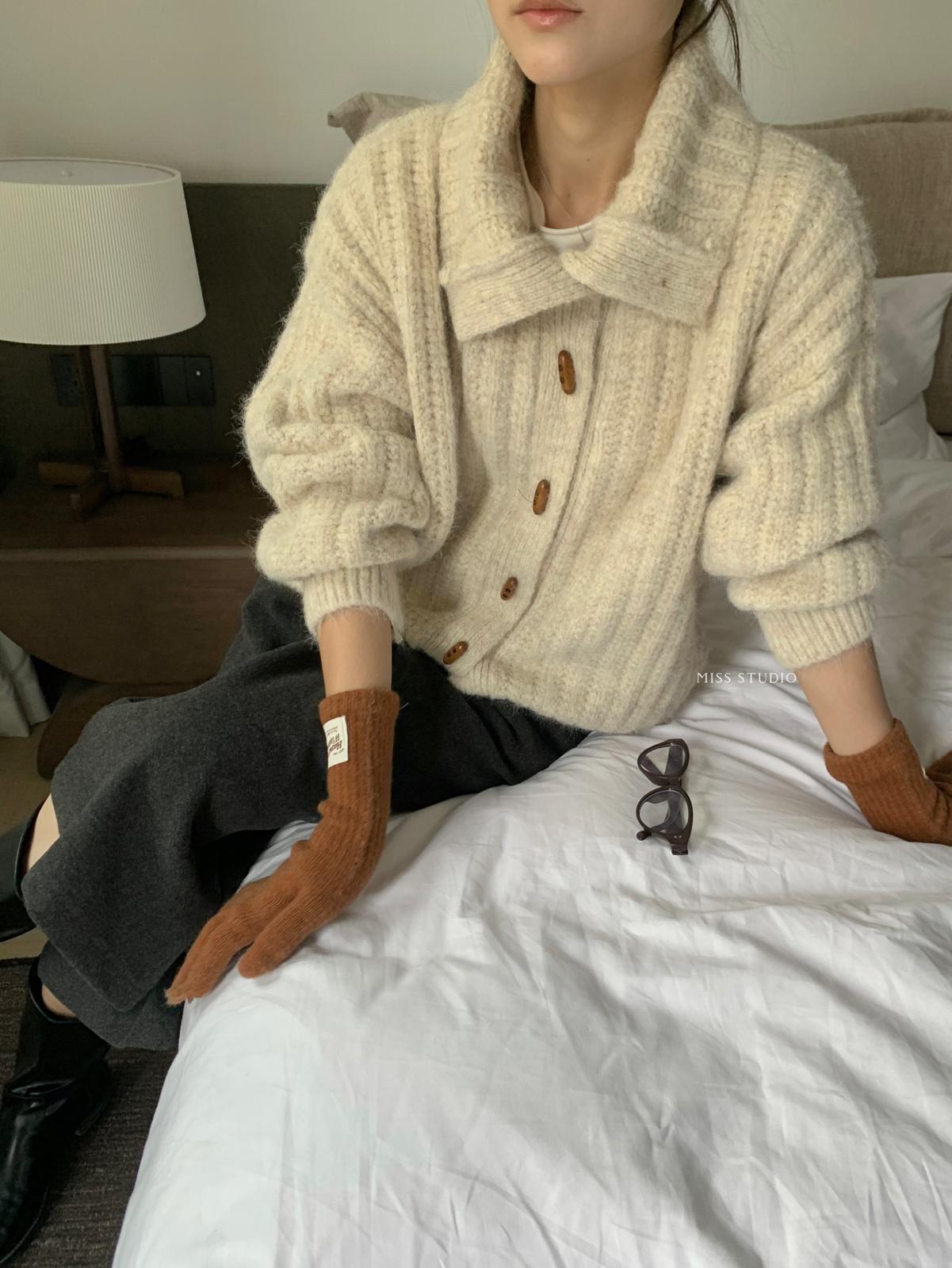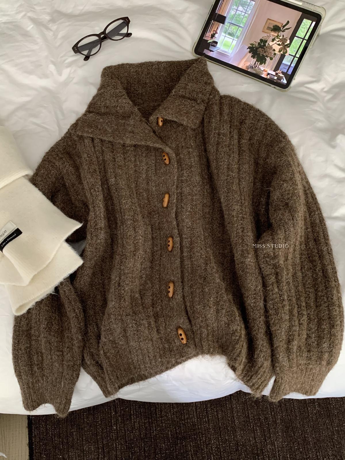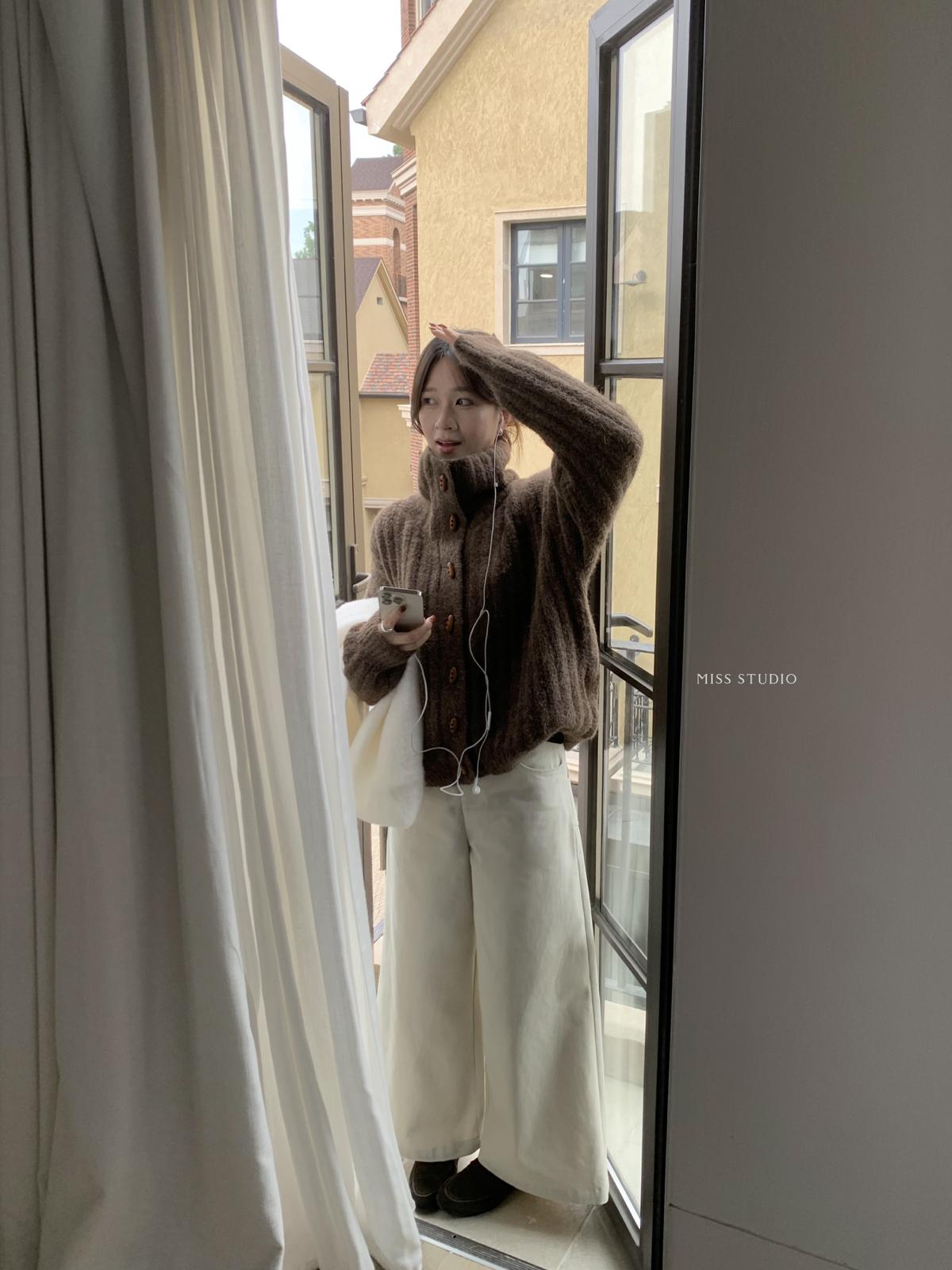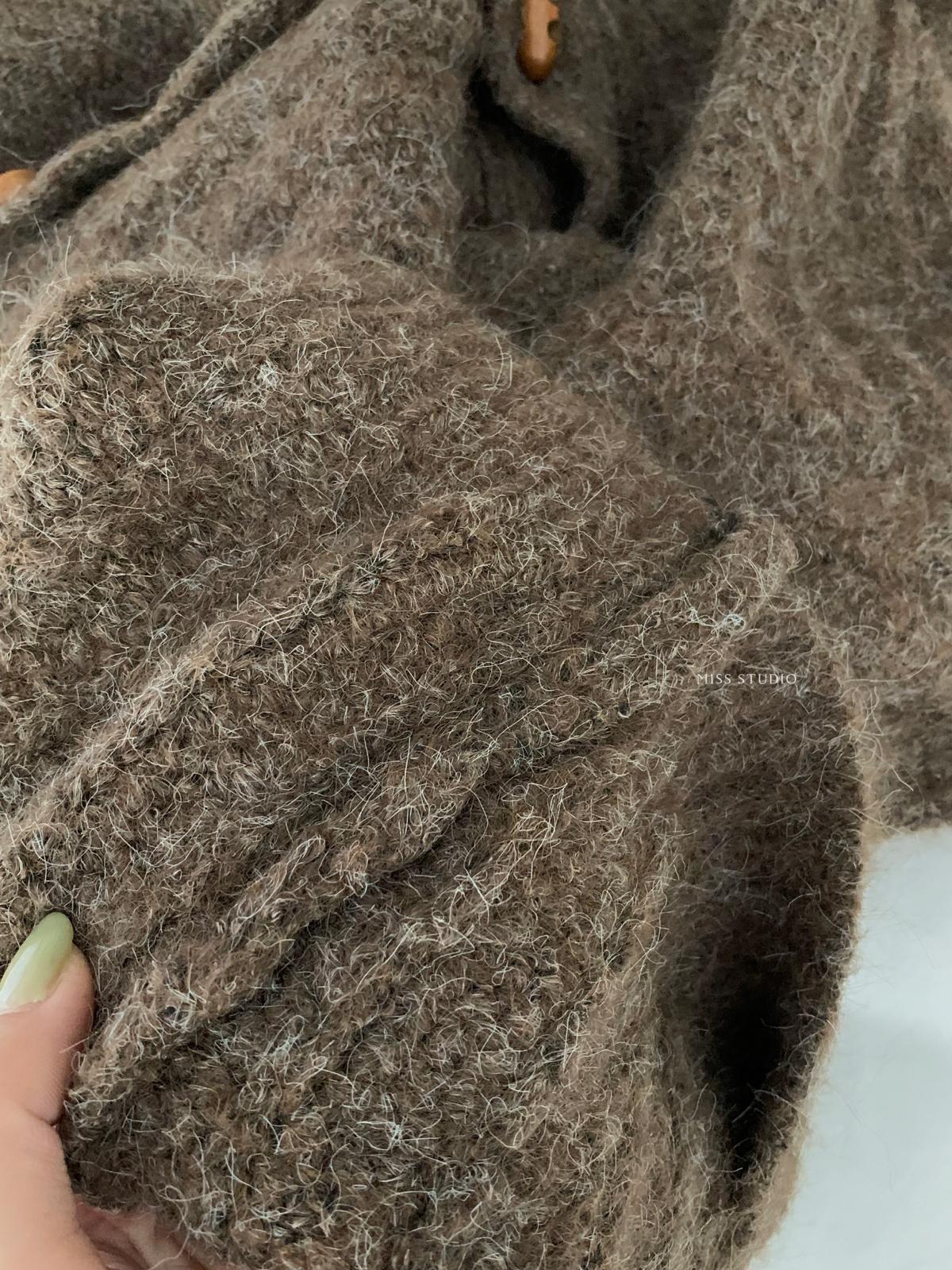 【C7795】鬆弛感滿滿~牛角扣高領暖乎乎開衫加厚保暖毛衣(含7%綿羊毛)