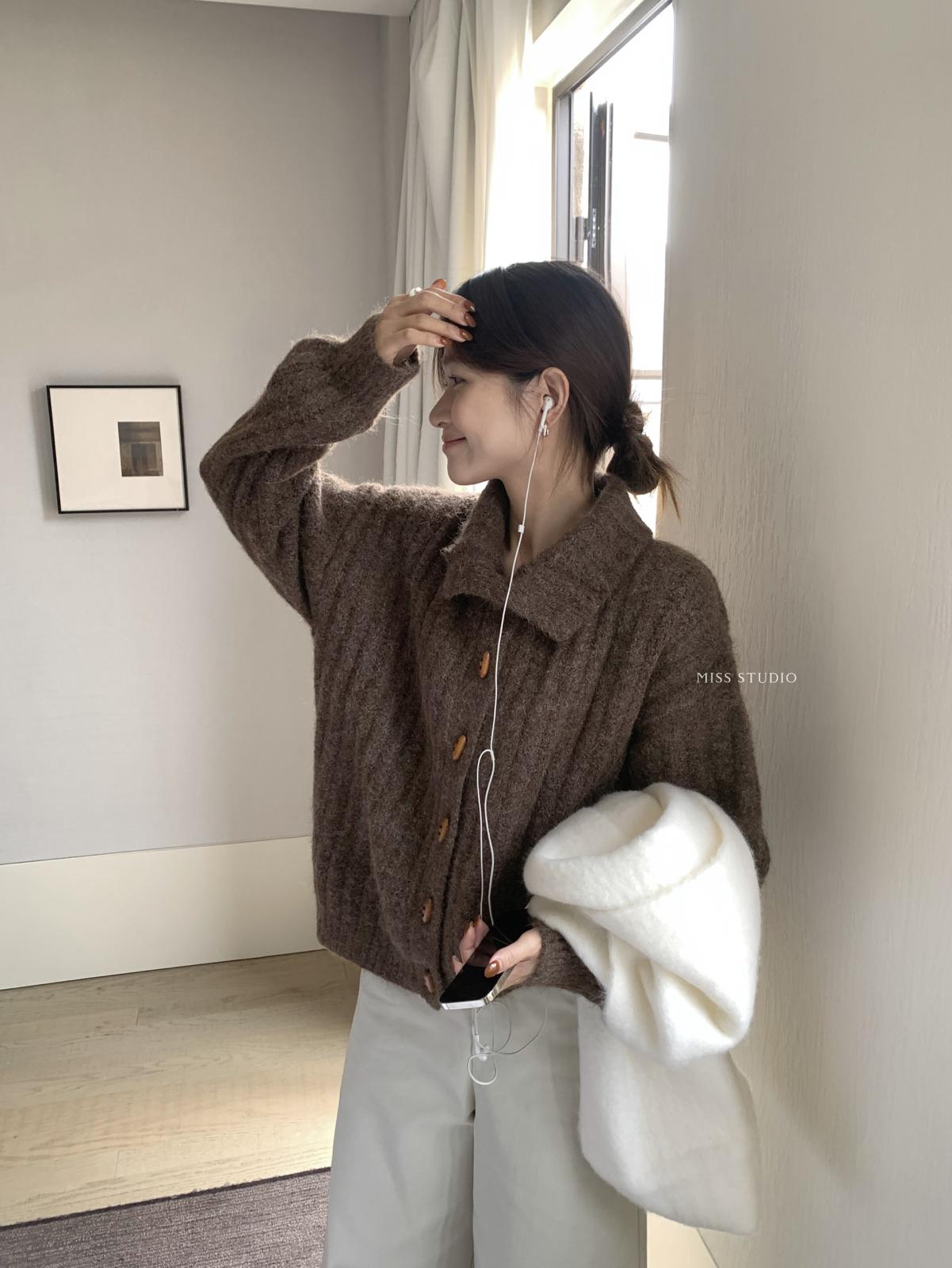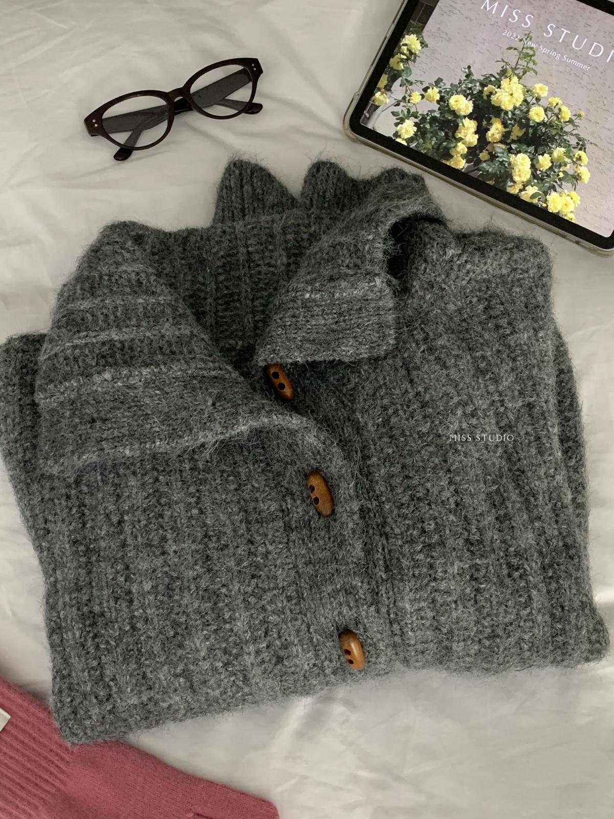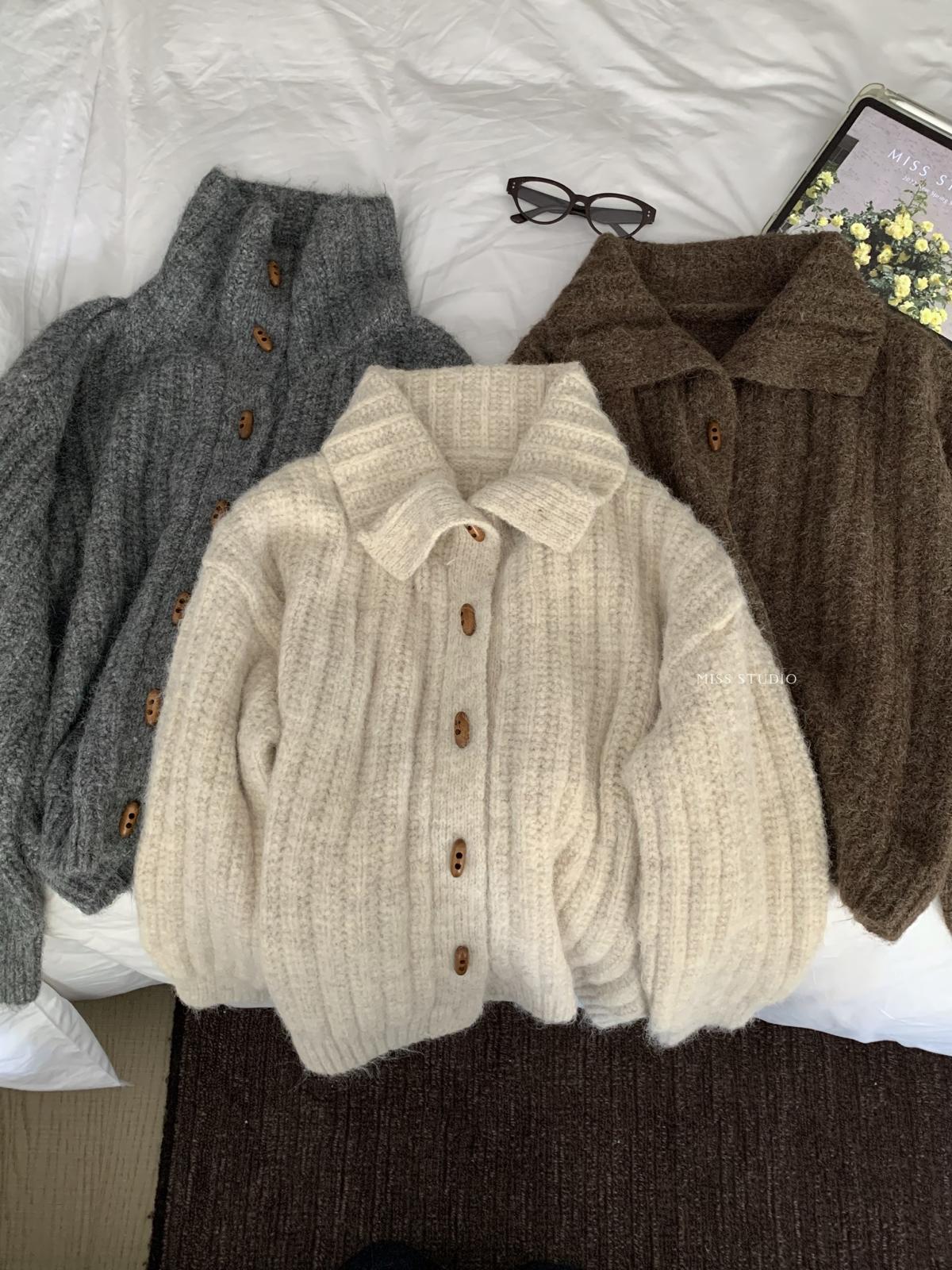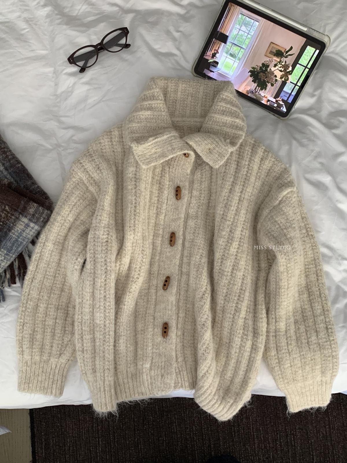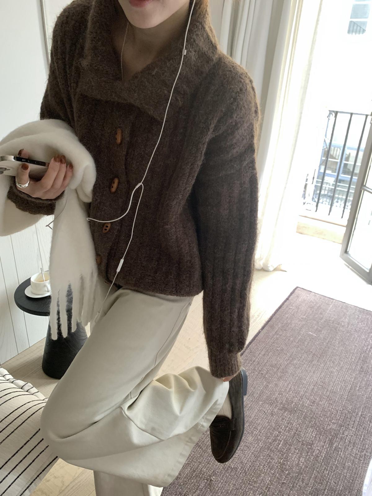 【C7795】鬆弛感滿滿~牛角扣高領暖乎乎開衫加厚保暖毛衣(含7%綿羊毛)