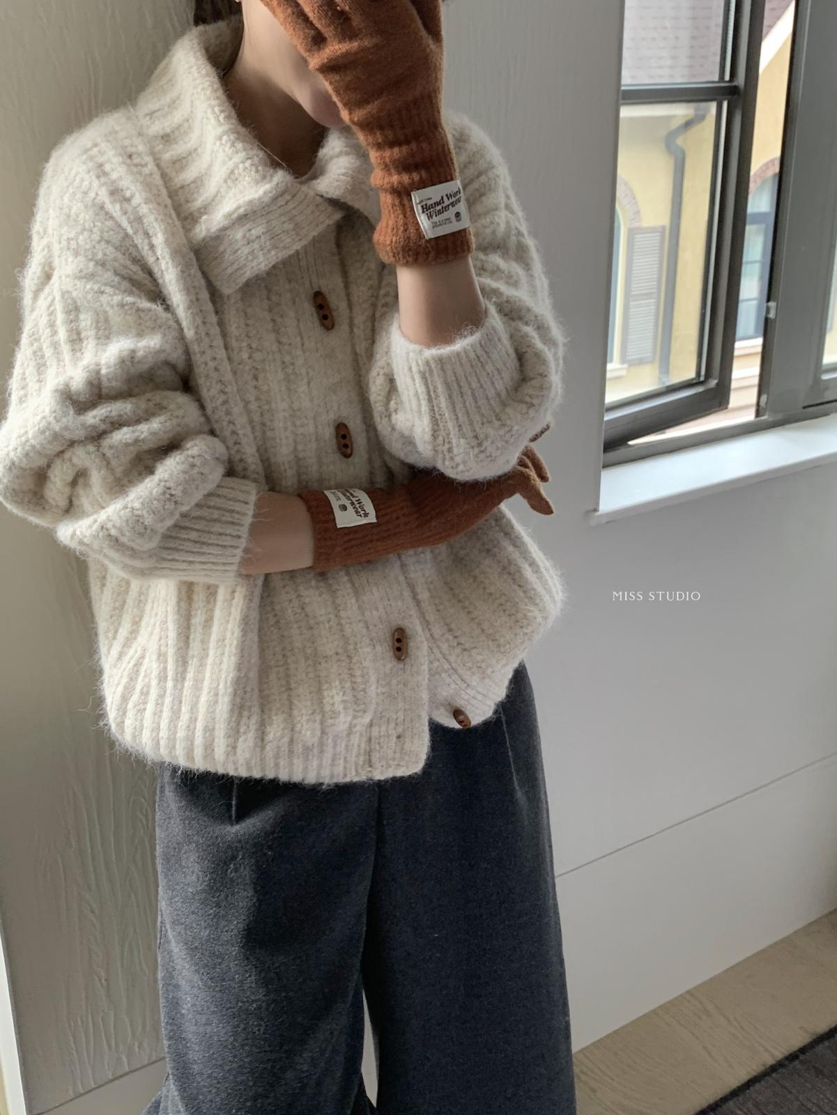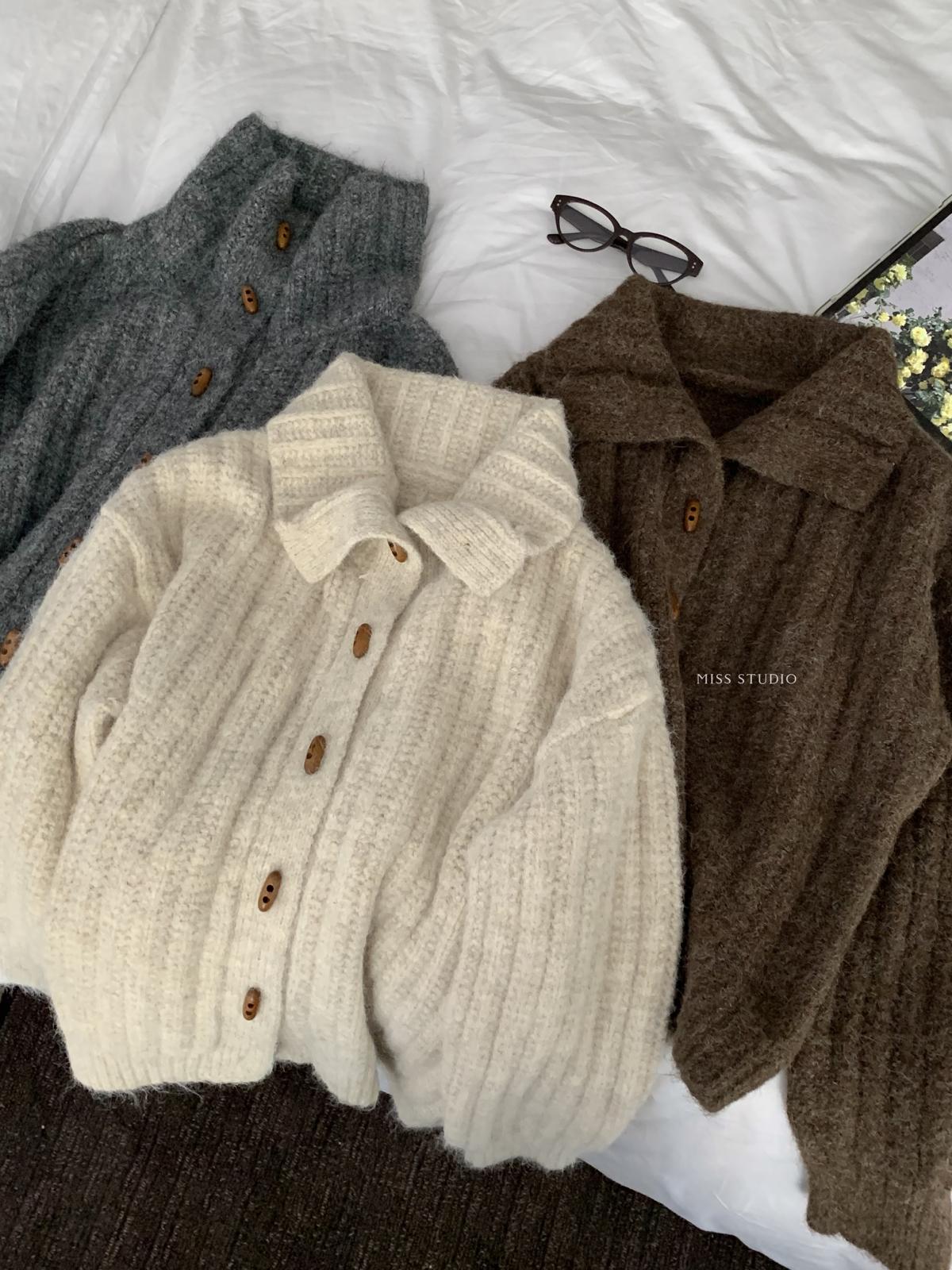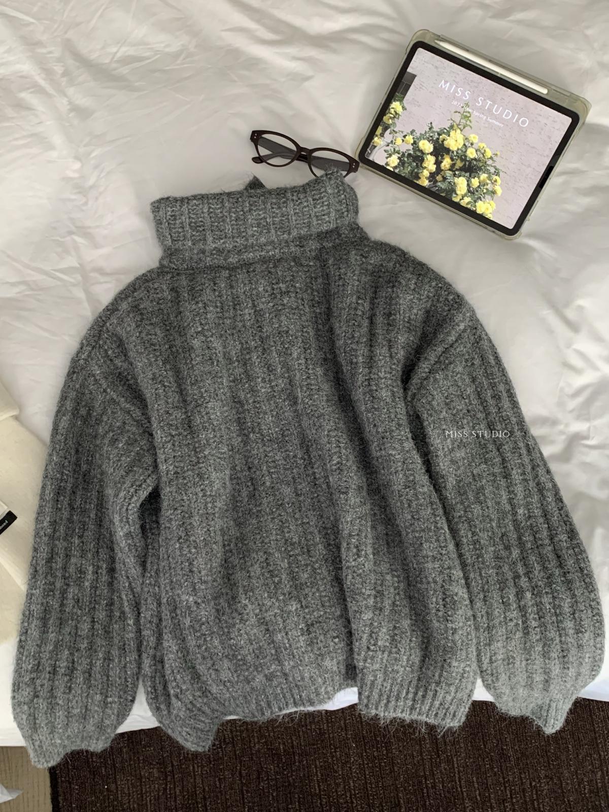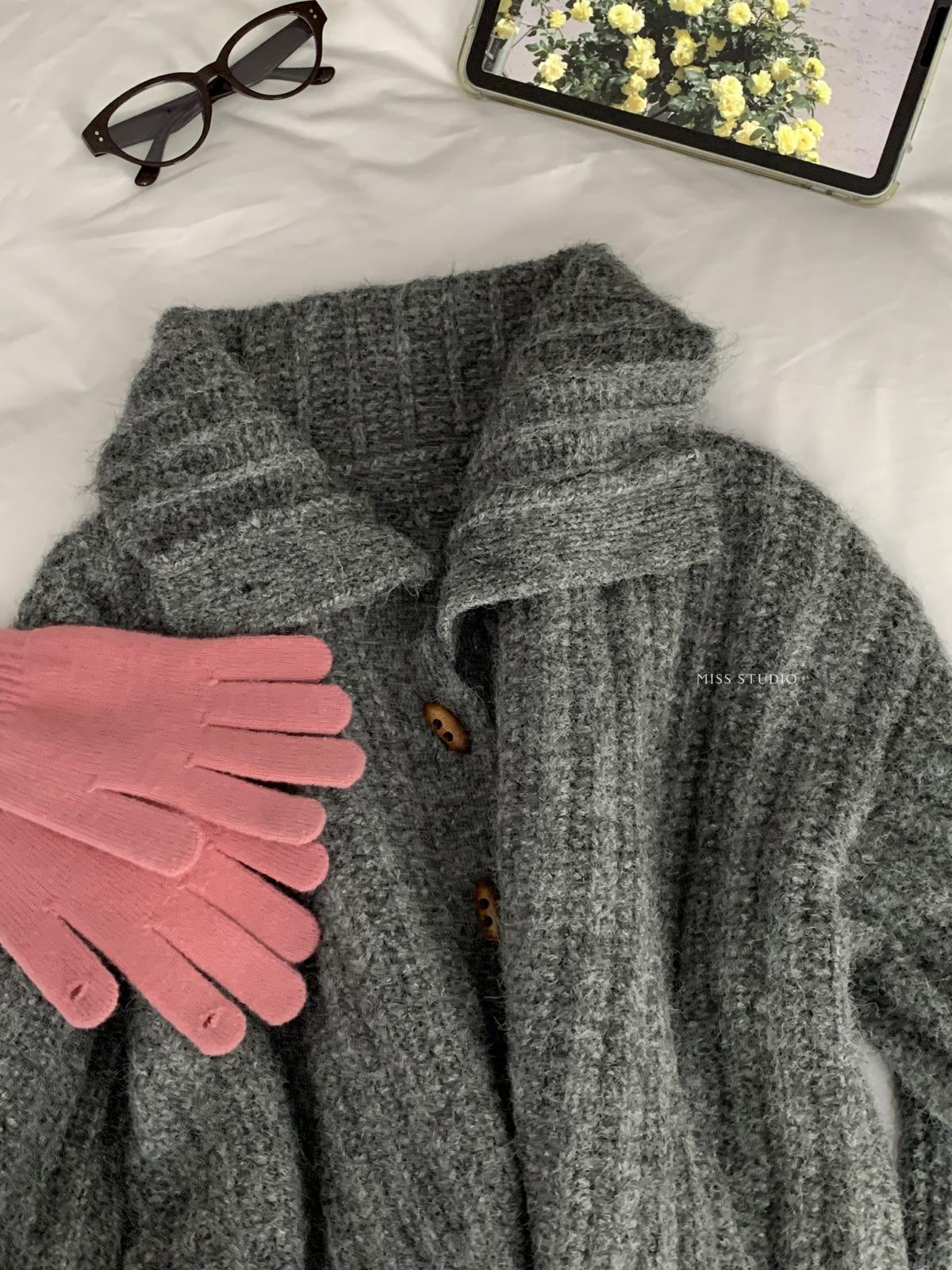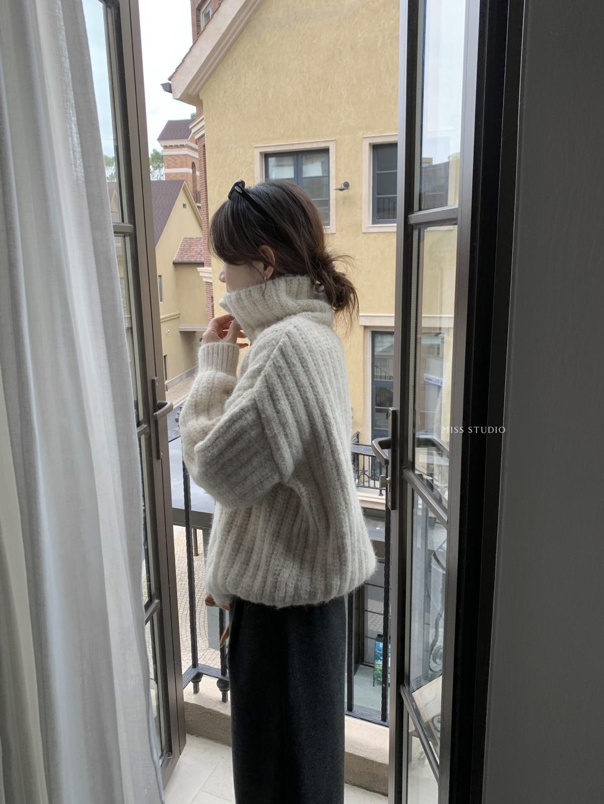 【C7795】鬆弛感滿滿~牛角扣高領暖乎乎開衫加厚保暖毛衣(含7%綿羊毛)