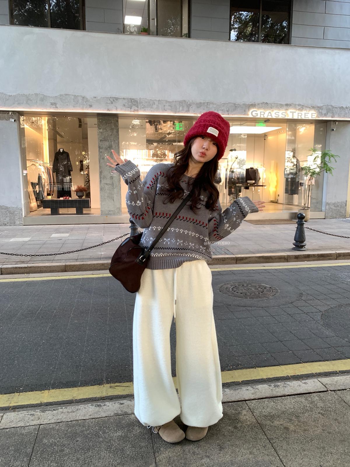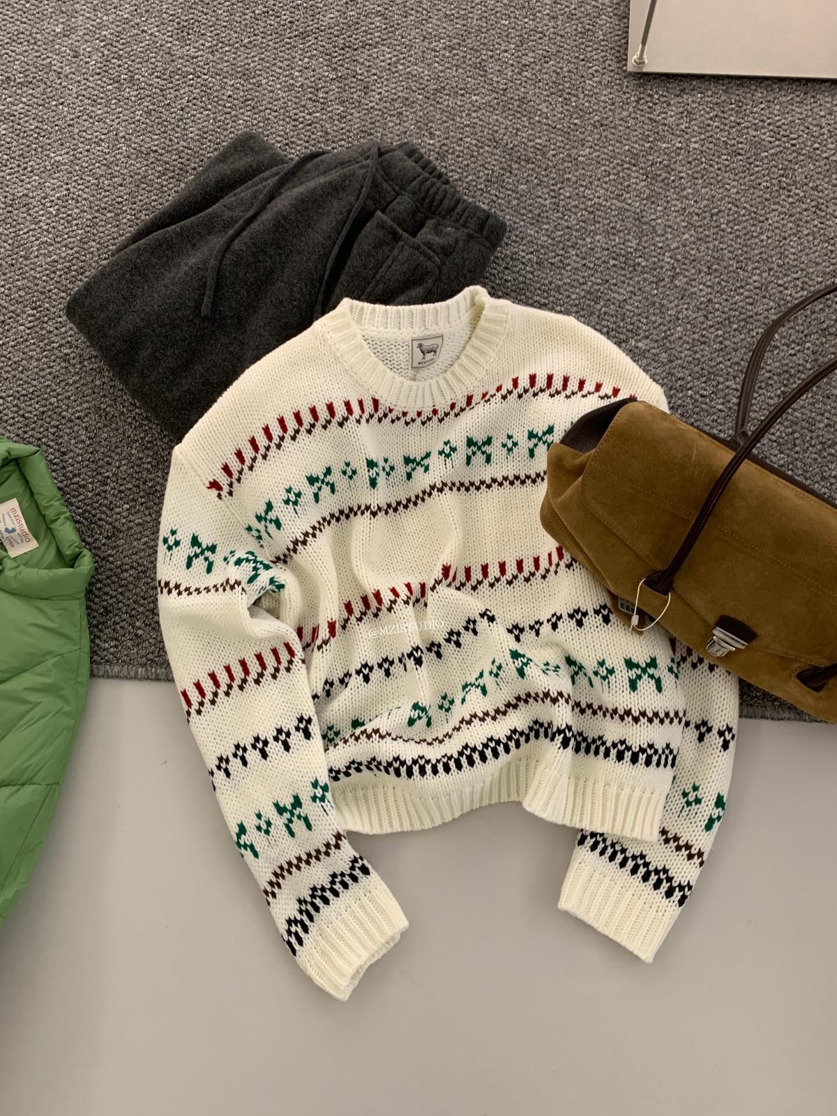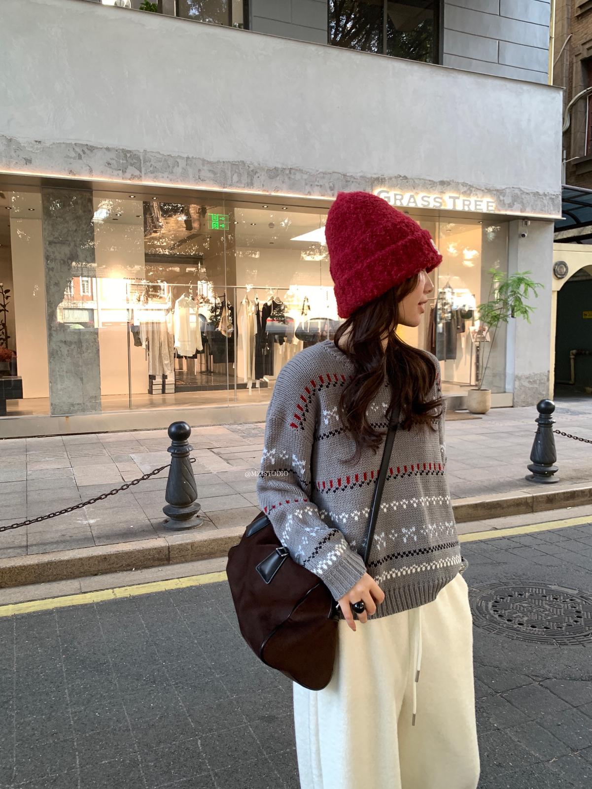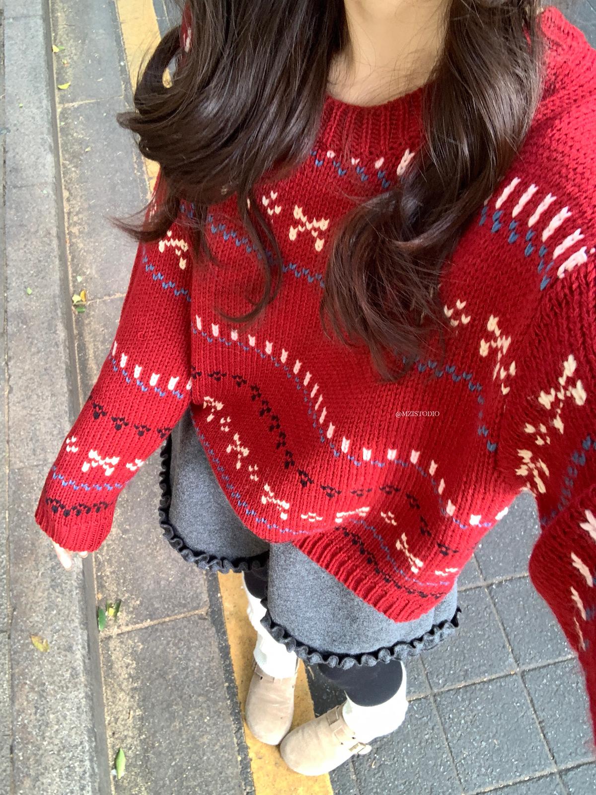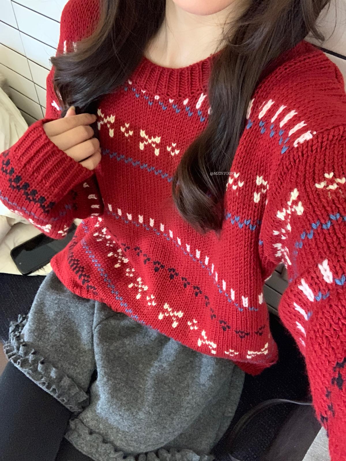 【C8000】冬日溫度詩韓系浪漫費爾島提花圓領柔軟細膩套頭保暖毛衣
