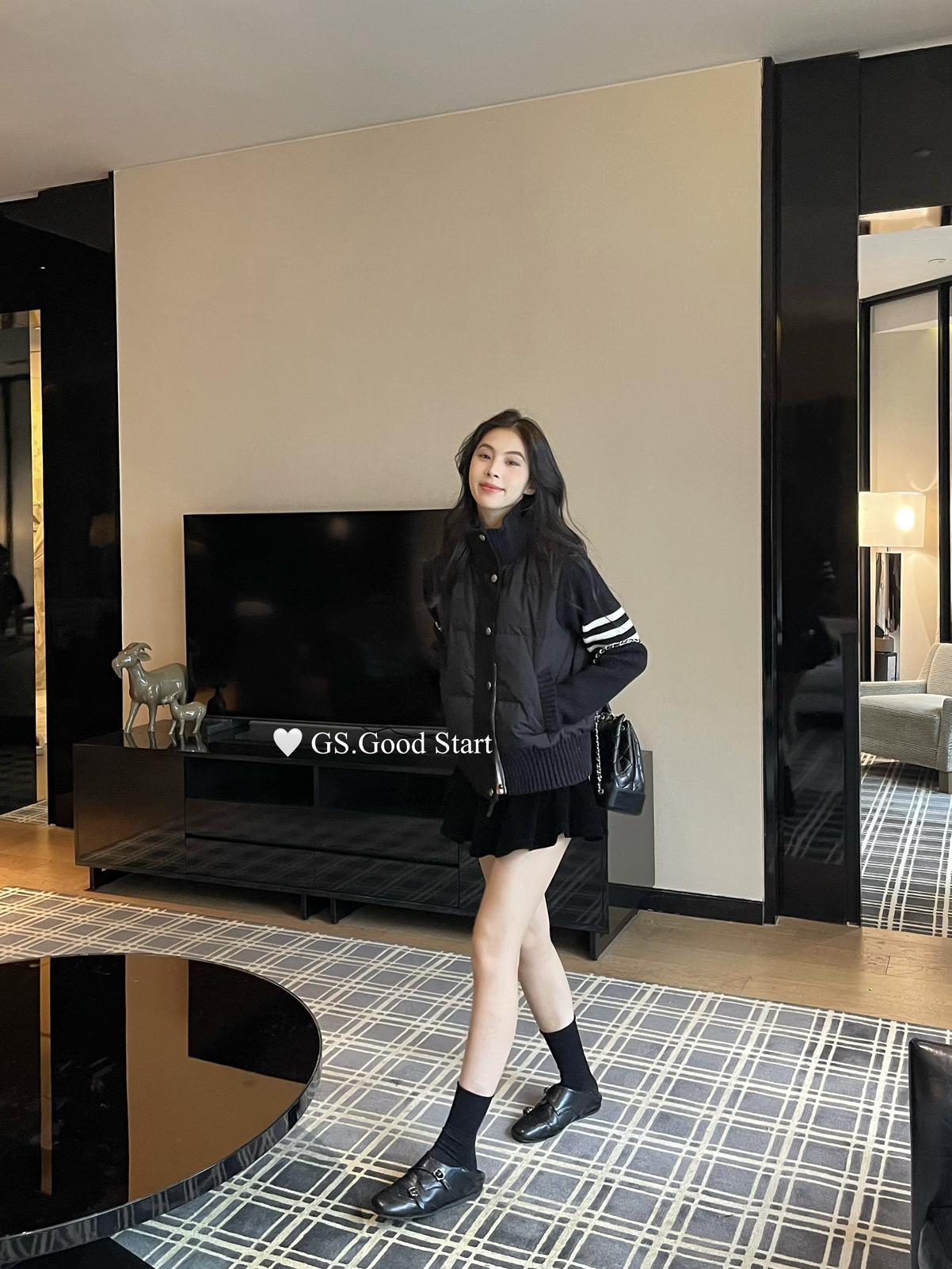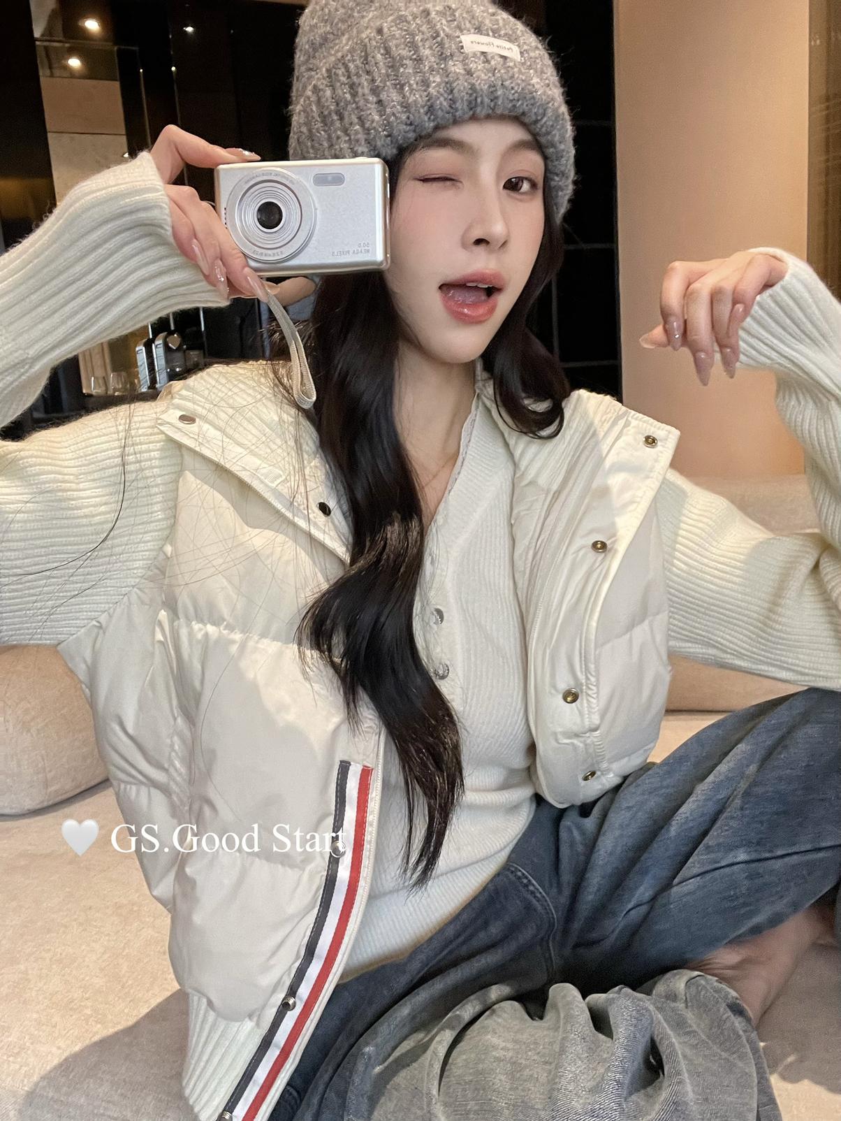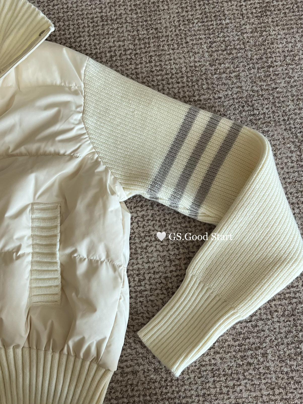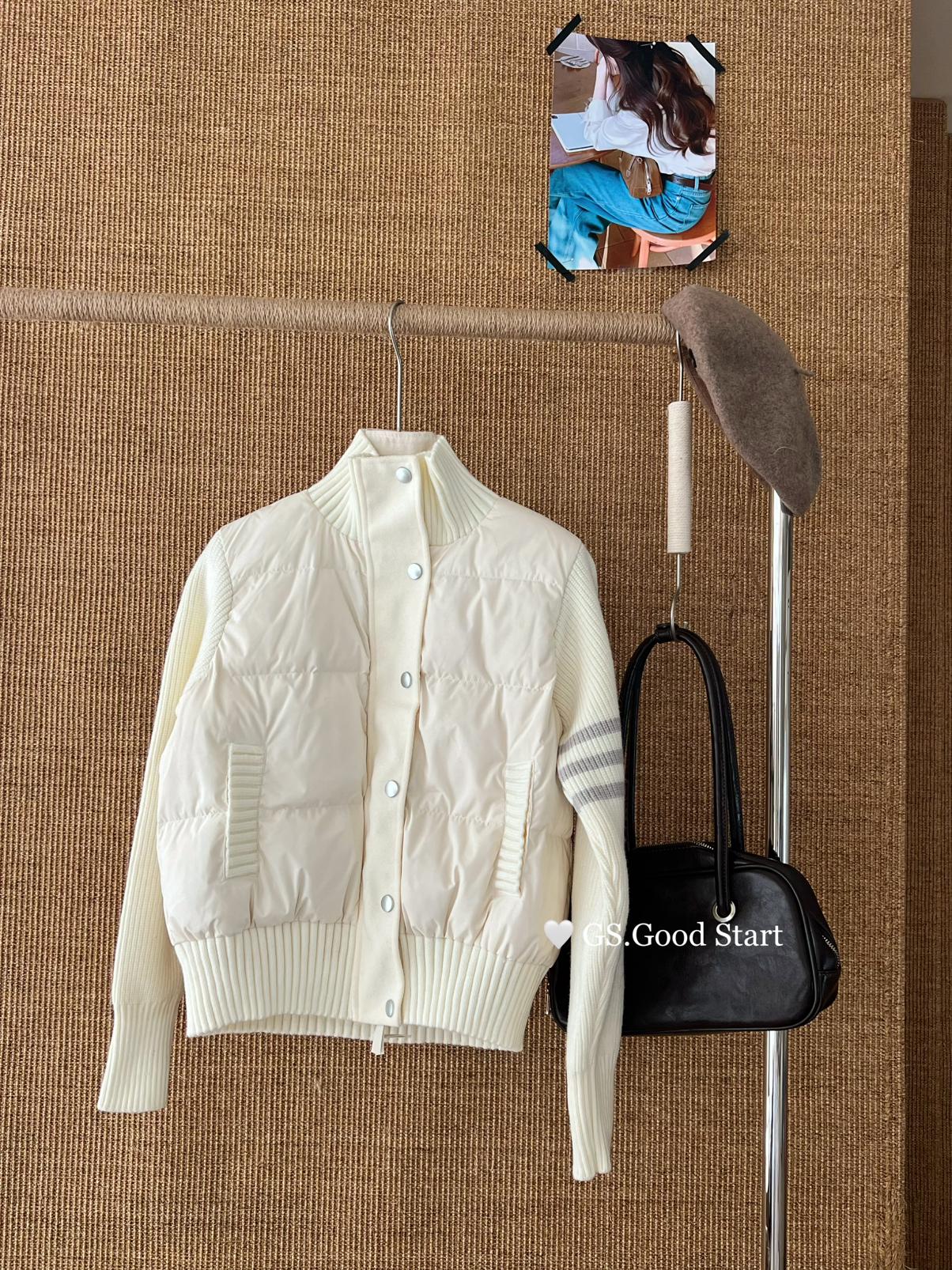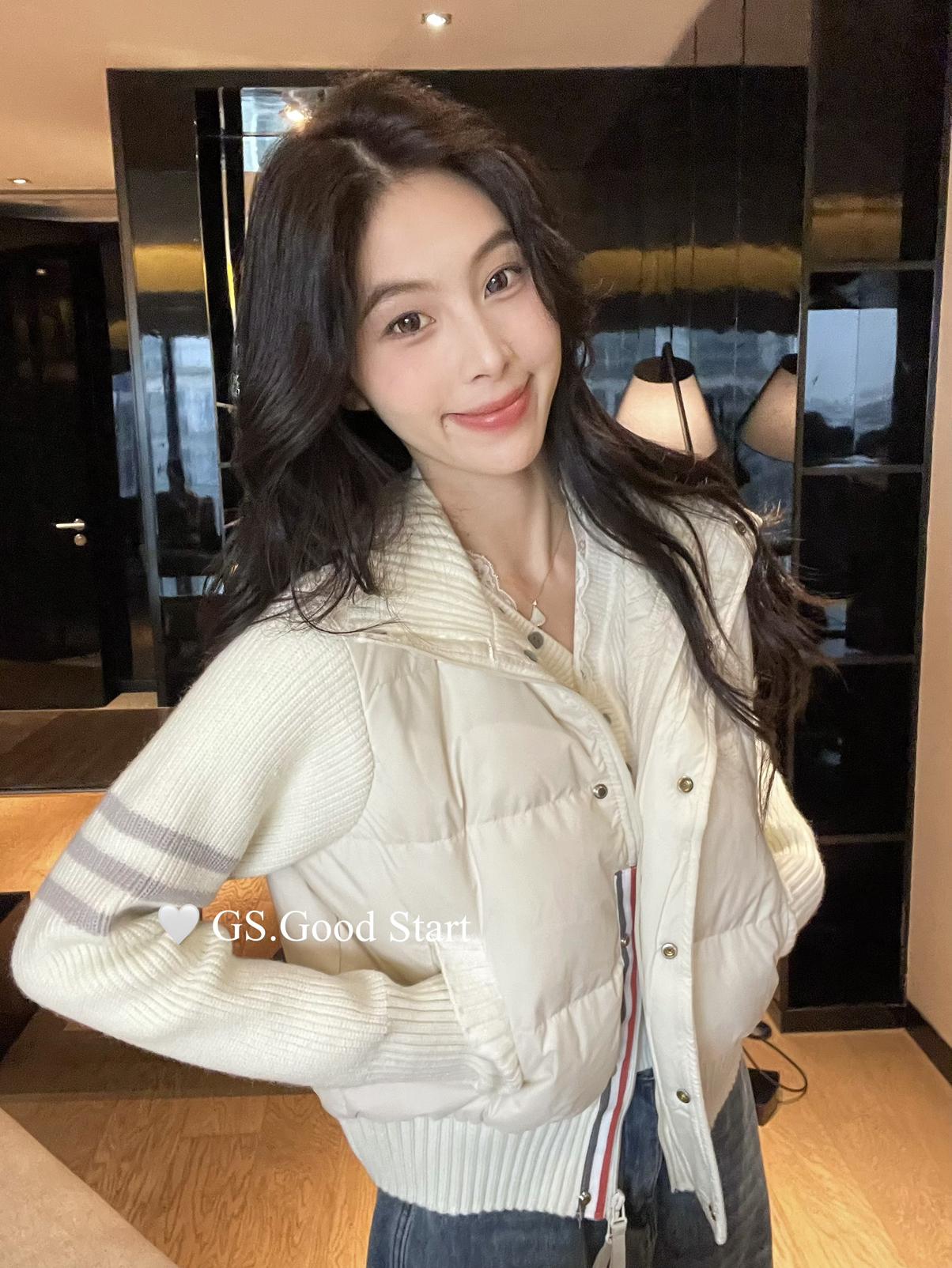 【C8012】全員自留款!版型優秀*顯瘦又保暖!冬季時髦休閒針織拼接短款羽絨服(好品質.收到都好評)