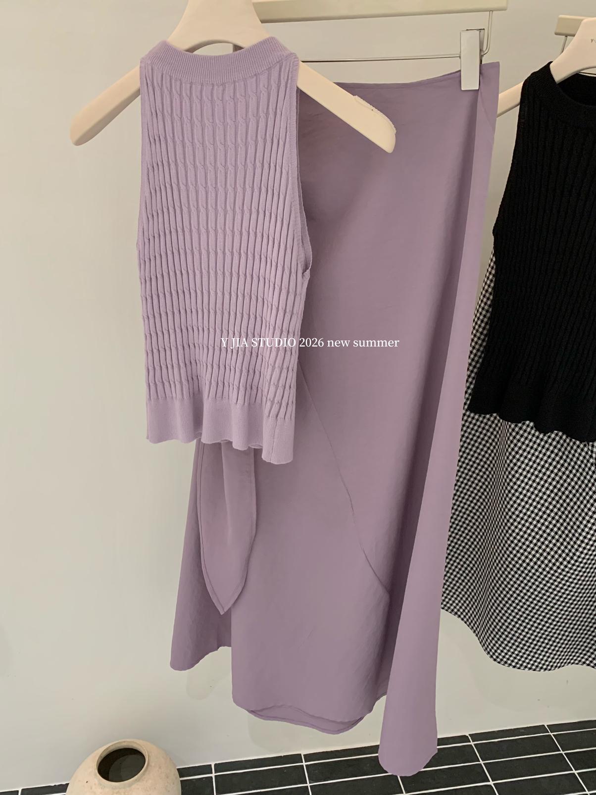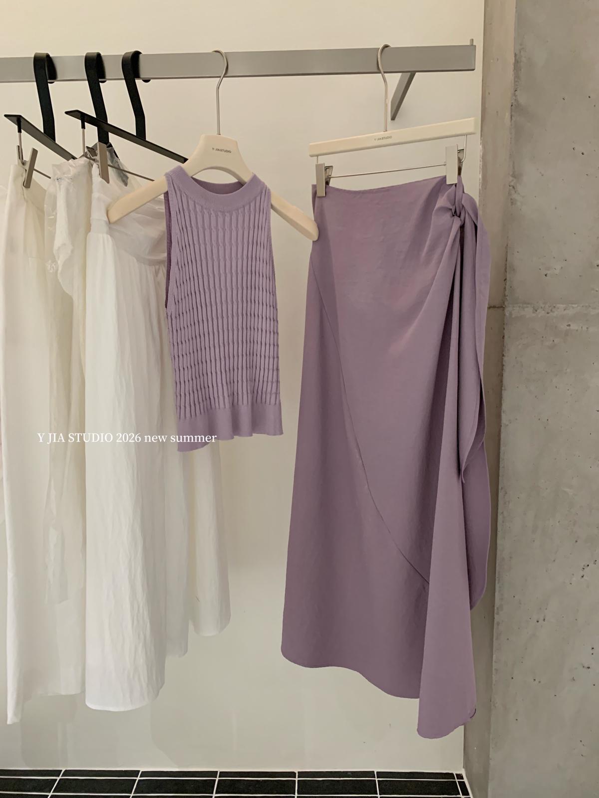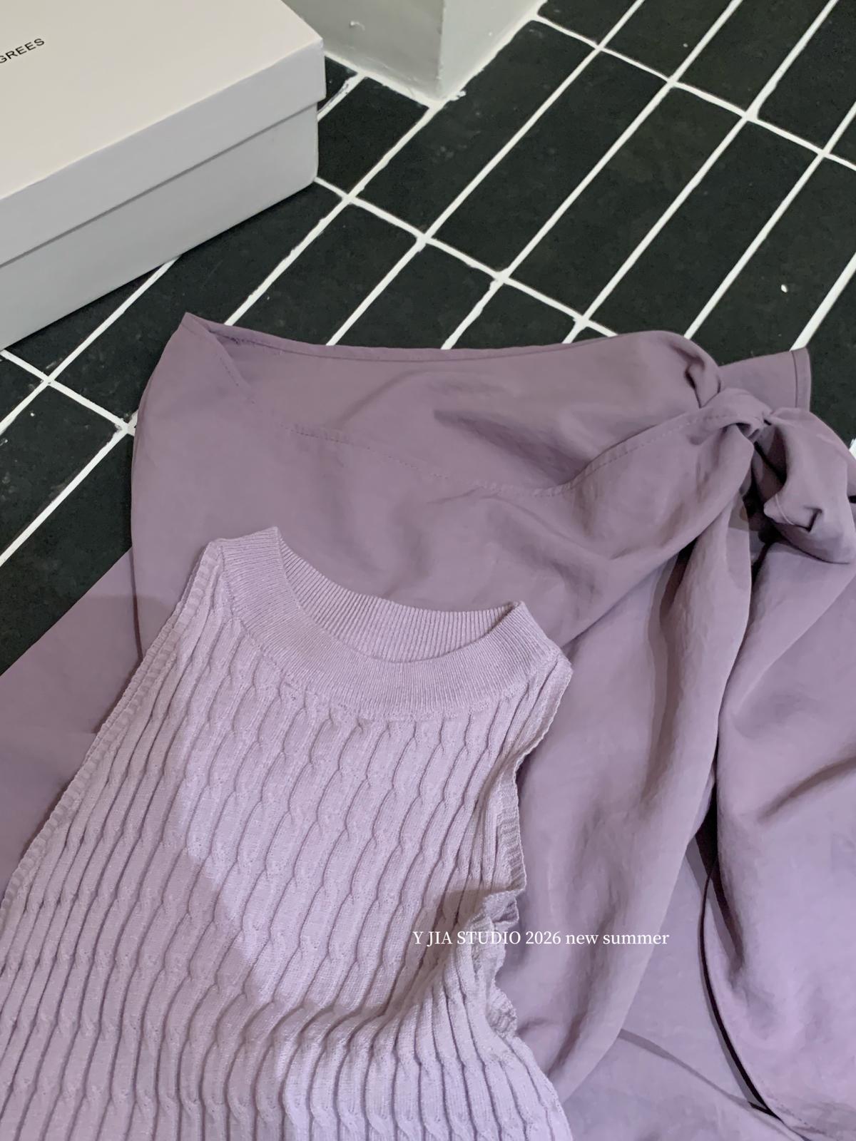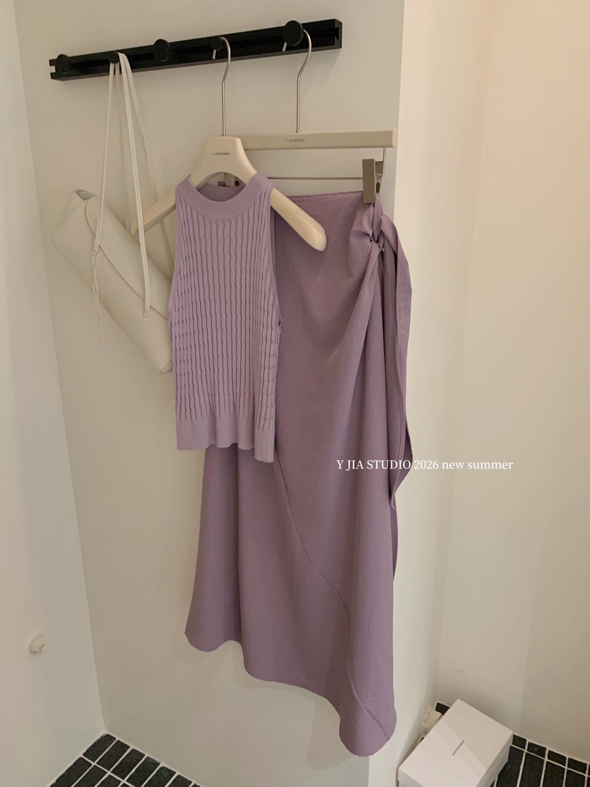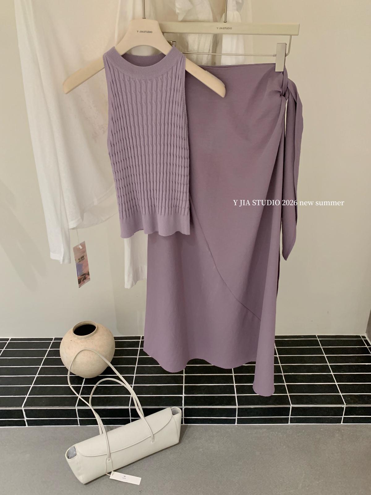 【C8967】小衆不規則復古綁帶氣質休閒半身裙+麻花無袖針織背心套裝(兩件套)