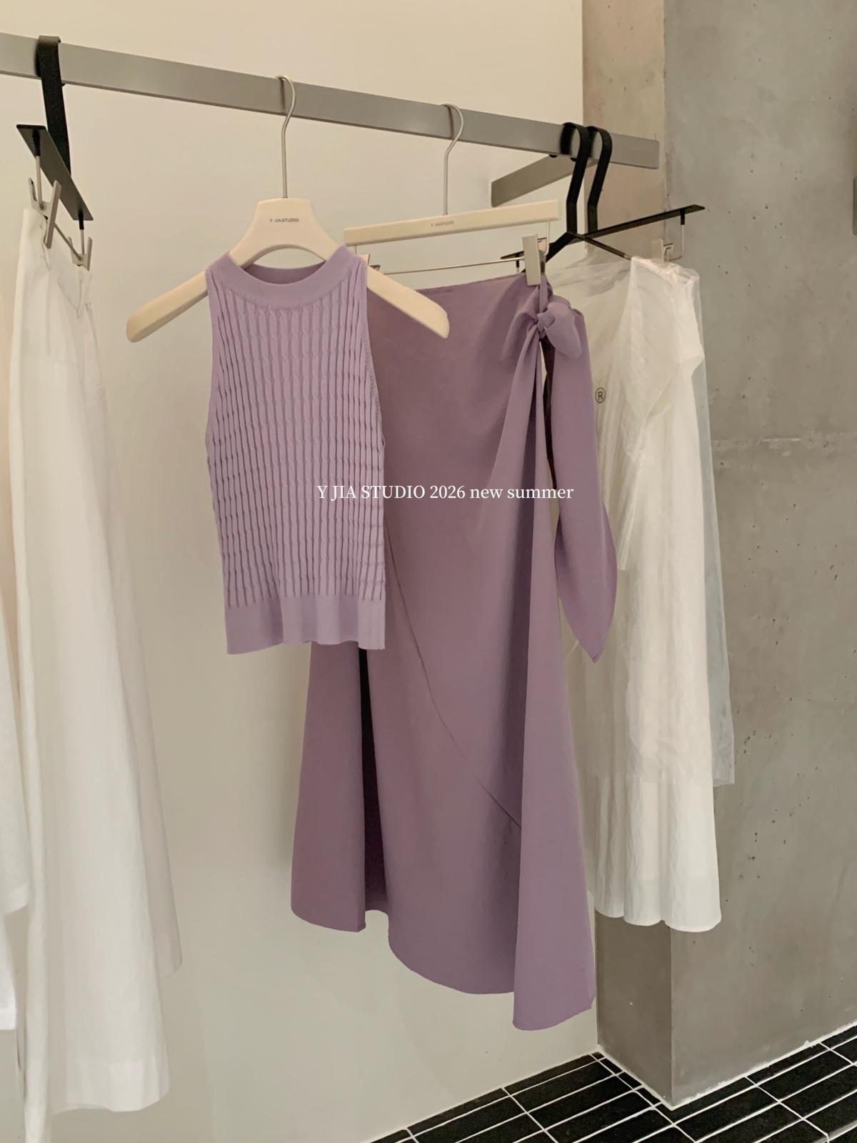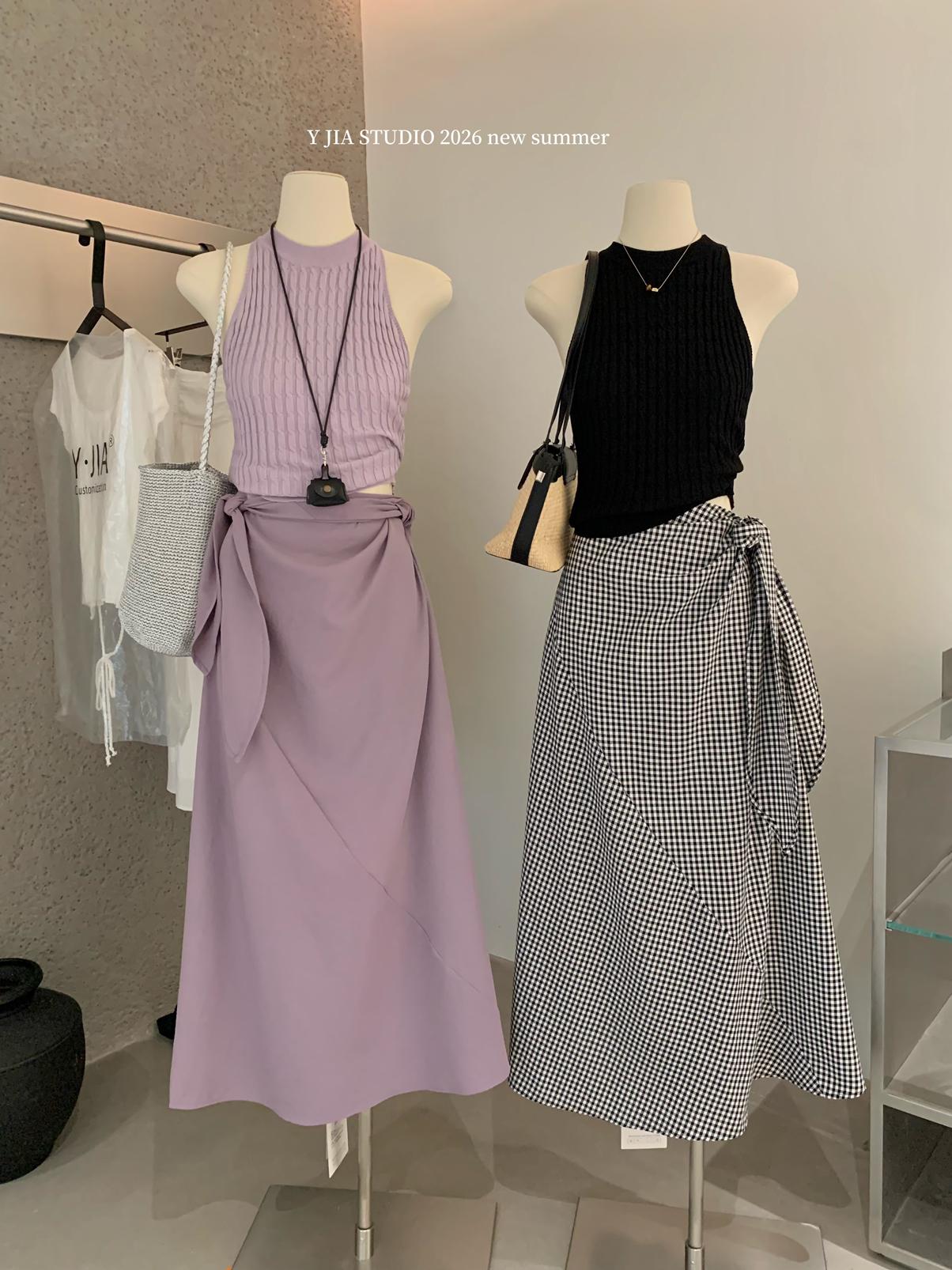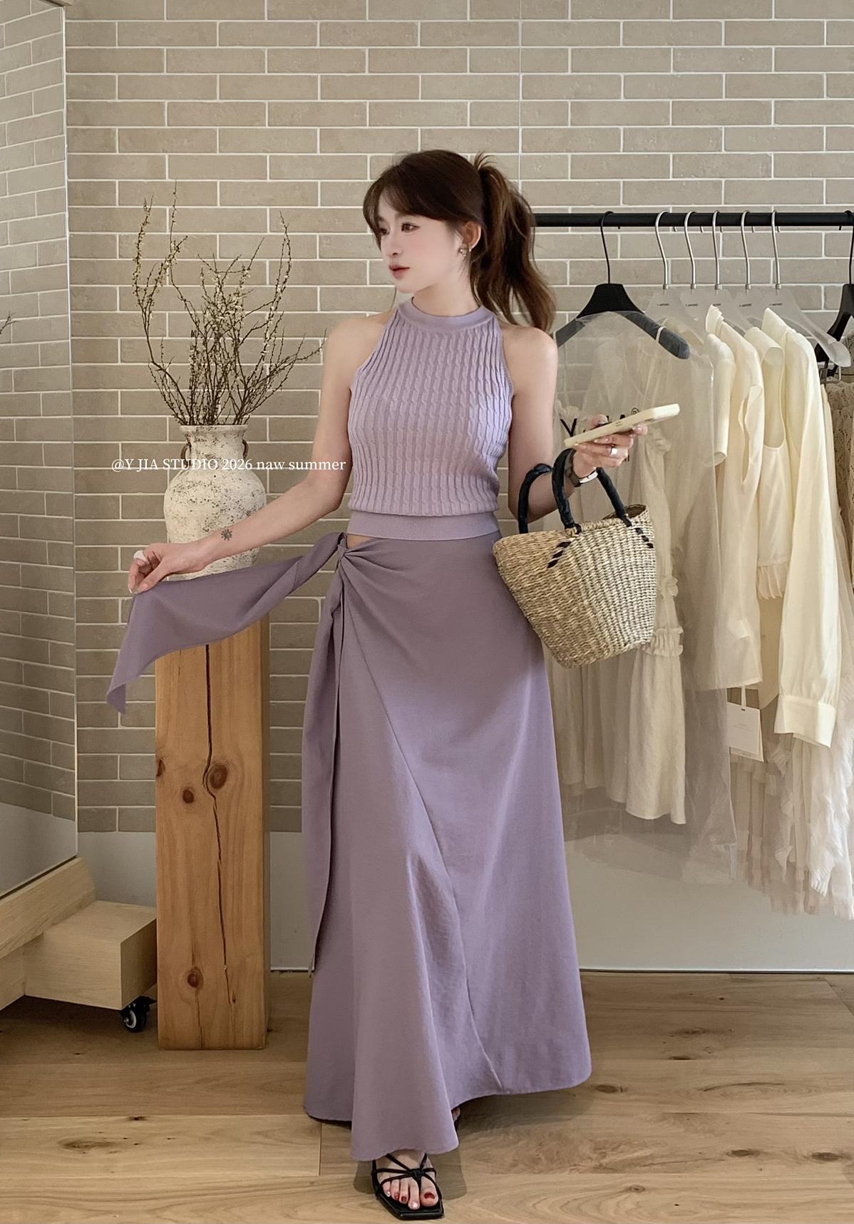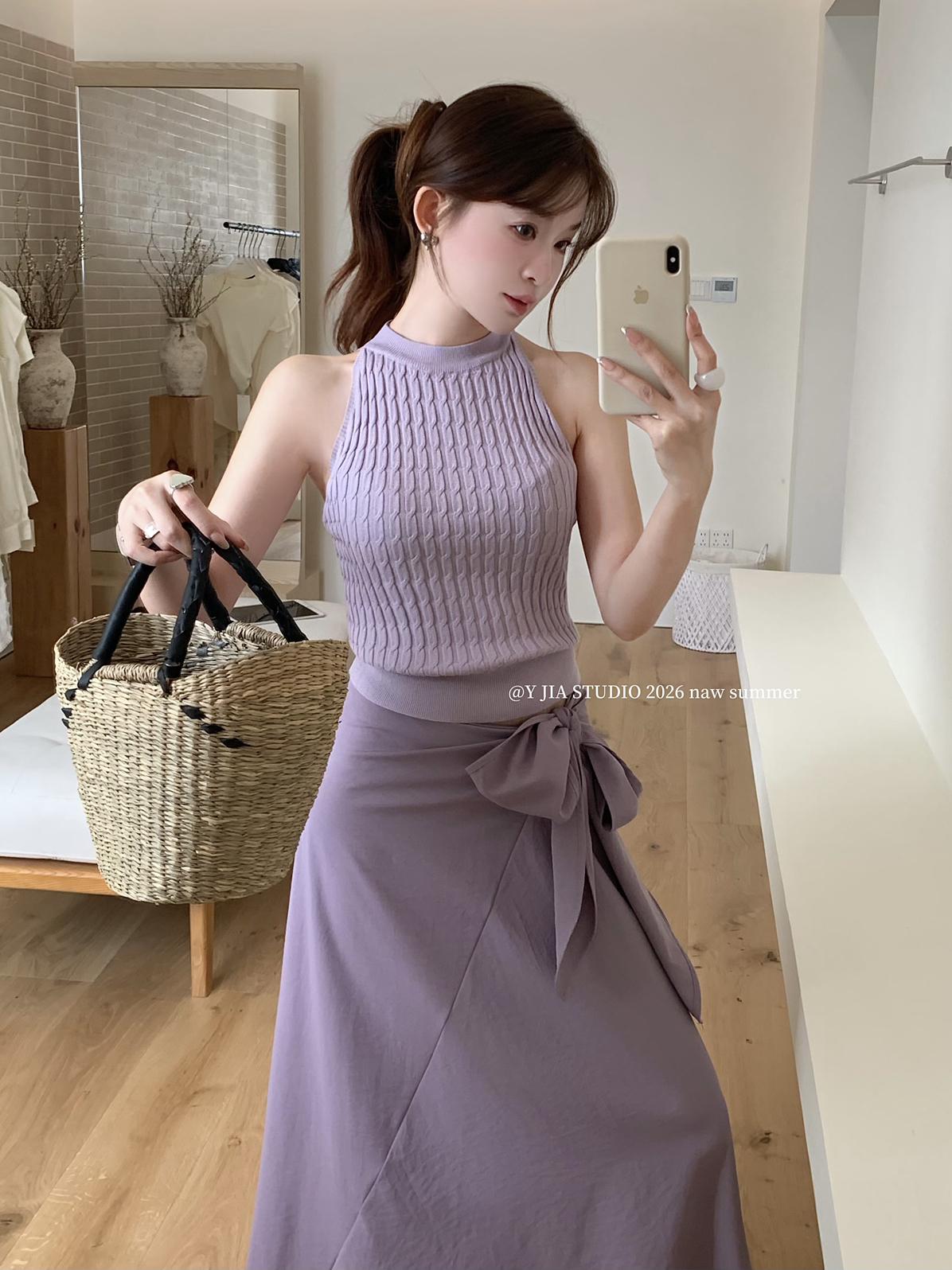 【C8967】小衆不規則復古綁帶氣質休閒半身裙+麻花無袖針織背心套裝(兩件套)