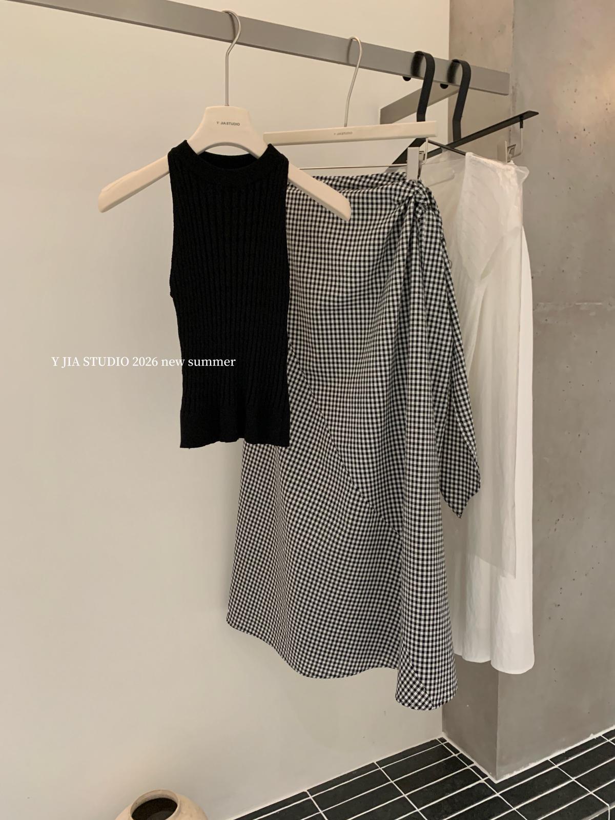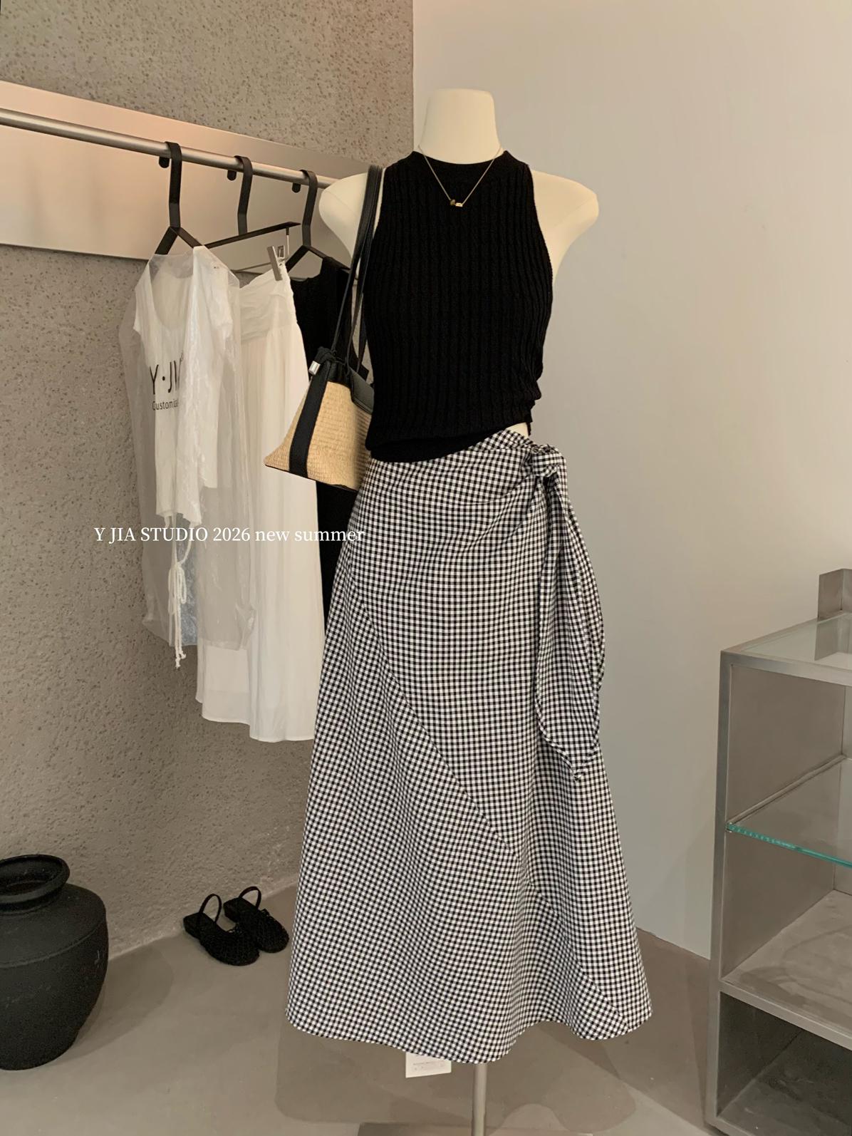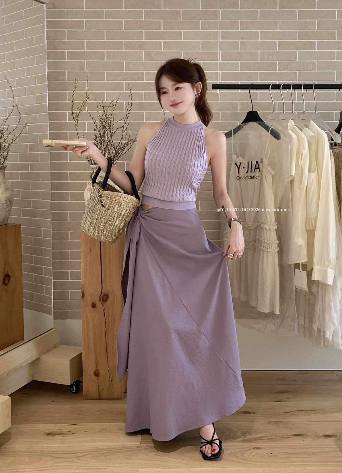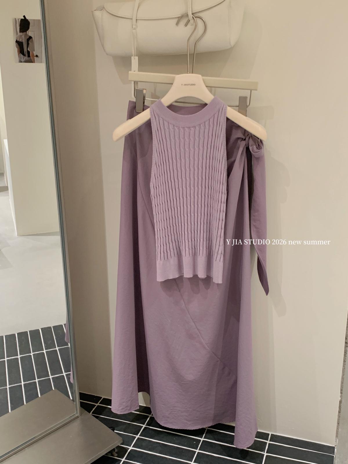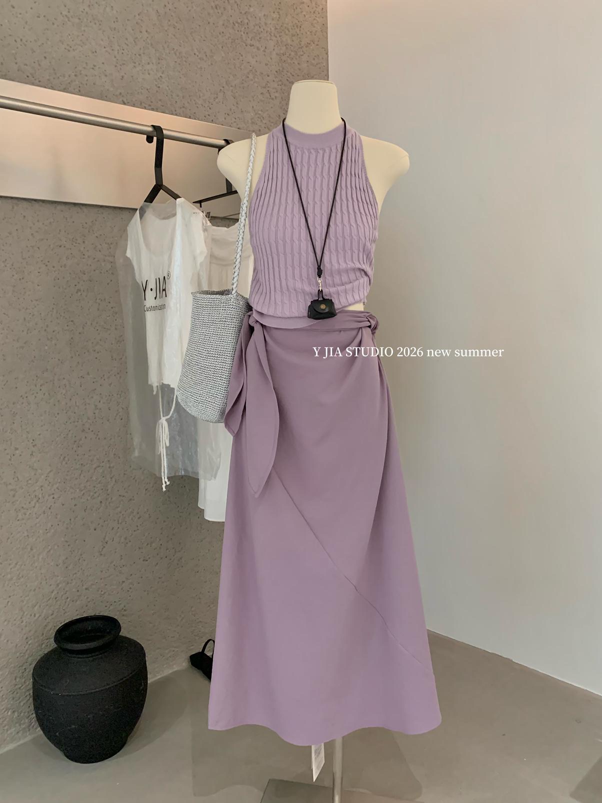 【C8967】小衆不規則復古綁帶氣質休閒半身裙+麻花無袖針織背心套裝(兩件套)