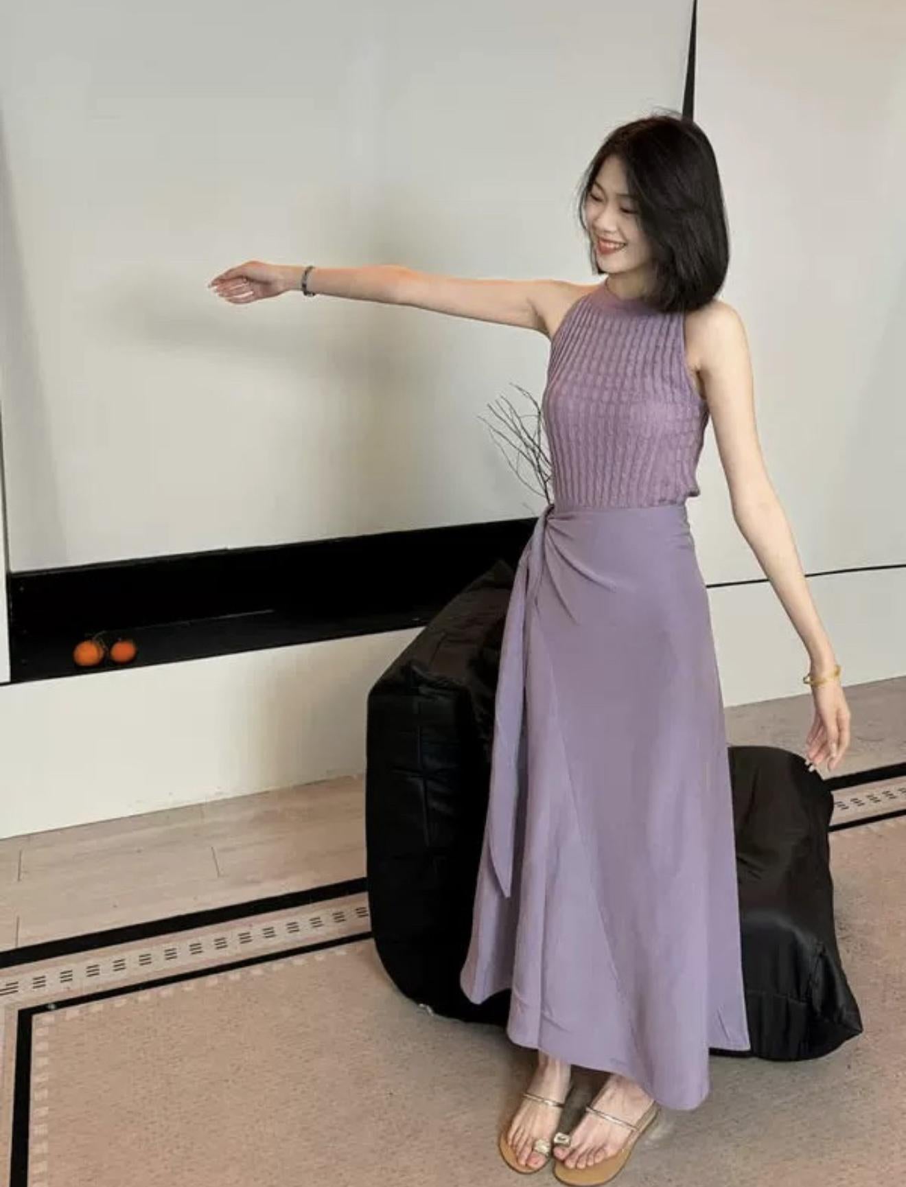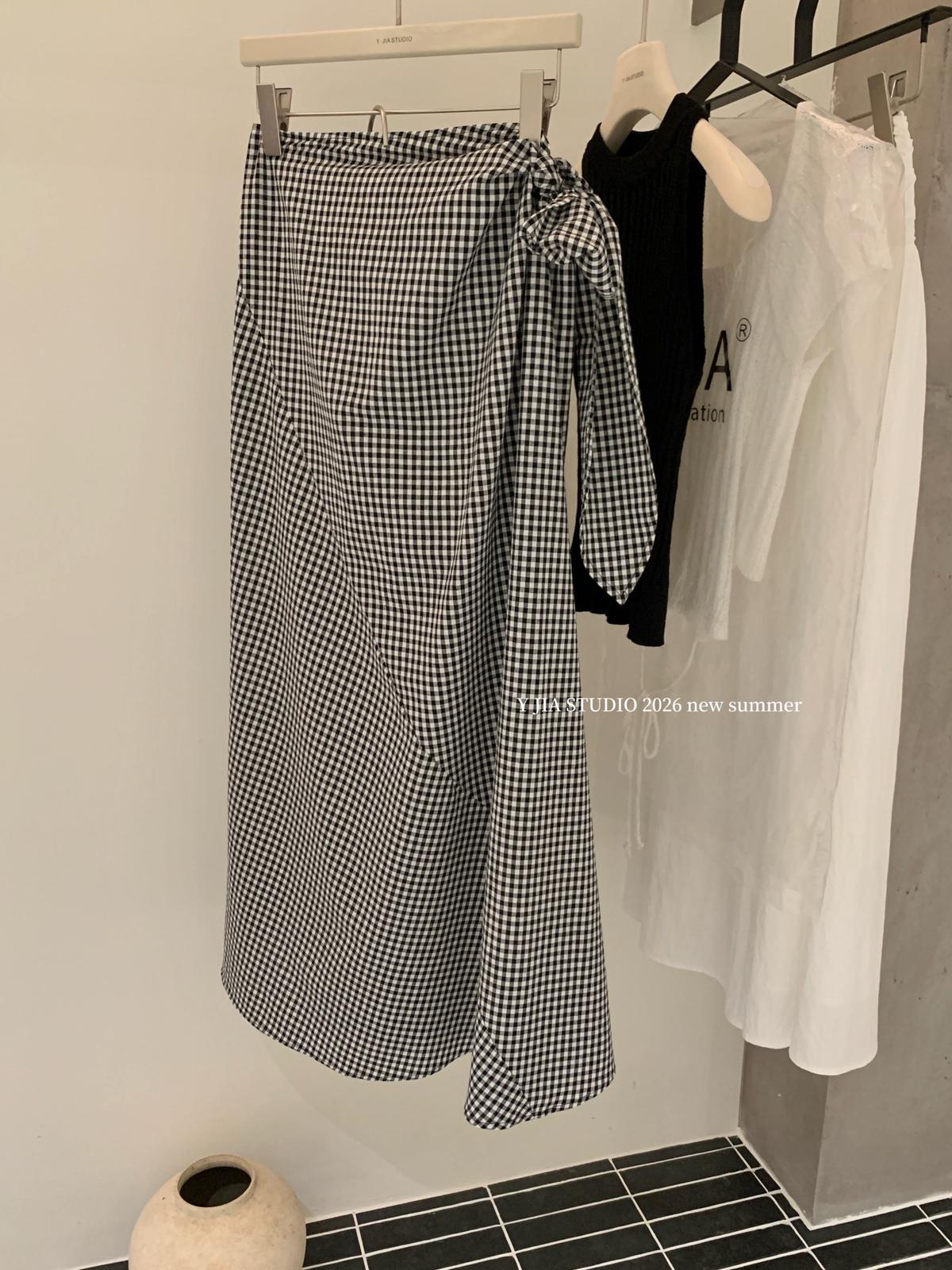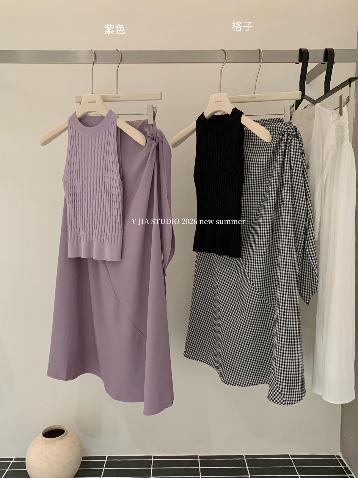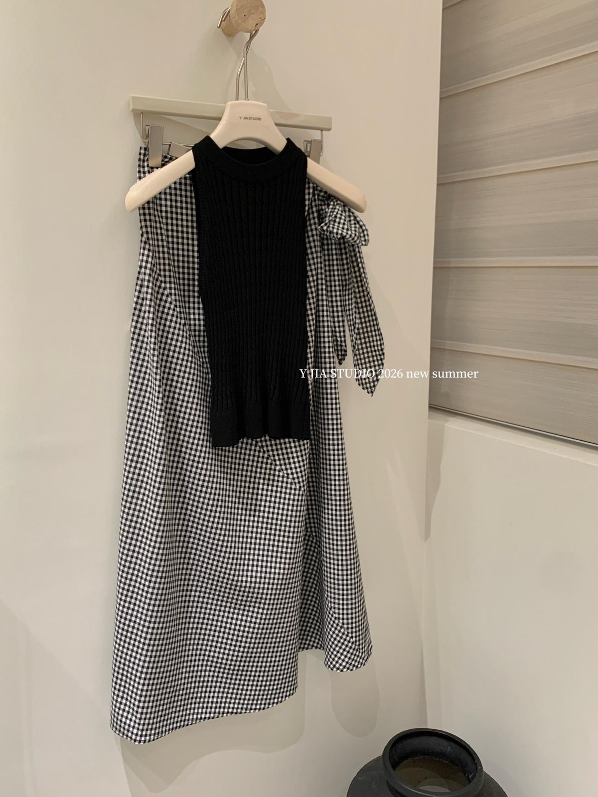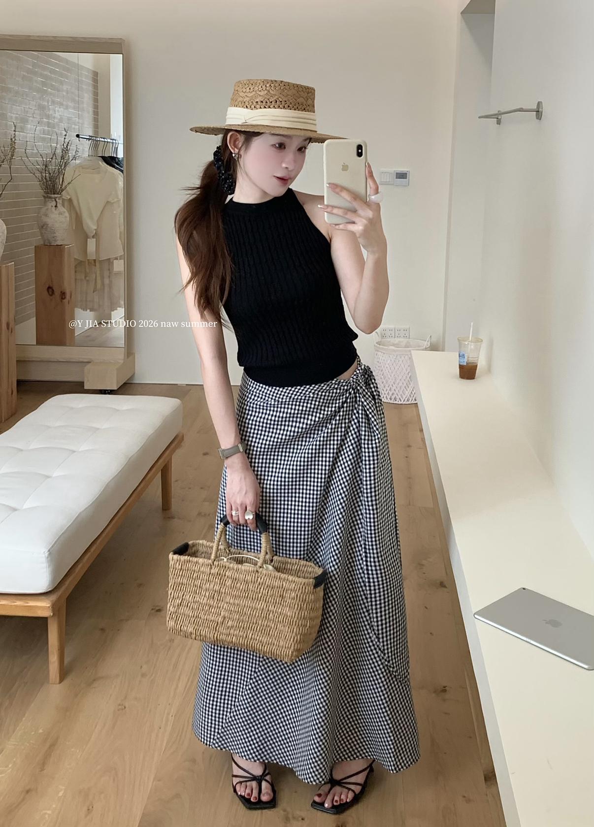 【C8967】小衆不規則復古綁帶氣質休閒半身裙+麻花無袖針織背心套裝(兩件套)