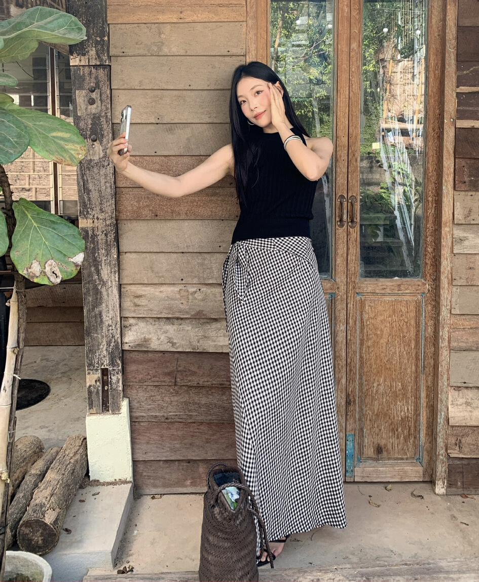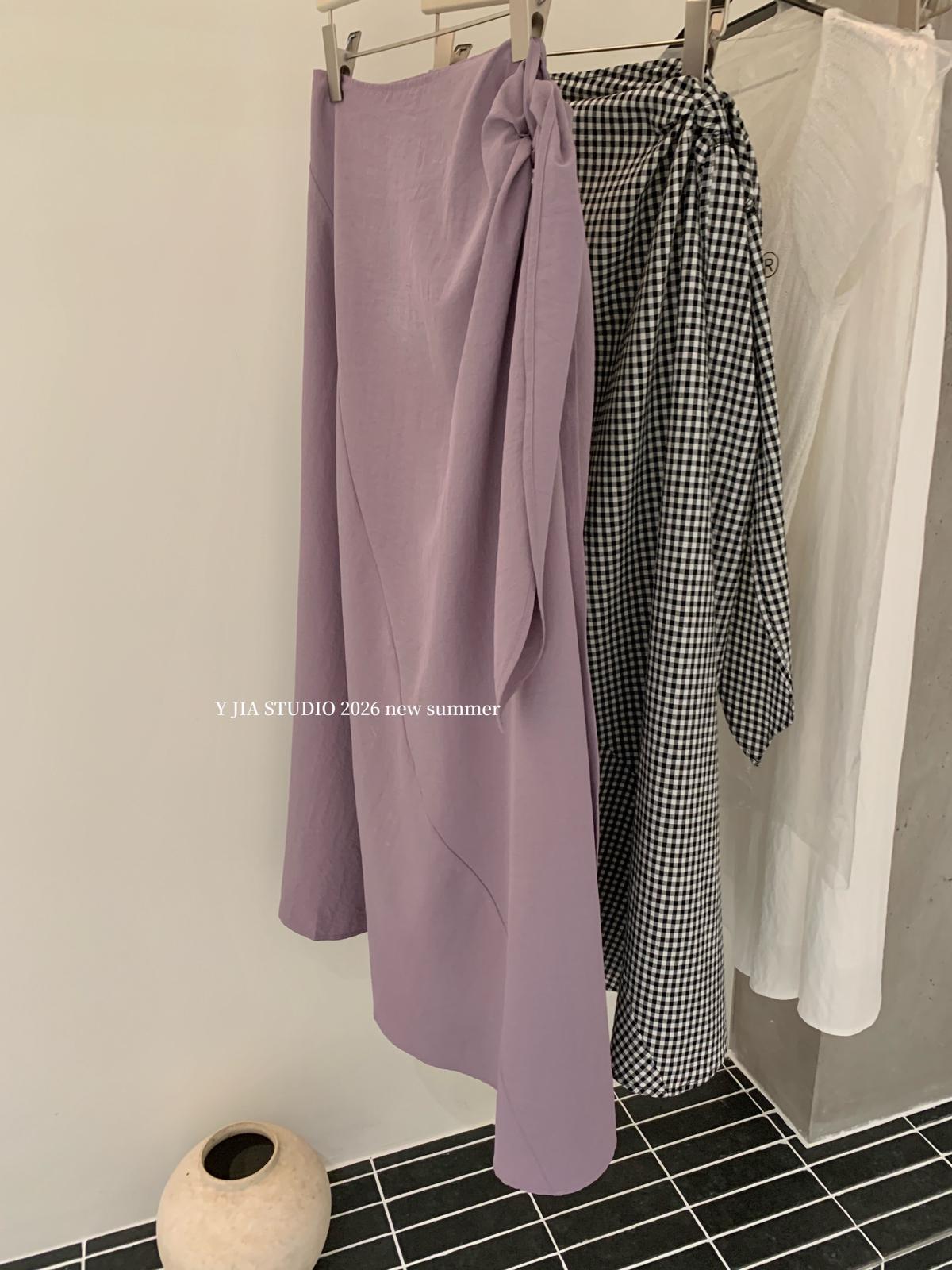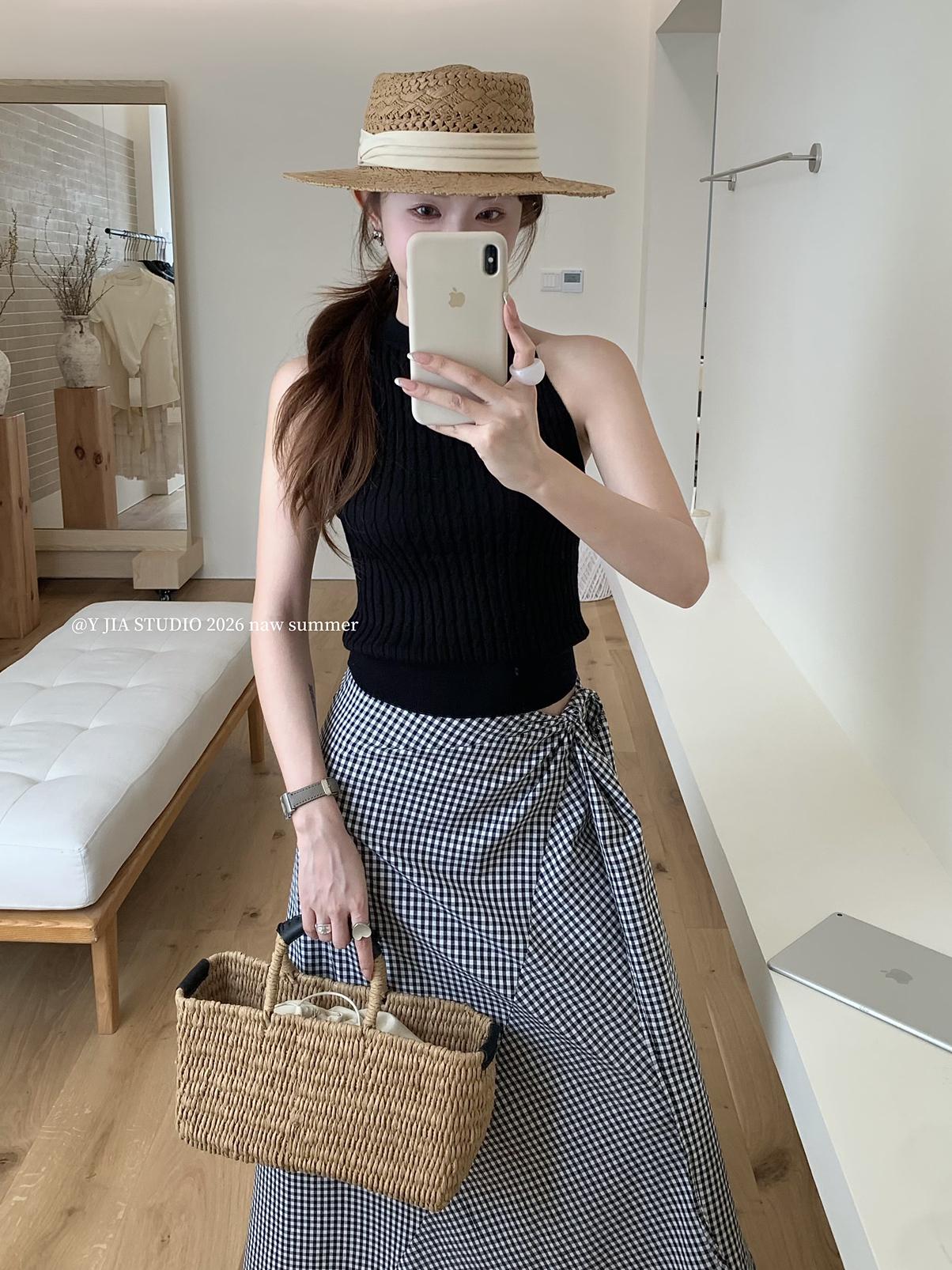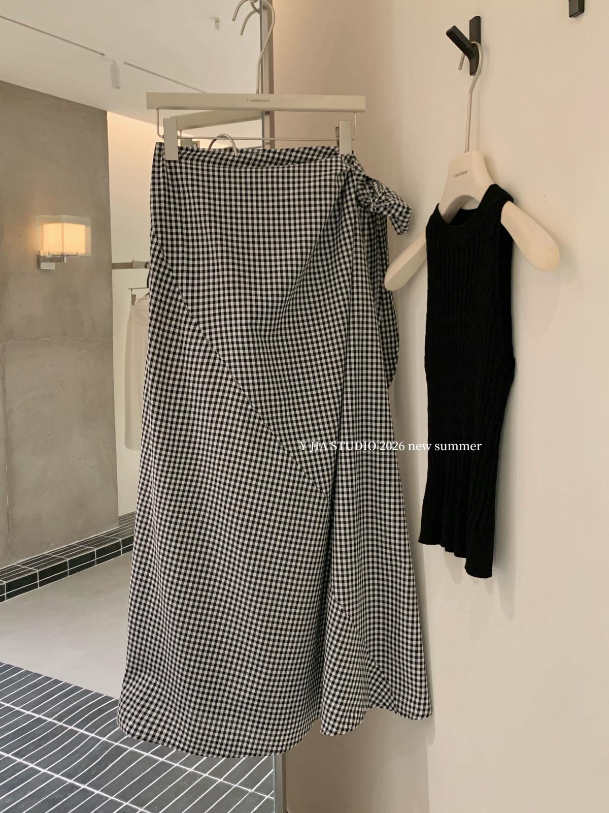 【C8967】小衆不規則復古綁帶氣質休閒半身裙+麻花無袖針織背心套裝(兩件套)