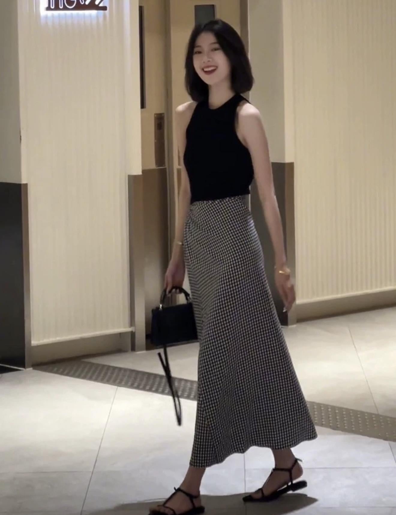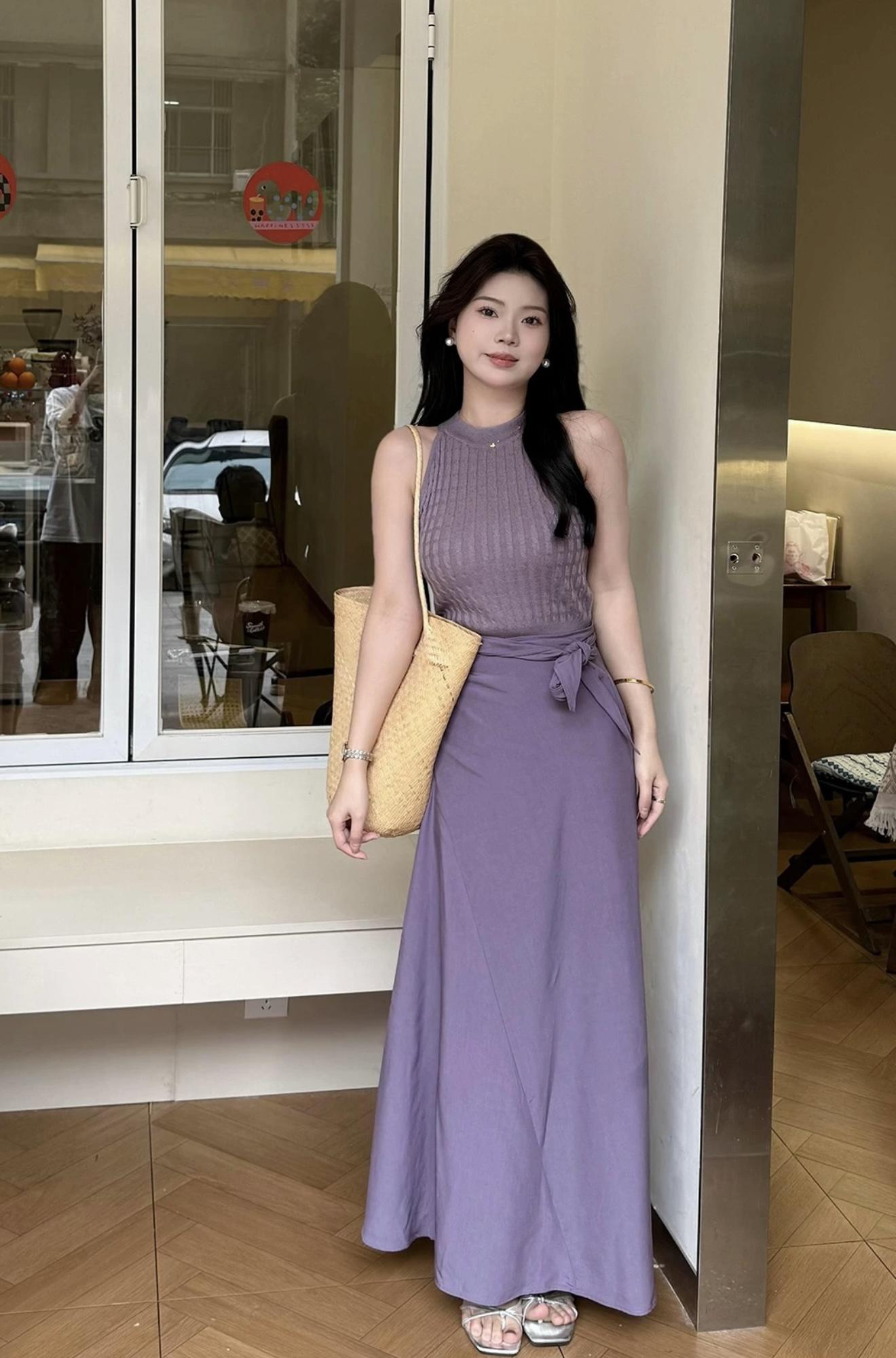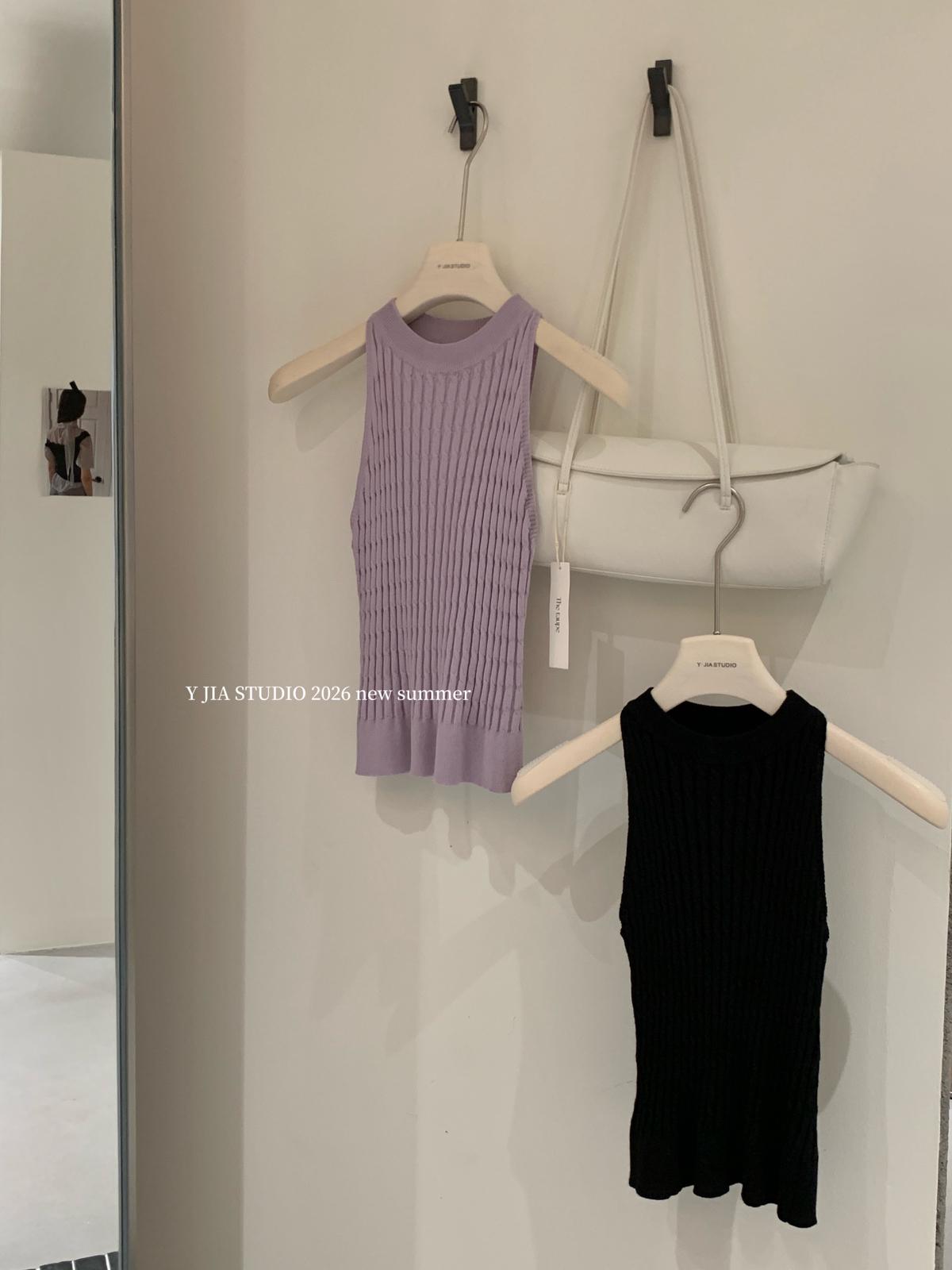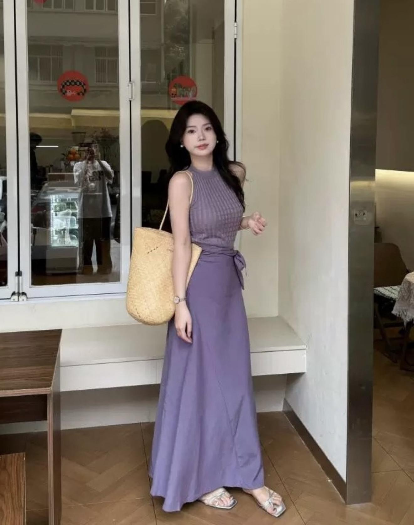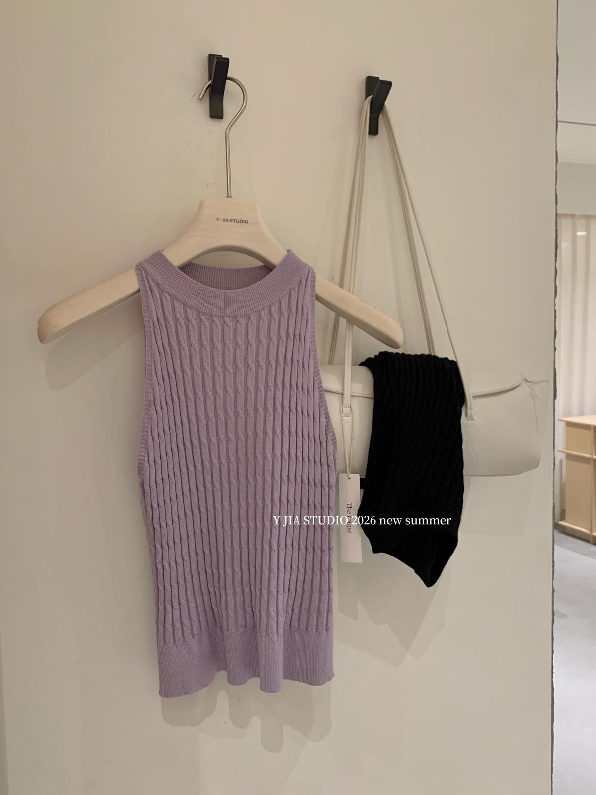 【C8967】小衆不規則復古綁帶氣質休閒半身裙+麻花無袖針織背心套裝(兩件套)