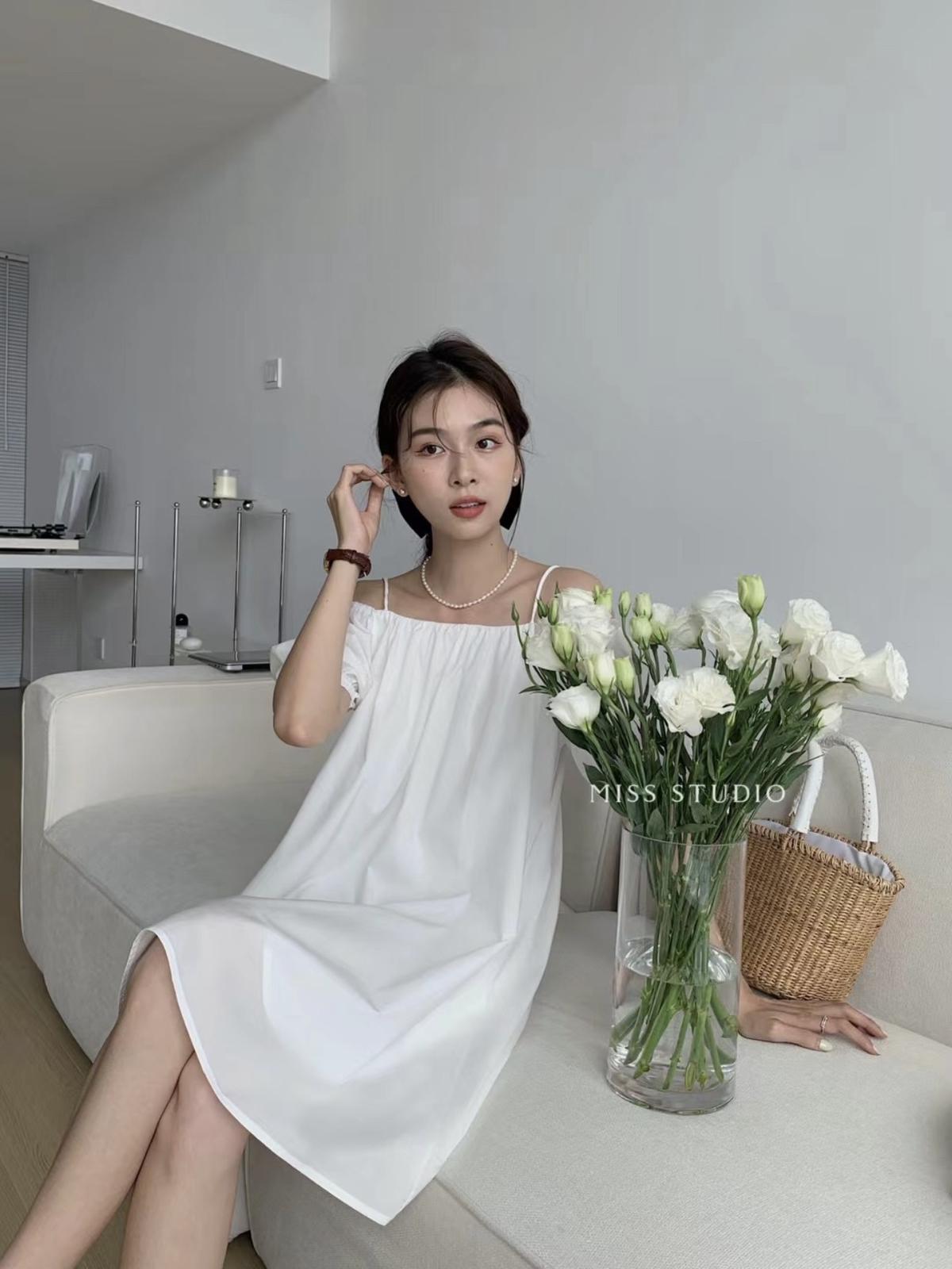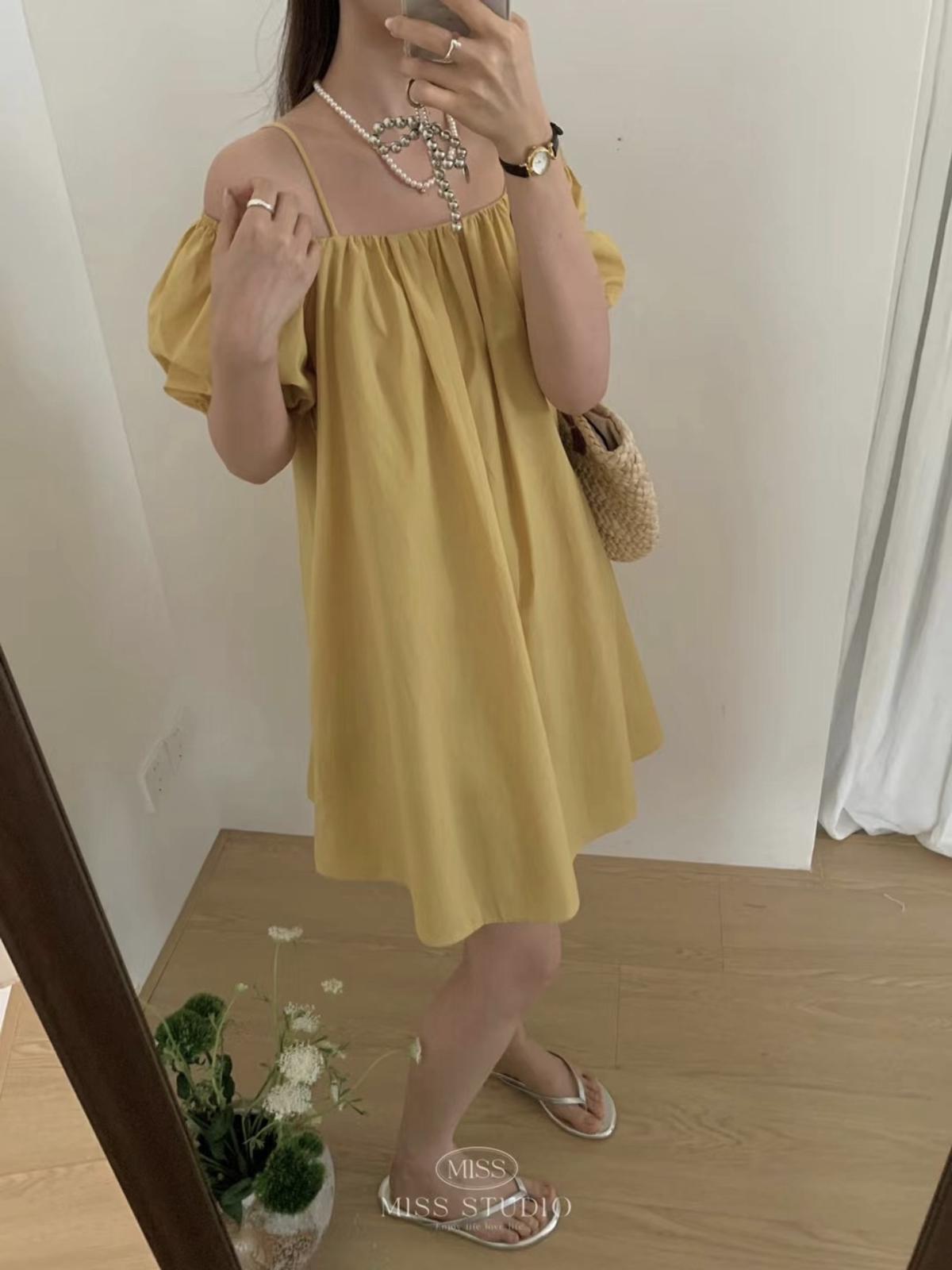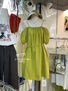【C9180】簡約不挑人寬鬆純色兩穿吊帶連衣裙(配腰繩)