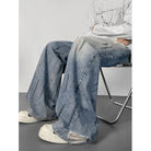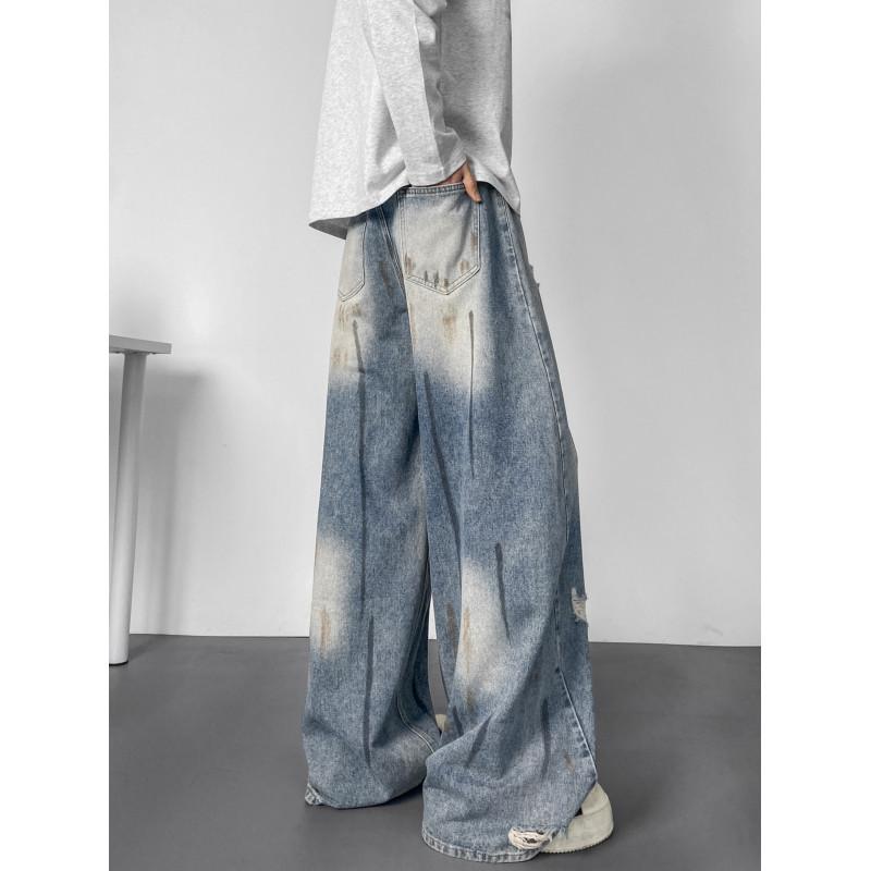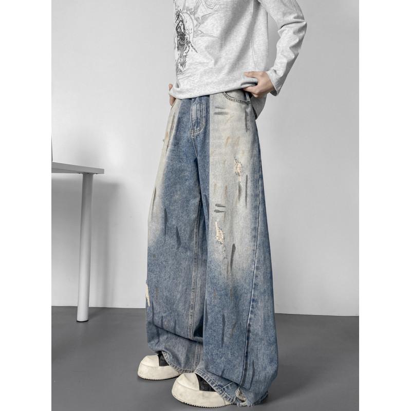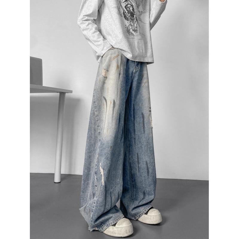 【YS2904】新款美式復古水洗寬鬆闊腿夏季大碼百搭休閒男士直筒長褲牛仔褲